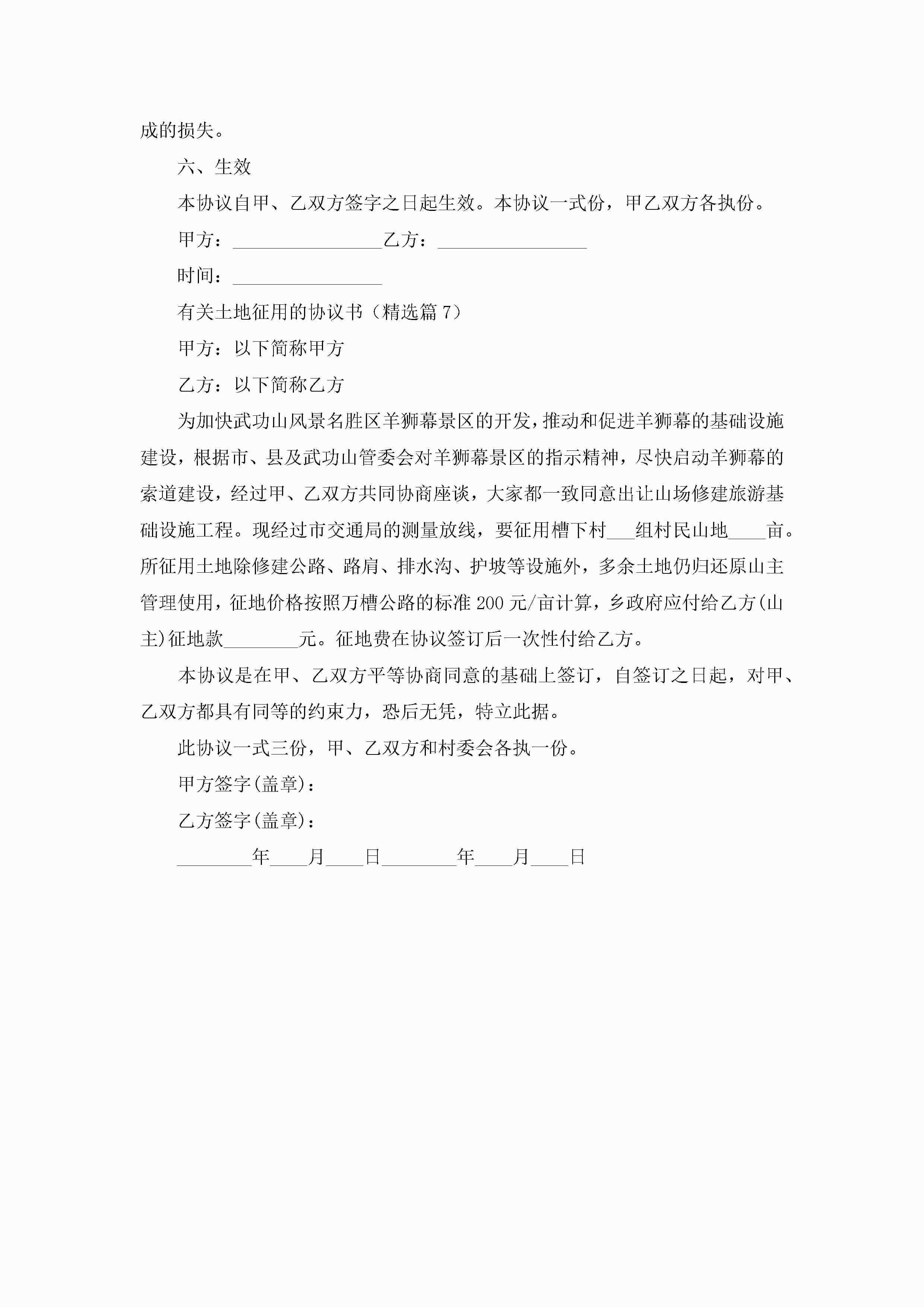 有关土地征用的协议书(通用7篇)jugei3月22日 12:39更新关注201 有关土地征用的协议书(通用7篇)此内容为付费资源,请付费后查看¥10.9 单篇文档限时特惠¥15个人会员开通企业会员开通立即下载无需登陆!可直接快捷下载单个模板付费资源© 版权声明THE ENDWord模板# 实用文档# 实用模板# 信函模板# 协议书 如有问题,可点击最底部“联系我们”联系客服 分享QQ空间微博QQ好友海报分享复制链接收藏