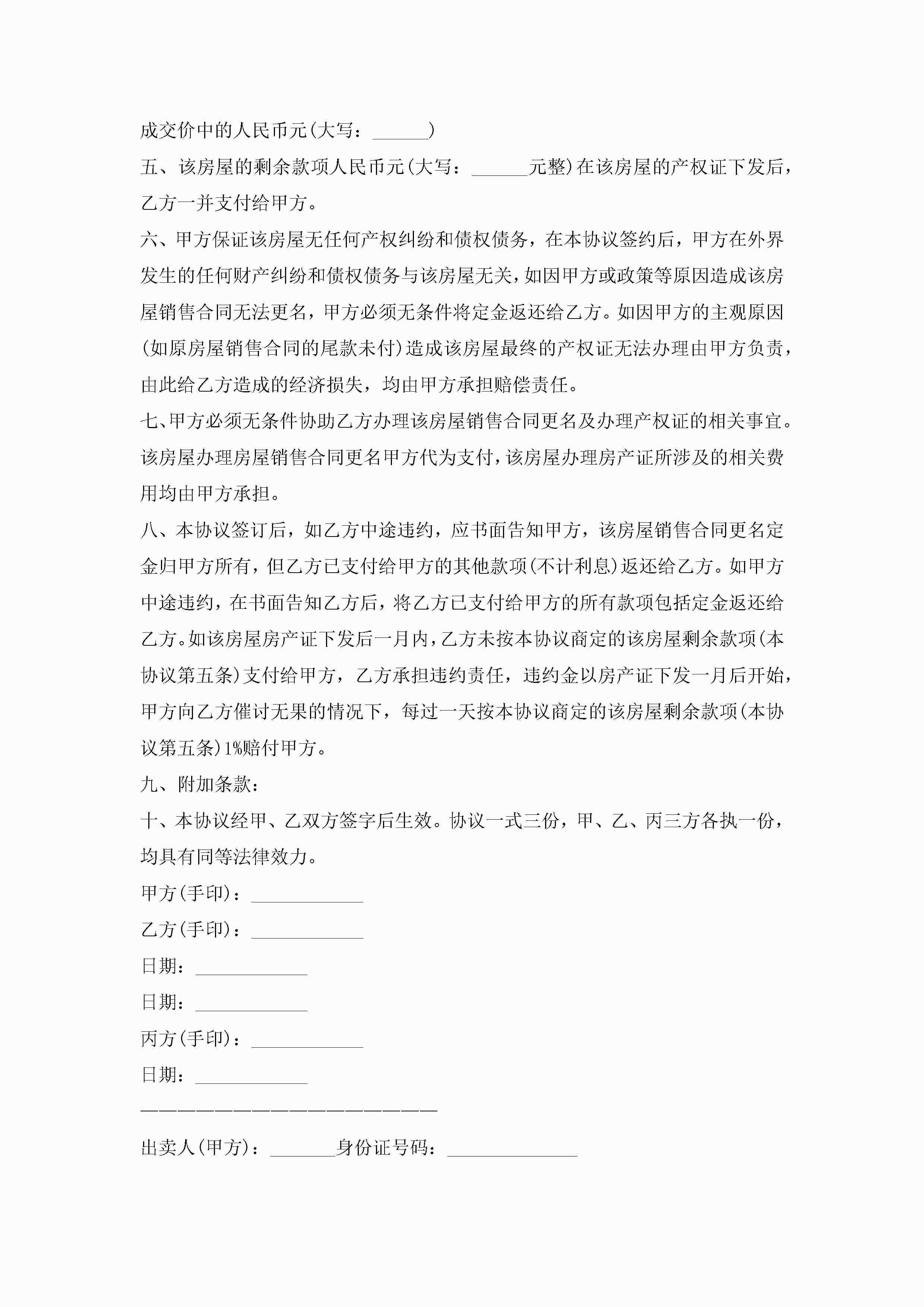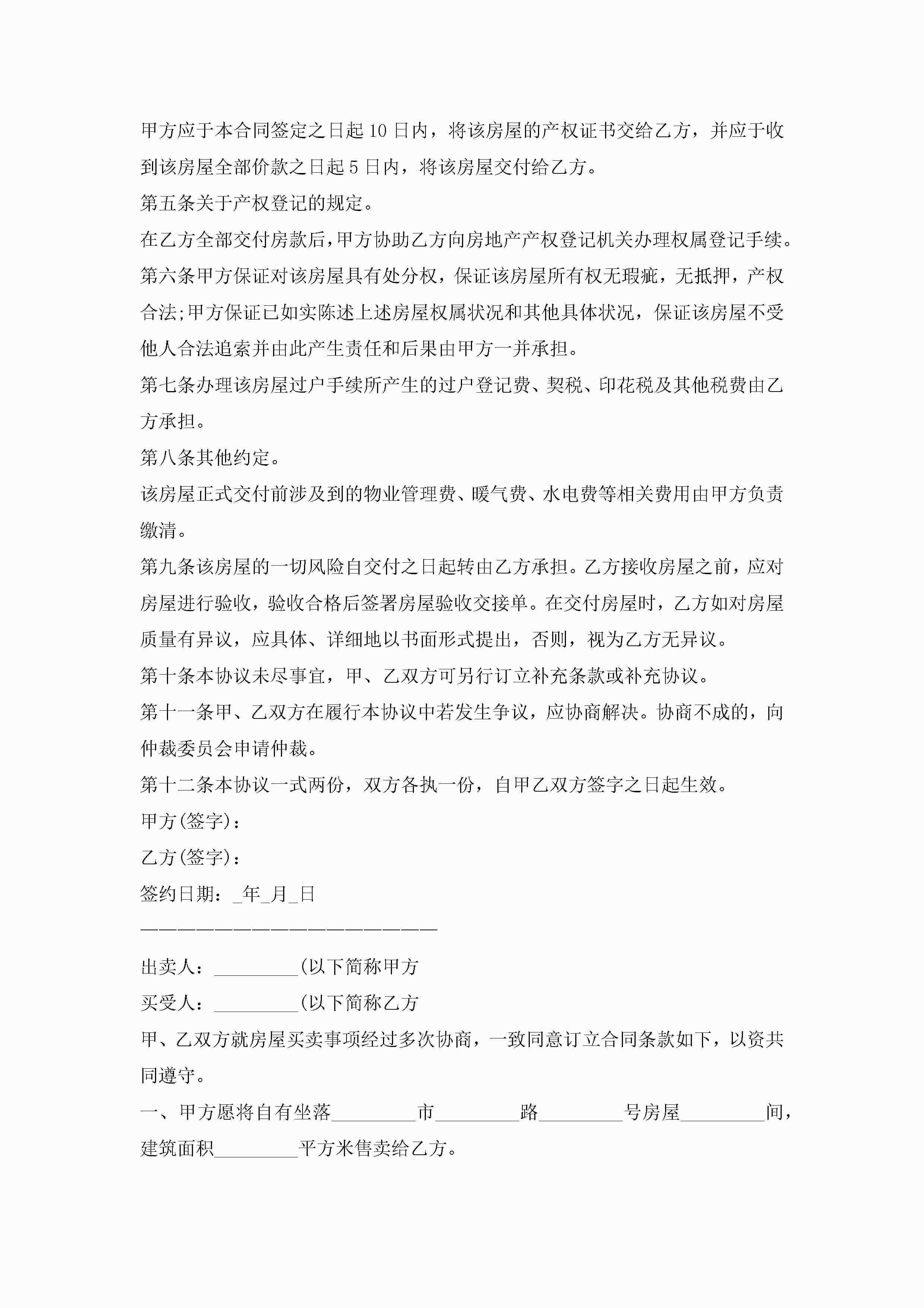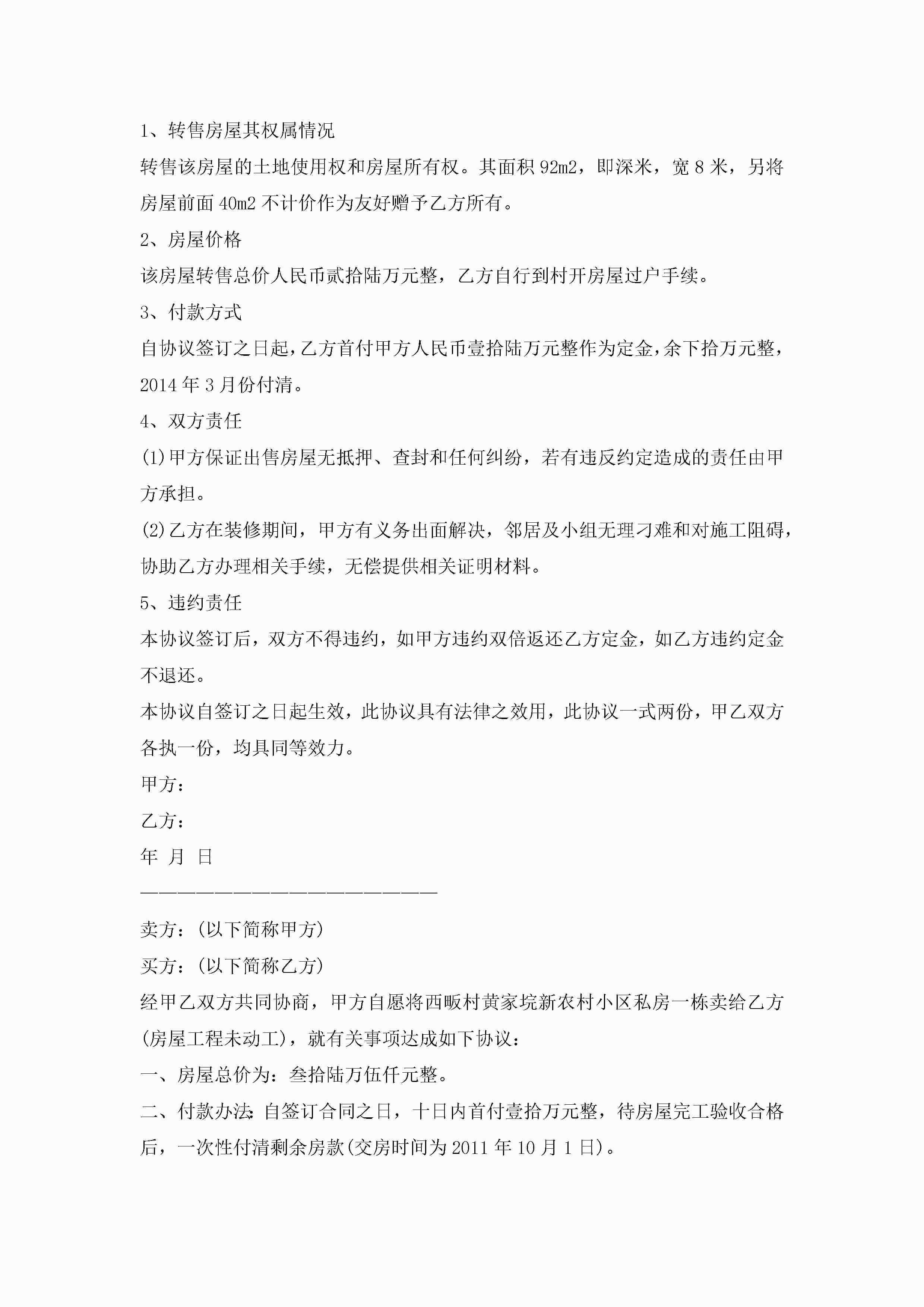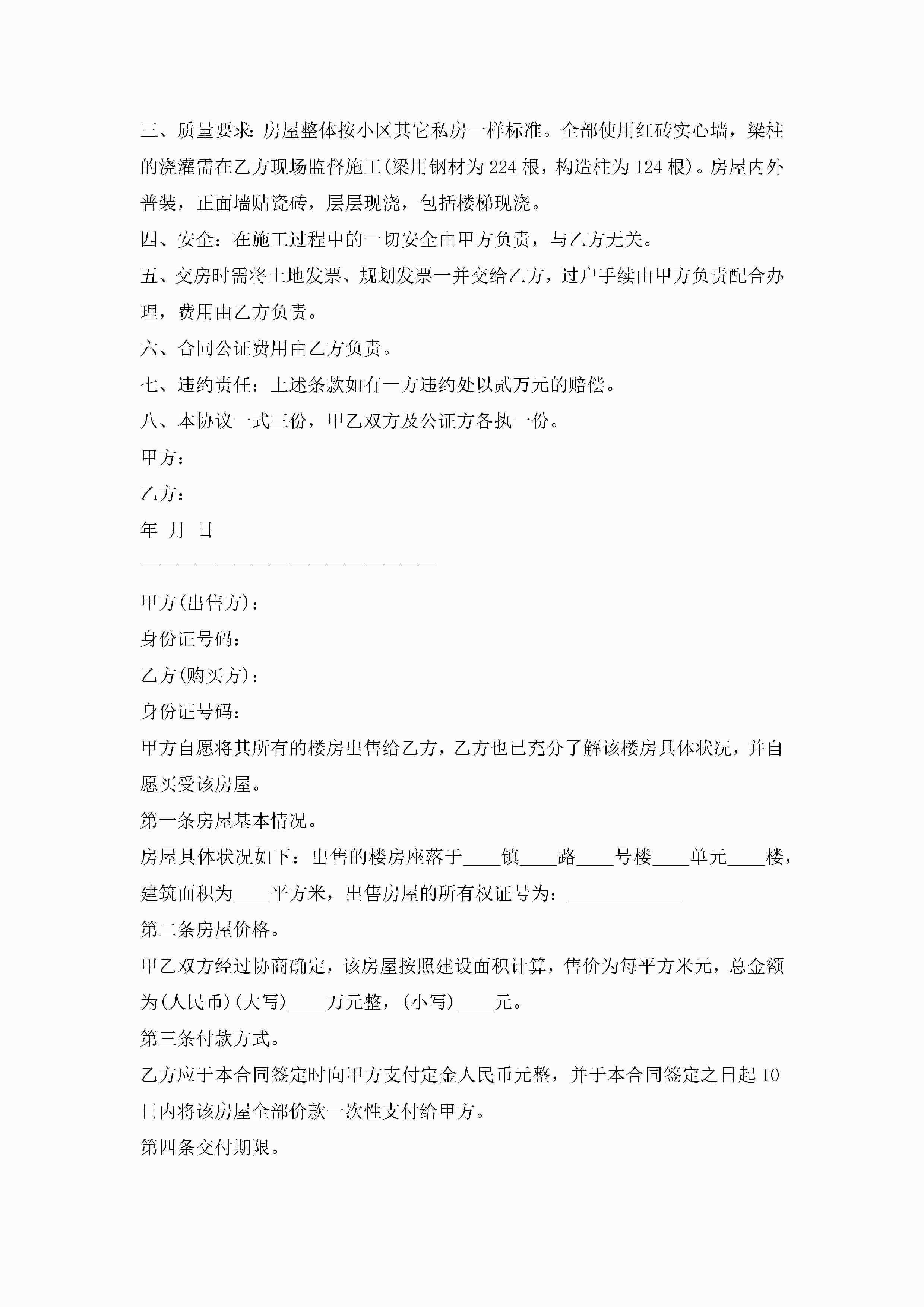 房屋出售协议范文样本10篇精选jugei3月22日 12:39更新关注197 房屋出售协议范文样本10篇精选此内容为付费资源,请付费后查看¥10.9 单篇文档限时特惠¥15个人会员开通企业会员开通立即下载无需登陆!可直接快捷下载单个模板付费资源© 版权声明THE ENDWord模板# 实用文档# 实用模板# 信函模板# 协议书 如有问题,可点击最底部“联系我们”联系客服 分享QQ空间微博QQ好友海报分享复制链接收藏