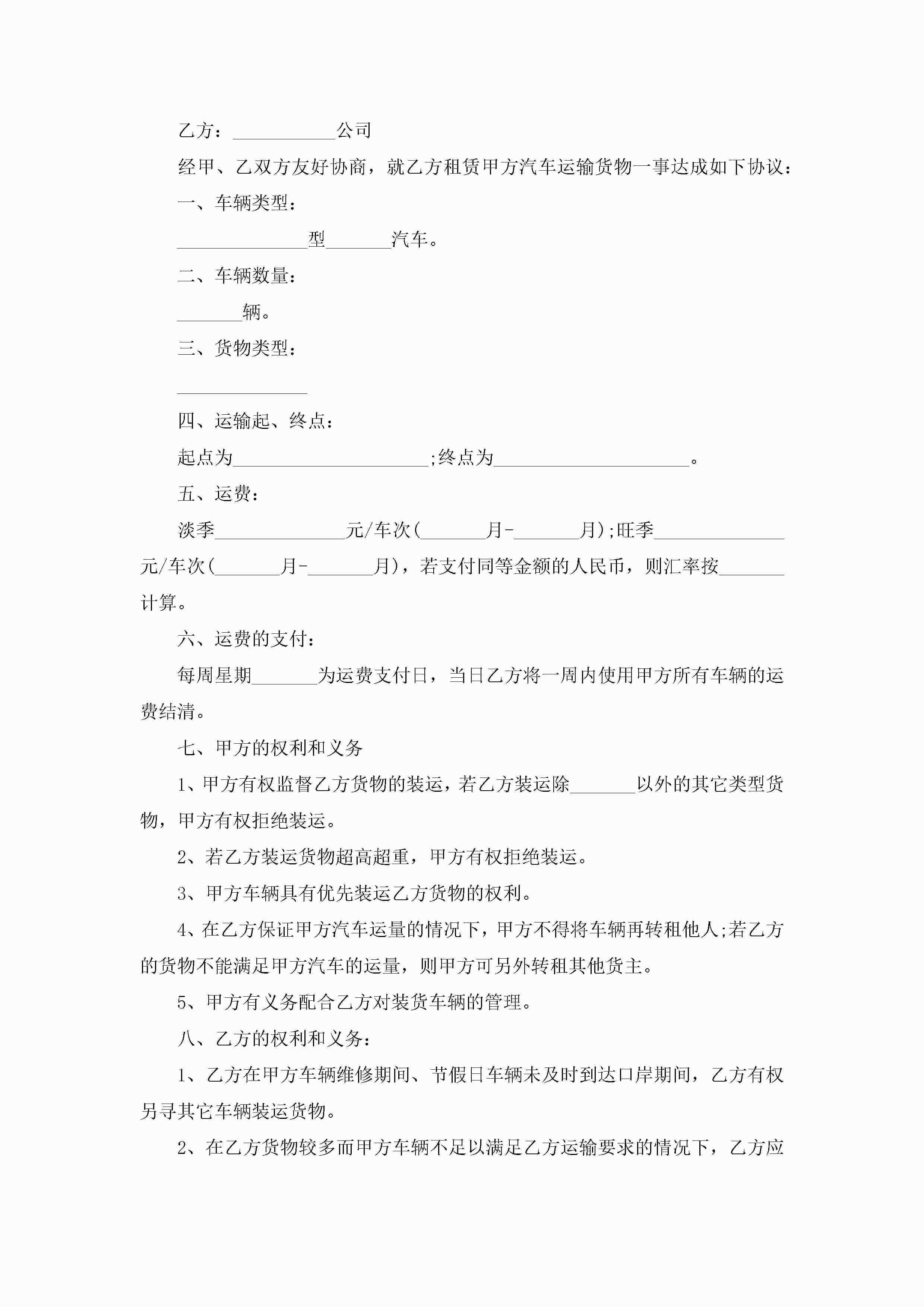 车辆租赁协议模板(精选10篇)jugei3月22日 12:39更新关注191 车辆租赁协议模板(精选10篇)此内容为付费资源,请付费后查看¥10.9 单篇文档限时特惠¥15个人会员开通企业会员开通立即下载无需登陆!可直接快捷下载单个模板付费资源© 版权声明THE ENDWord模板# 实用文档# 实用模板# 信函模板# 协议书 如有问题,可点击最底部“联系我们”联系客服 分享QQ空间微博QQ好友海报分享复制链接收藏