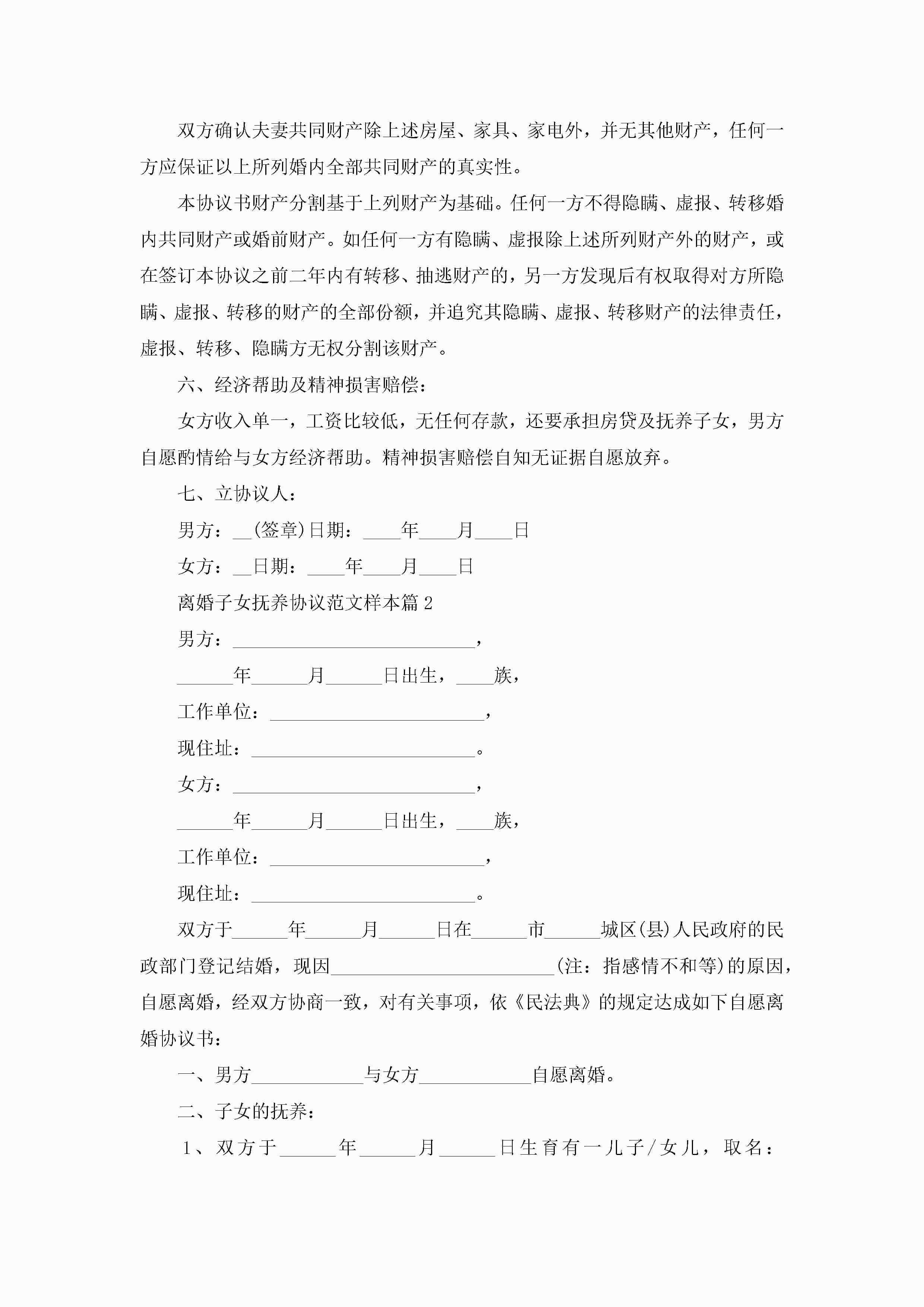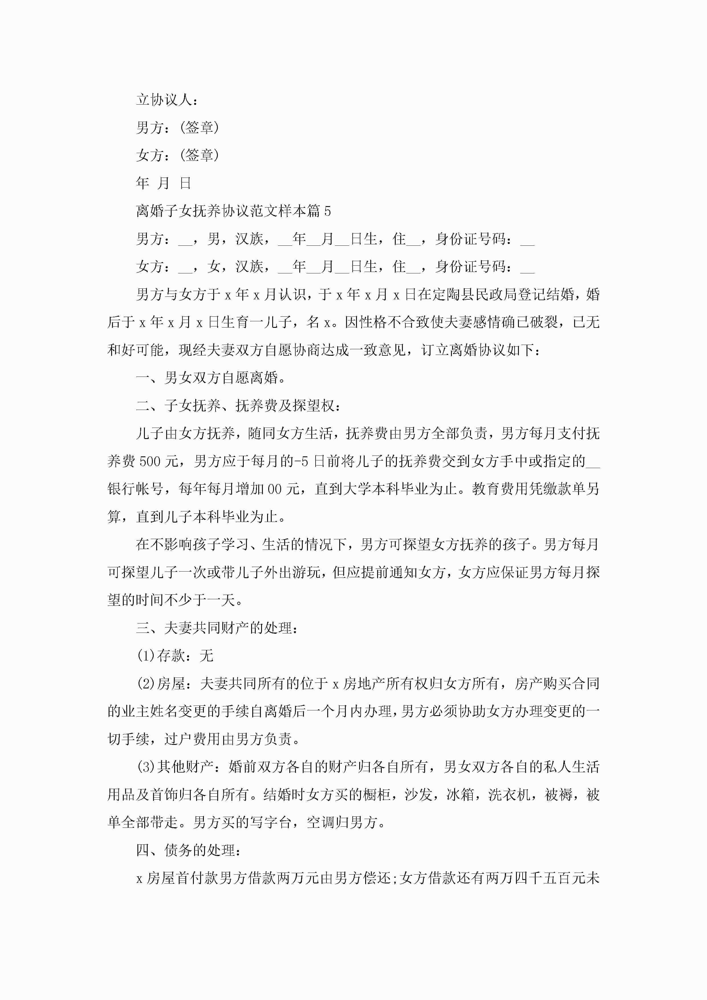 离婚子女抚养协议范文样本(精选10篇)jugei3月22日 12:39更新关注196 离婚子女抚养协议范文样本(精选10篇)此内容为付费资源,请付费后查看¥10.9 单篇文档限时特惠¥15个人会员开通企业会员开通立即下载无需登陆!可直接快捷下载单个模板付费资源© 版权声明THE ENDWord模板# 实用文档# 实用模板# 信函模板# 协议书 如有问题,可点击最底部“联系我们”联系客服 分享QQ空间微博QQ好友海报分享复制链接收藏