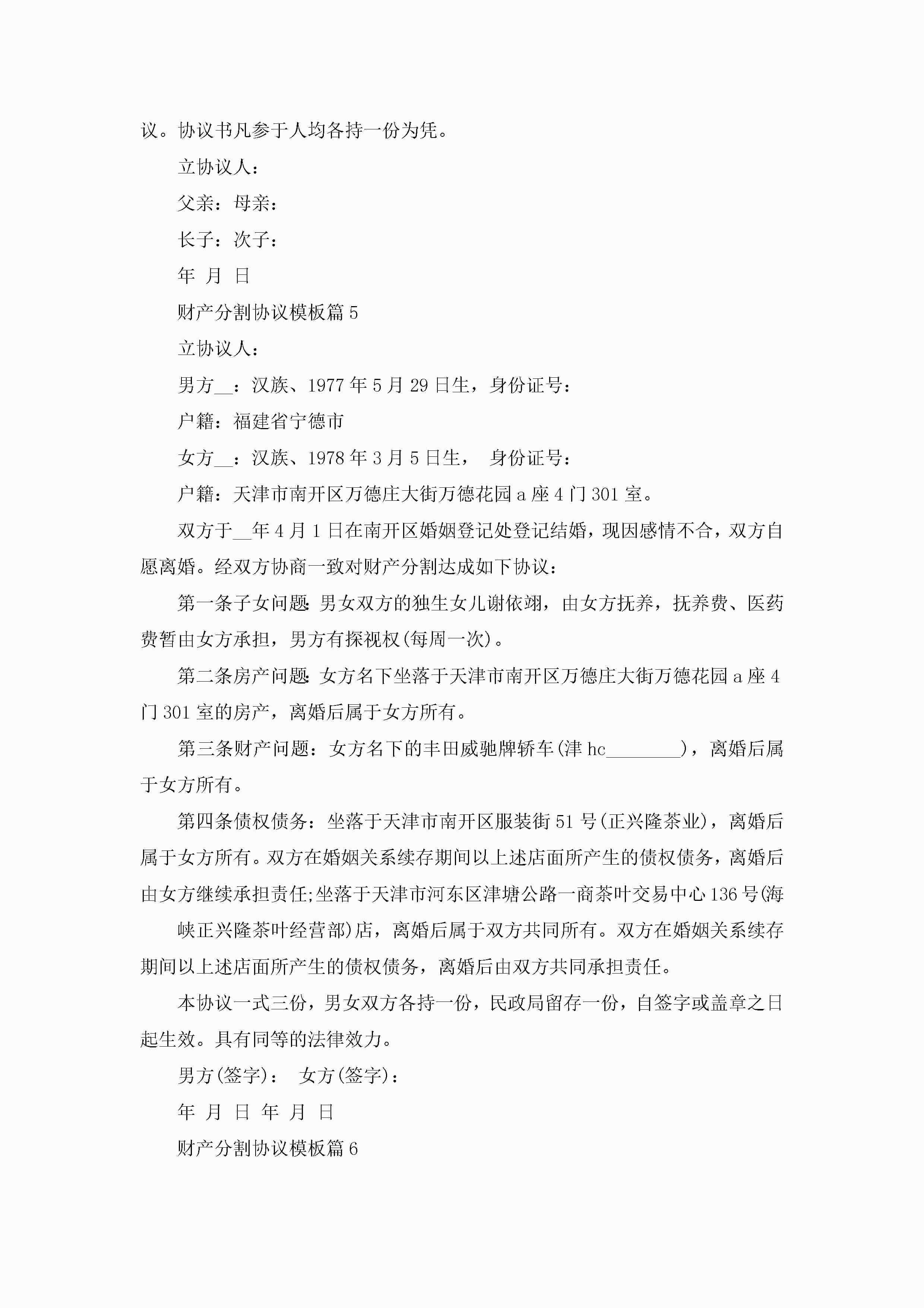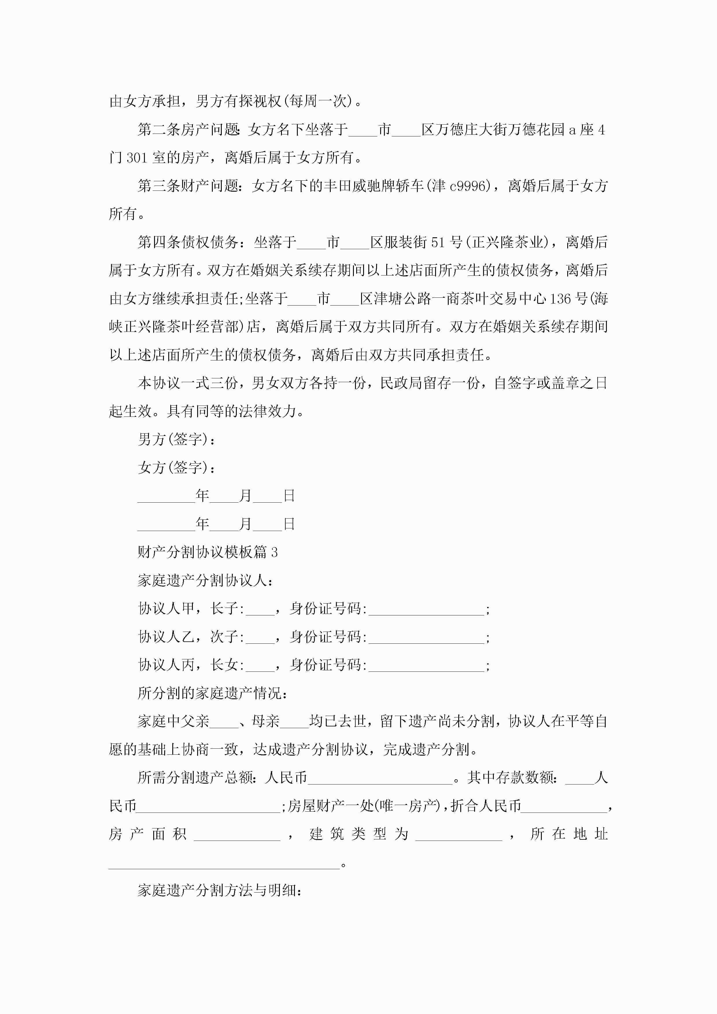 财产分割协议模板10篇精选jugei3月22日 12:41更新关注230 财产分割协议模板10篇精选此内容为付费资源,请付费后查看¥10.9 单篇文档限时特惠¥15个人会员开通企业会员开通立即下载无需登陆!可直接快捷下载单个模板付费资源© 版权声明THE ENDWord模板# 实用文档# 实用模板# 信函模板# 协议书 如有问题,可点击最底部“联系我们”联系客服 分享QQ空间微博QQ好友海报分享复制链接收藏