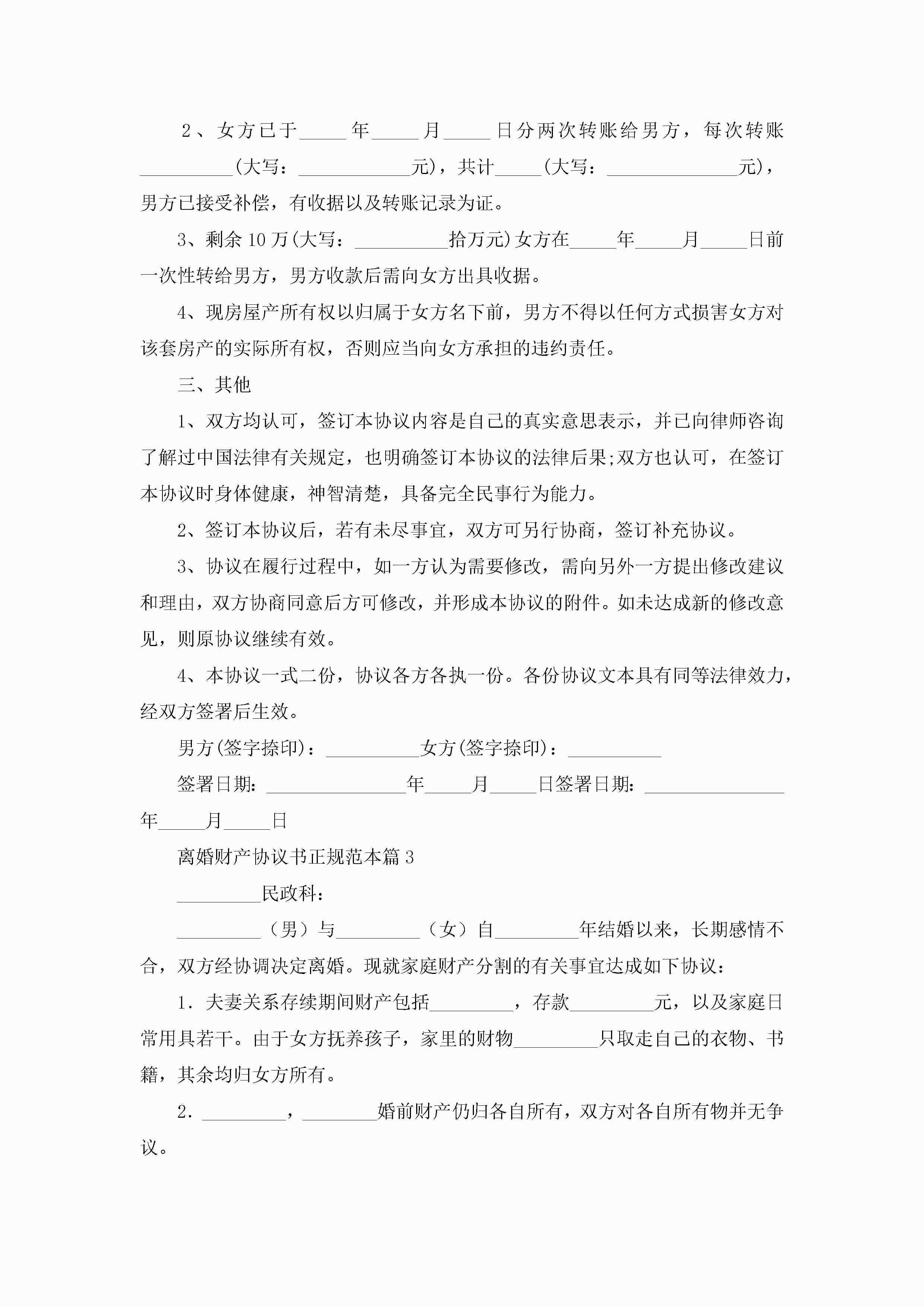 离婚财产协议书正规范本(精选10篇)jugei3月22日 12:41更新关注196 离婚财产协议书正规范本(精选10篇)此内容为付费资源,请付费后查看¥10.9 单篇文档限时特惠¥15个人会员开通企业会员开通立即下载无需登陆!可直接快捷下载单个模板付费资源© 版权声明THE ENDWord模板# 实用文档# 实用模板# 信函模板# 协议书 如有问题,可点击最底部“联系我们”联系客服 分享QQ空间微博QQ好友海报分享复制链接收藏