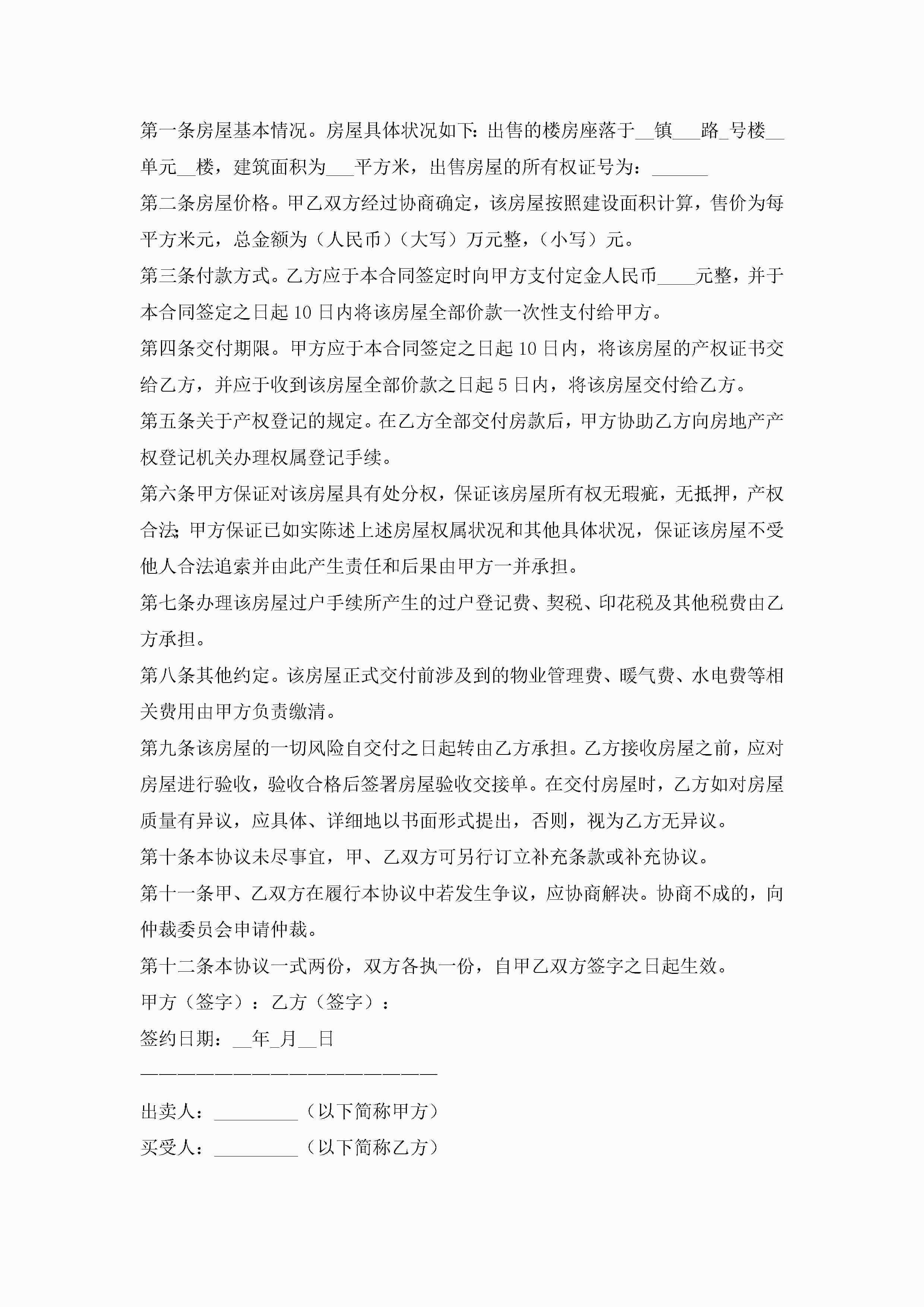 房屋出售协议书怎么写(精选10篇)jugei3月22日 12:41更新关注294 房屋出售协议书怎么写(精选10篇)此内容为付费资源,请付费后查看¥10.9 单篇文档限时特惠¥15个人会员开通企业会员开通立即下载无需登陆!可直接快捷下载单个模板付费资源© 版权声明THE ENDWord模板# 实用文档# 实用模板# 信函模板# 协议书 如有问题,可点击最底部“联系我们”联系客服 分享QQ空间微博QQ好友海报分享复制链接收藏