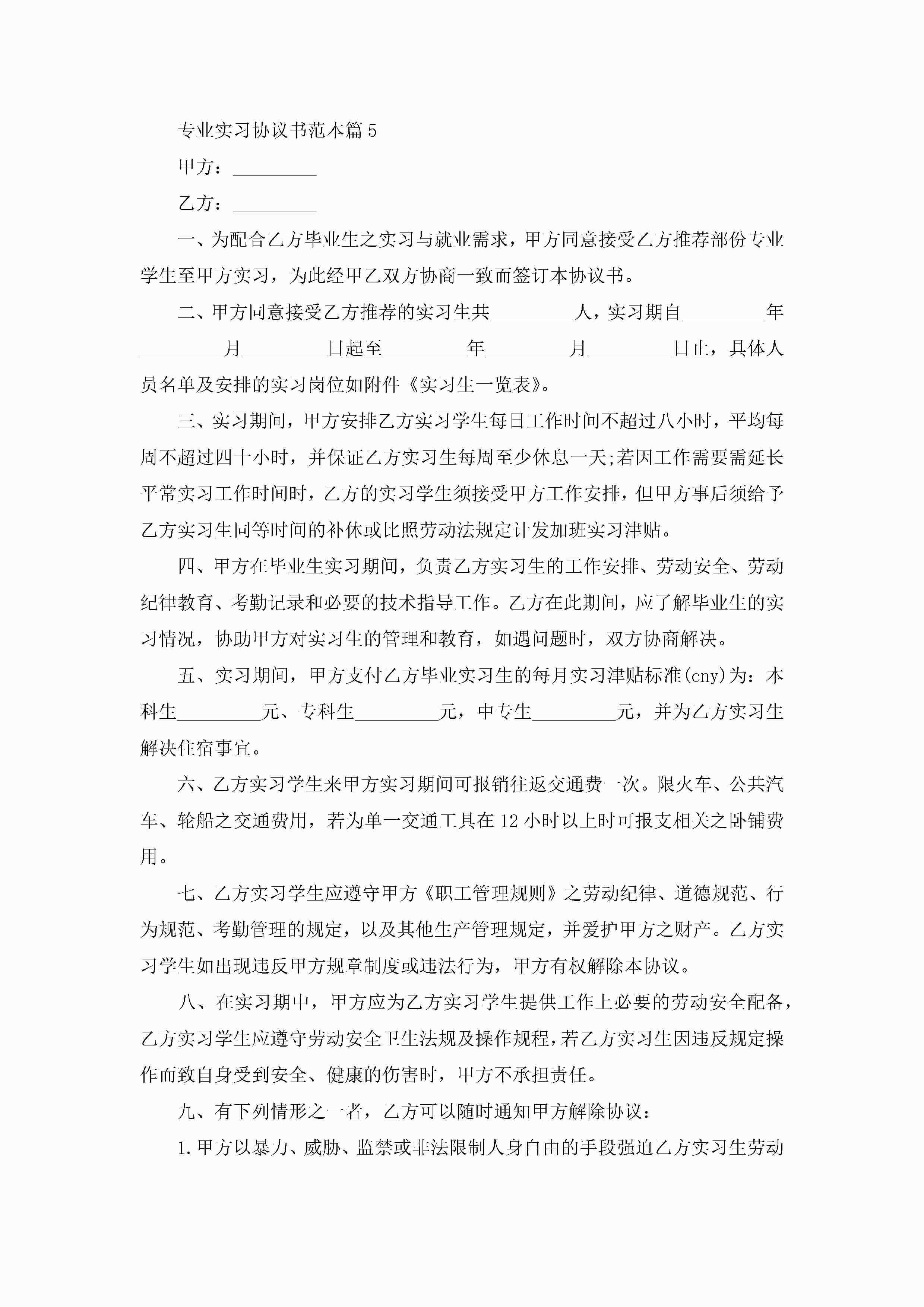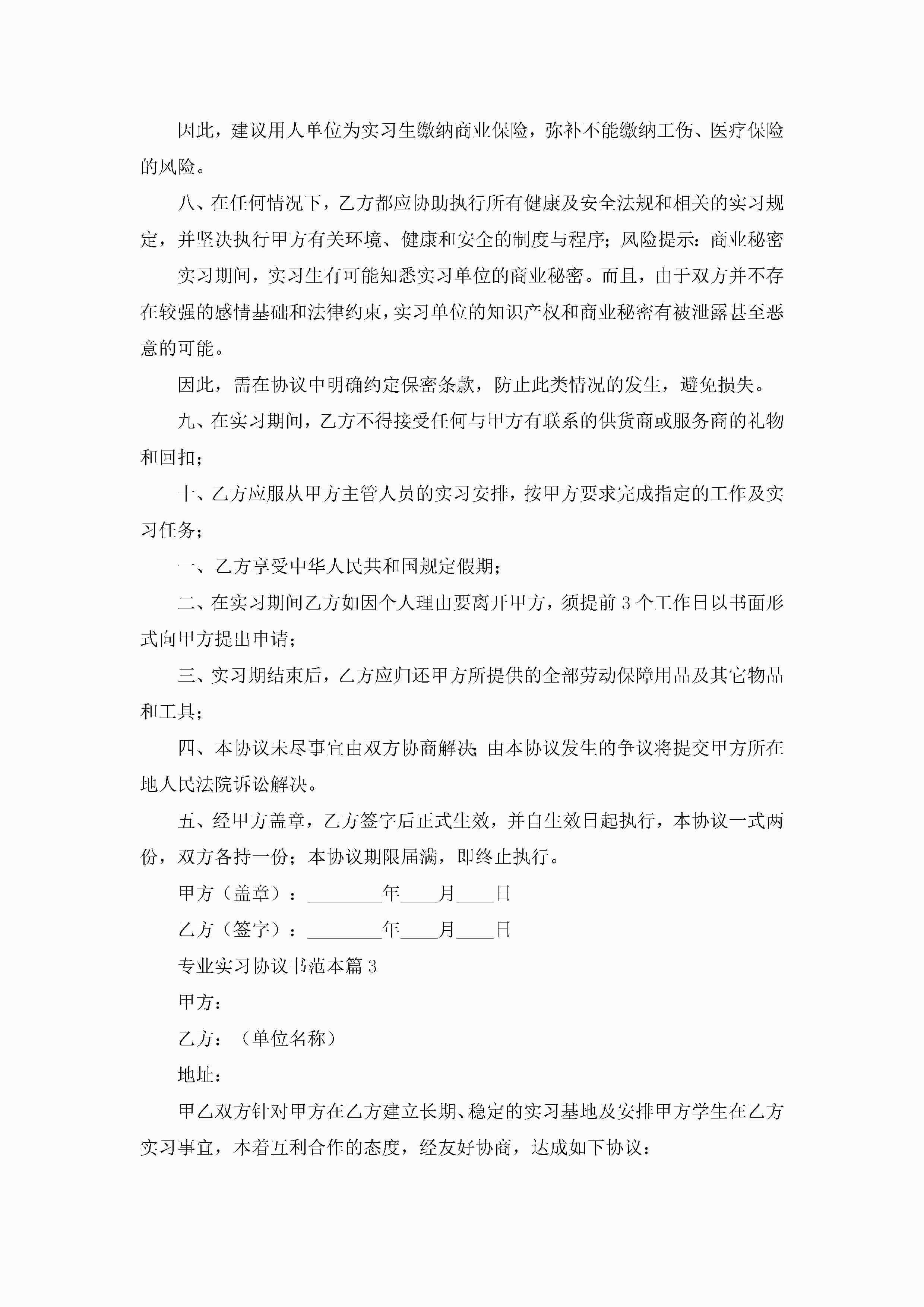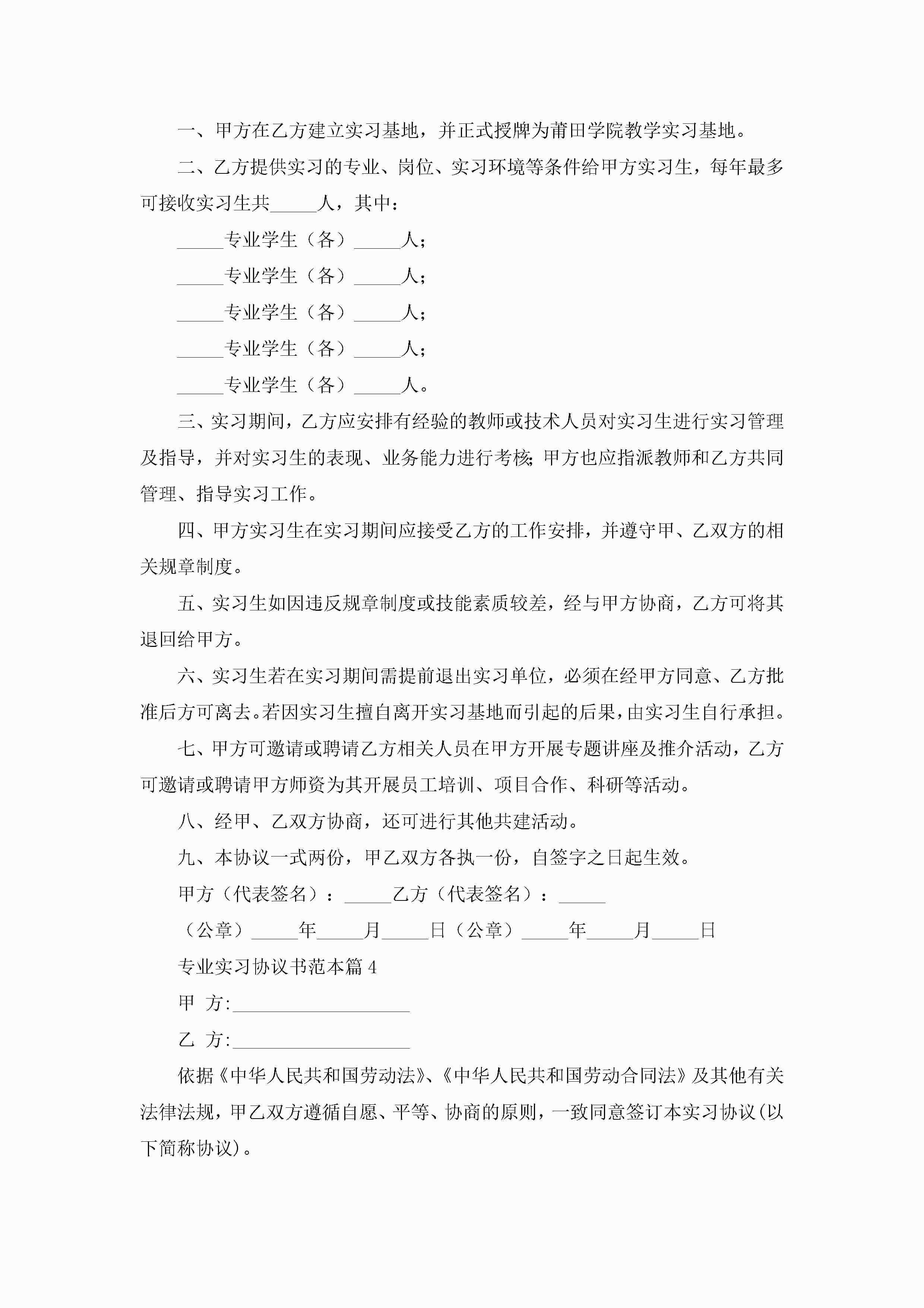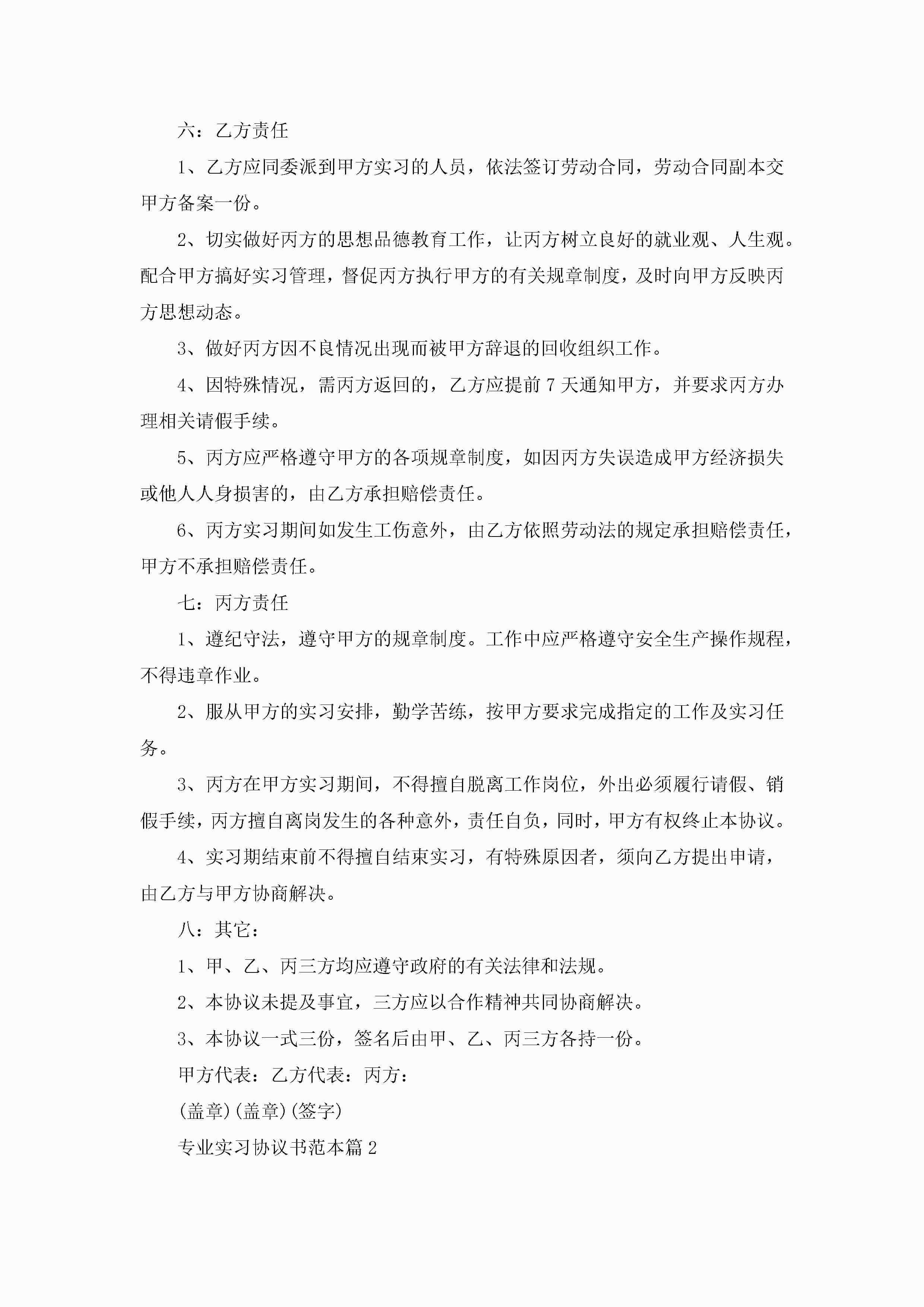 专业实习协议书范本(精选7篇)jugei3月22日 12:41更新关注196 专业实习协议书范本(精选7篇)此内容为付费资源,请付费后查看¥10.9 单篇文档限时特惠¥15个人会员开通企业会员开通立即下载无需登陆!可直接快捷下载单个模板付费资源© 版权声明THE ENDWord模板# 实用文档# 实用模板# 信函模板# 协议书 如有问题,可点击最底部“联系我们”联系客服 分享QQ空间微博QQ好友海报分享复制链接收藏