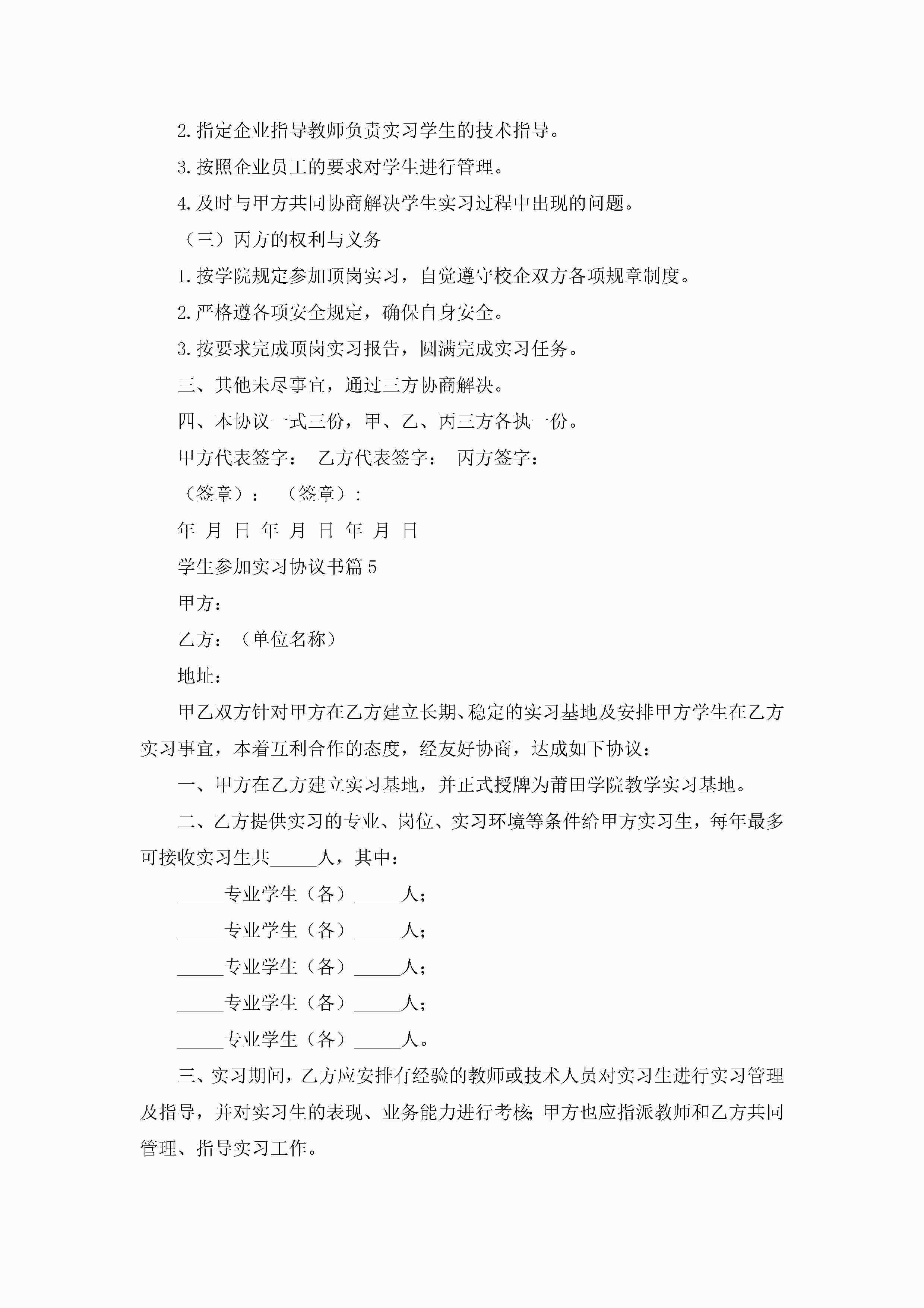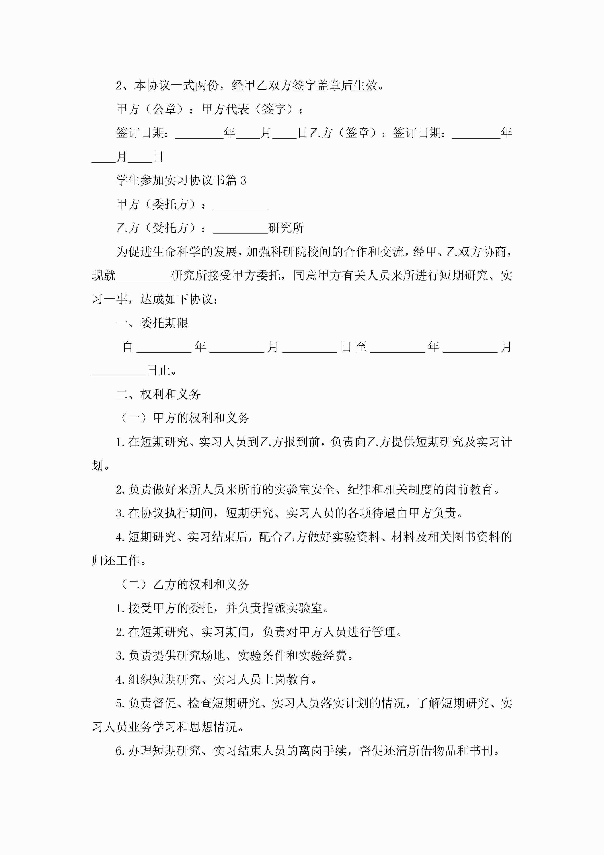 学生参加实习协议书7篇jugei3月22日 12:41更新关注315 学生参加实习协议书7篇此内容为付费资源,请付费后查看¥10.9 单篇文档限时特惠¥15个人会员开通企业会员开通立即下载无需登陆!可直接快捷下载单个模板付费资源© 版权声明THE ENDWord模板# 实用文档# 实用模板# 信函模板# 协议书 如有问题,可点击最底部“联系我们”联系客服 分享QQ空间微博QQ好友海报分享复制链接收藏