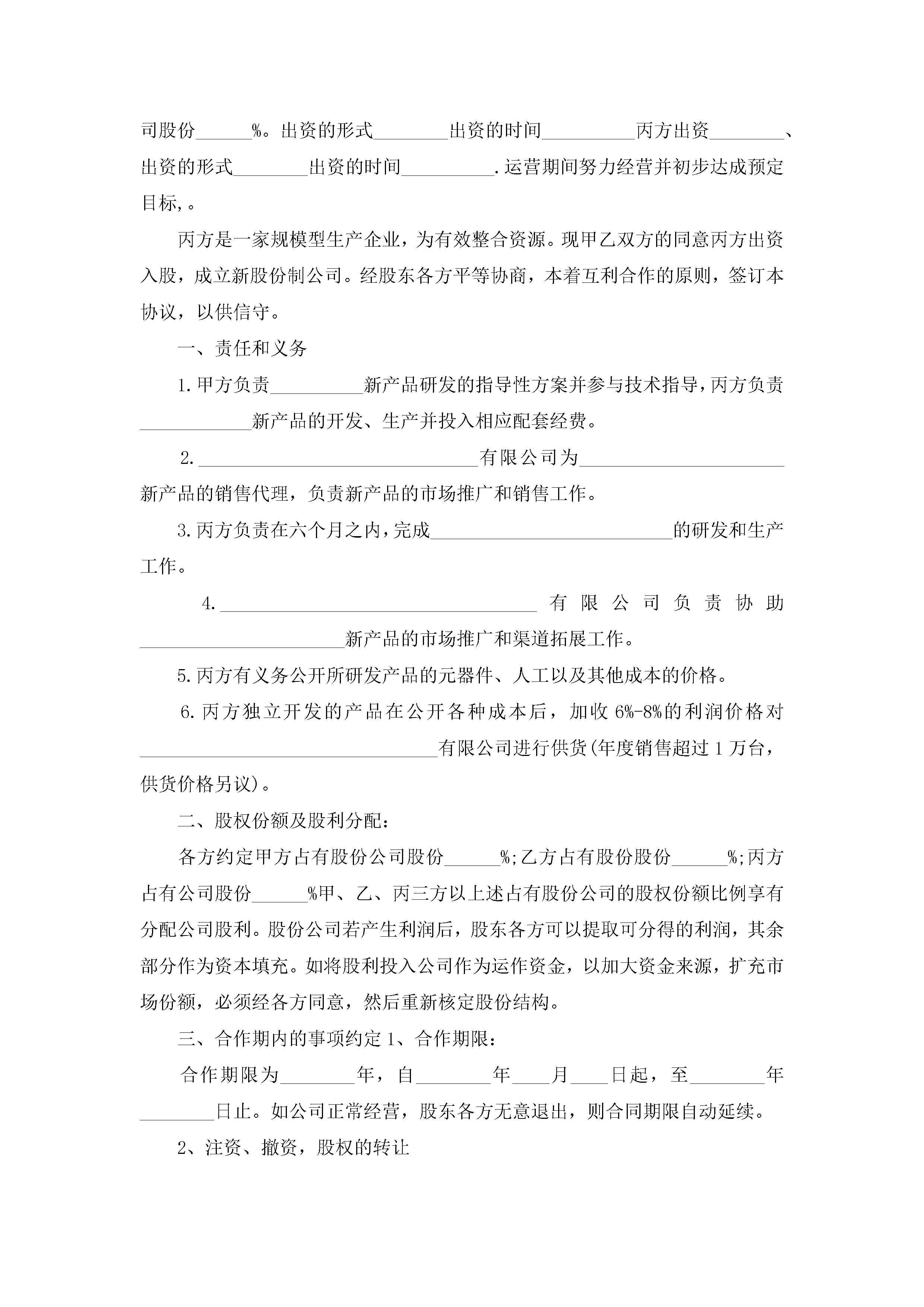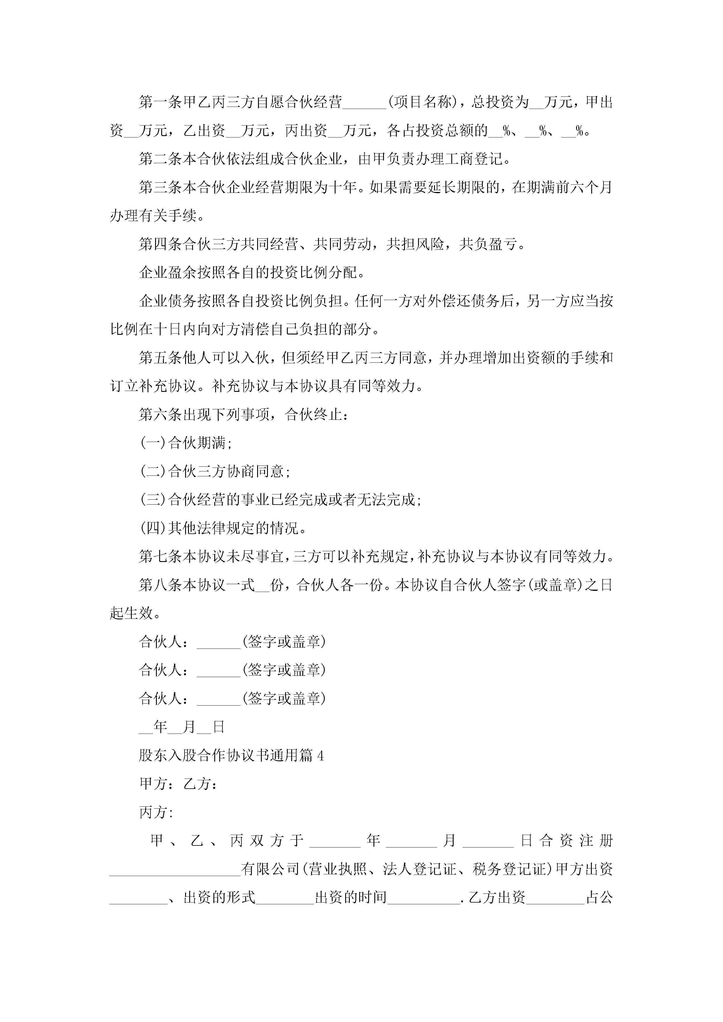 股东入股合作协议书通用(精选7篇)jugei3月22日 12:41更新关注254 股东入股合作协议书通用(精选7篇)此内容为付费资源,请付费后查看¥10.9 单篇文档限时特惠¥15个人会员开通企业会员开通立即下载无需登陆!可直接快捷下载单个模板付费资源© 版权声明THE ENDWord模板# 实用文档# 实用模板# 信函模板# 协议书 如有问题,可点击最底部“联系我们”联系客服 分享QQ空间微博QQ好友海报分享复制链接收藏