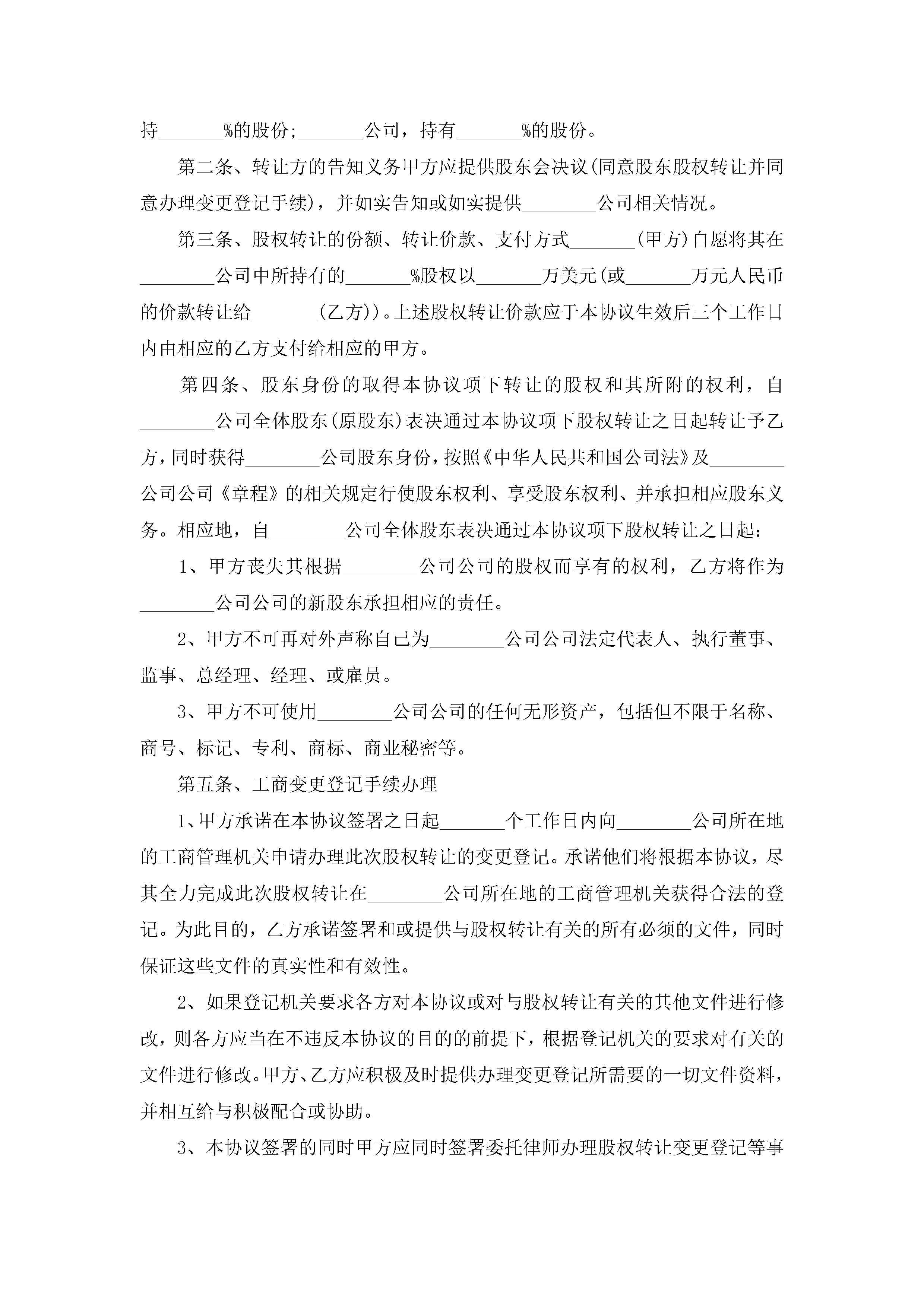 公司股份转让协议(7篇)jugei3月22日 12:41更新关注212 公司股份转让协议(7篇)此内容为付费资源,请付费后查看¥10.9 单篇文档限时特惠¥15个人会员开通企业会员开通立即下载无需登陆!可直接快捷下载单个模板付费资源© 版权声明THE ENDWord模板# 实用文档# 实用模板# 信函模板# 协议书 如有问题,可点击最底部“联系我们”联系客服 分享QQ空间微博QQ好友海报分享复制链接收藏