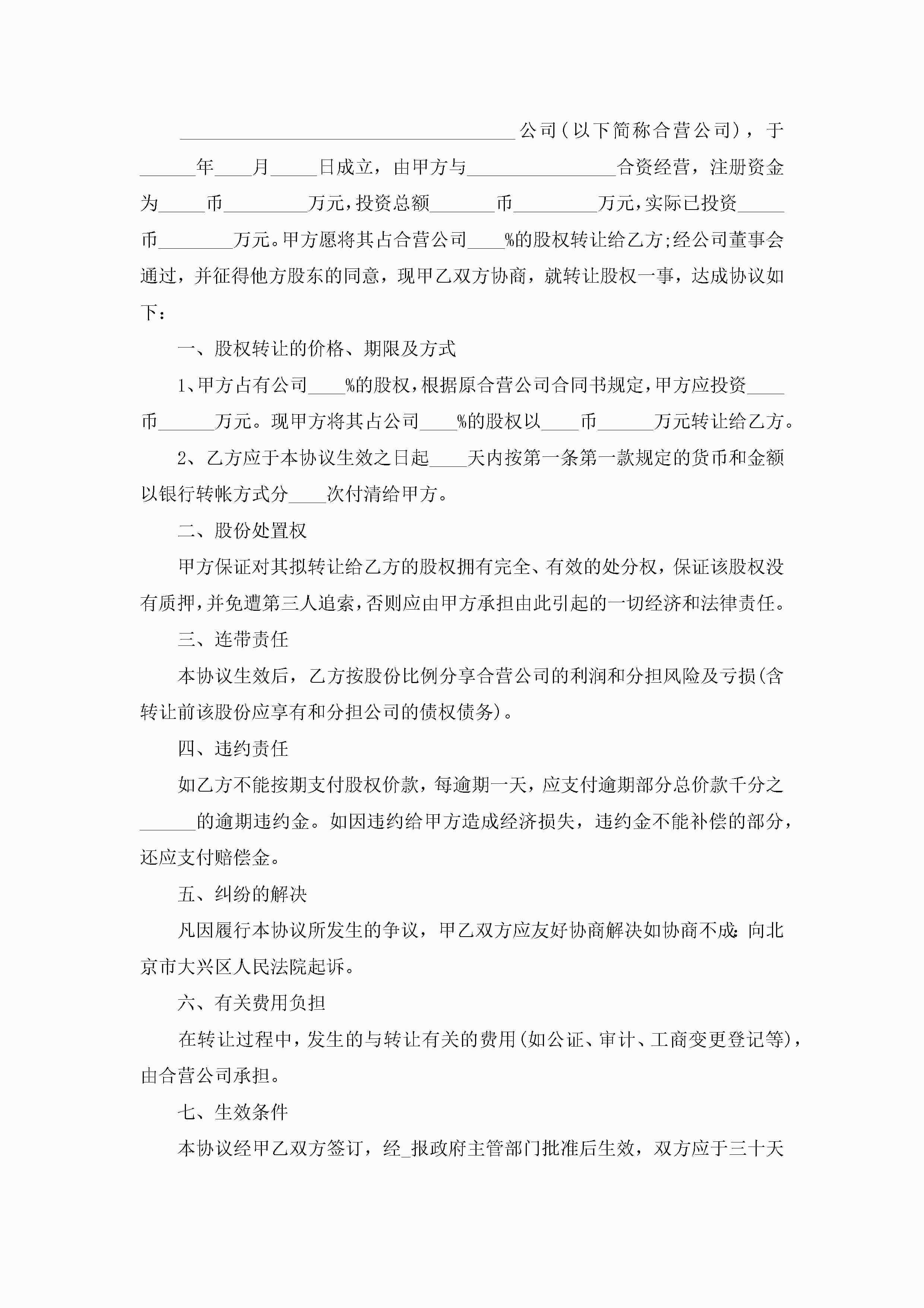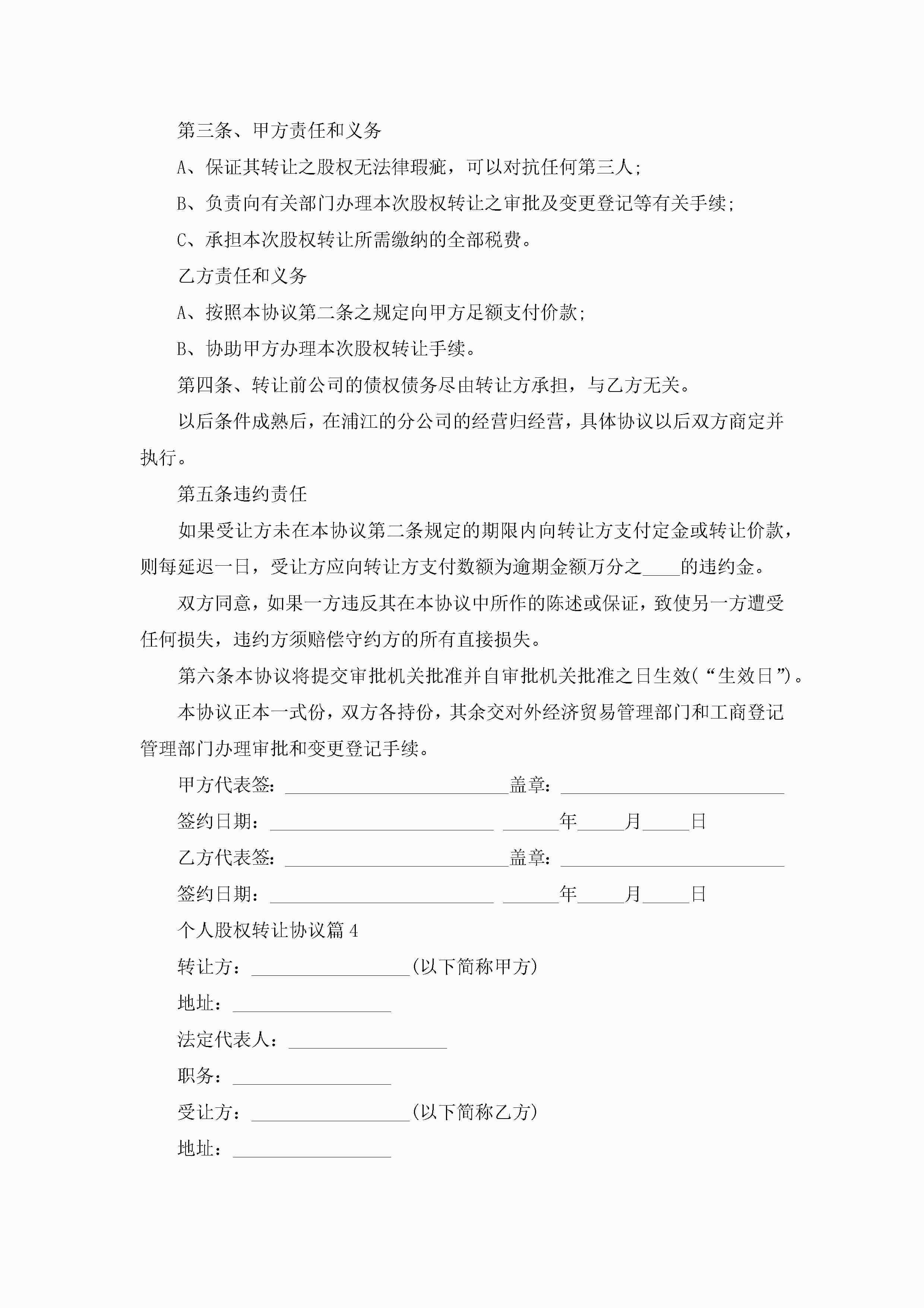 个人股权转让协议(7篇)jugei3月22日 12:41更新关注251 个人股权转让协议(7篇)此内容为付费资源,请付费后查看¥10.9 单篇文档限时特惠¥15个人会员开通企业会员开通立即下载无需登陆!可直接快捷下载单个模板付费资源© 版权声明THE ENDWord模板# 实用文档# 实用模板# 信函模板# 协议书 如有问题,可点击最底部“联系我们”联系客服 分享QQ空间微博QQ好友海报分享复制链接收藏