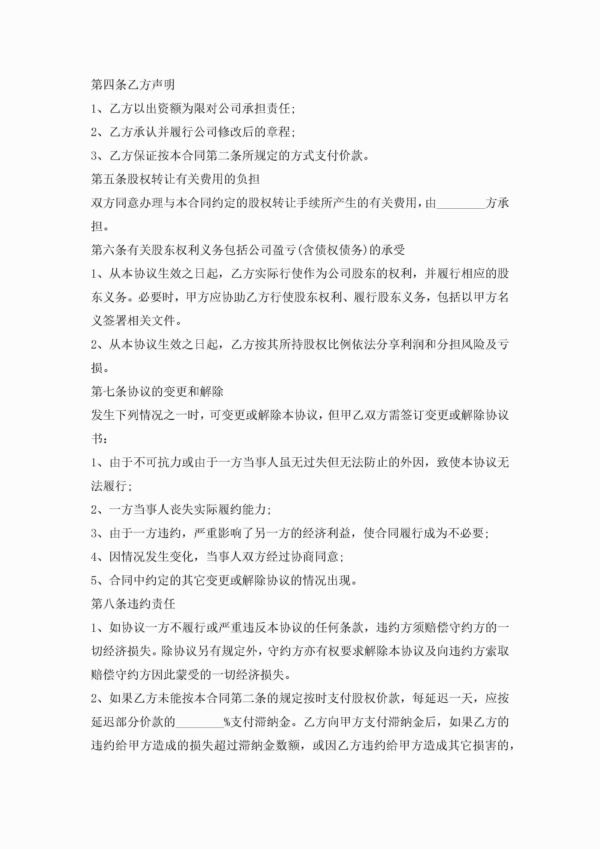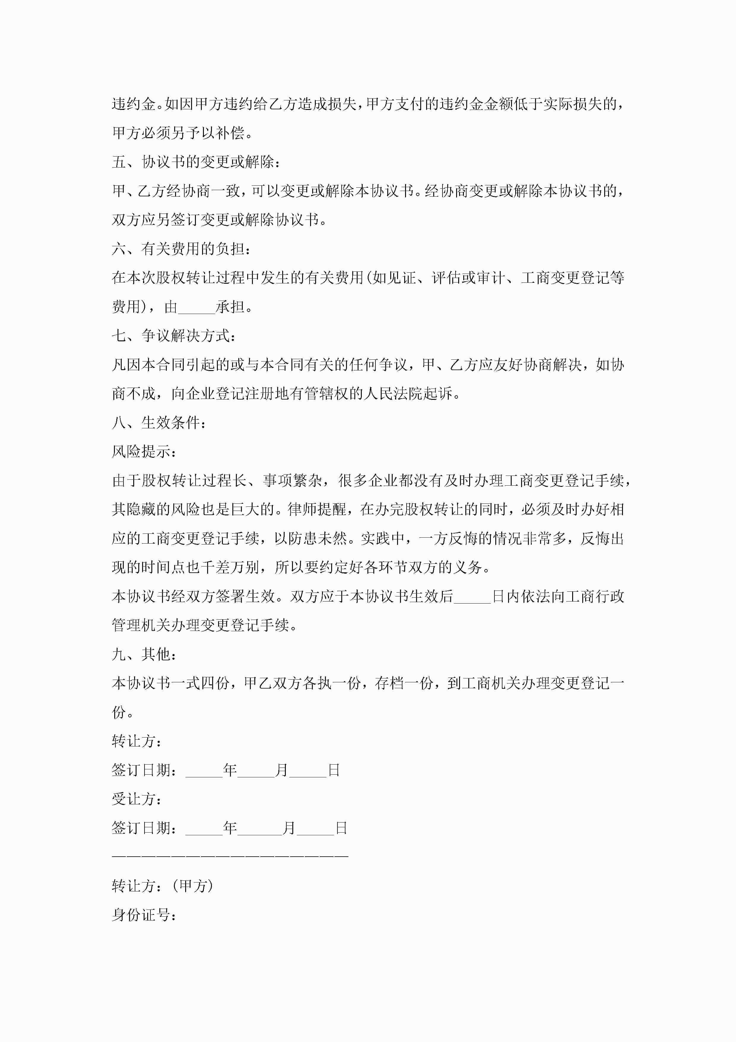 股权转让合同协议书(7篇)jugei3月22日 12:41更新关注344 股权转让合同协议书(7篇)此内容为付费资源,请付费后查看¥10.9 单篇文档限时特惠¥15个人会员开通企业会员开通立即下载无需登陆!可直接快捷下载单个模板付费资源© 版权声明THE ENDWord模板# 实用文档# 实用模板# 信函模板# 协议书 如有问题,可点击最底部“联系我们”联系客服 分享QQ空间微博QQ好友海报分享复制链接收藏