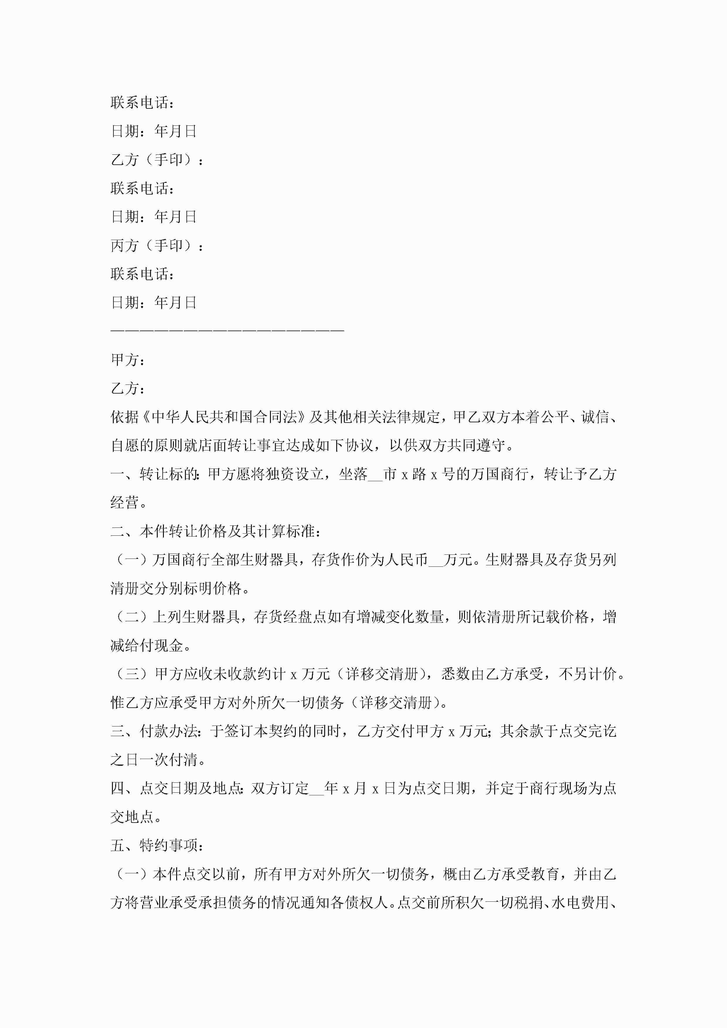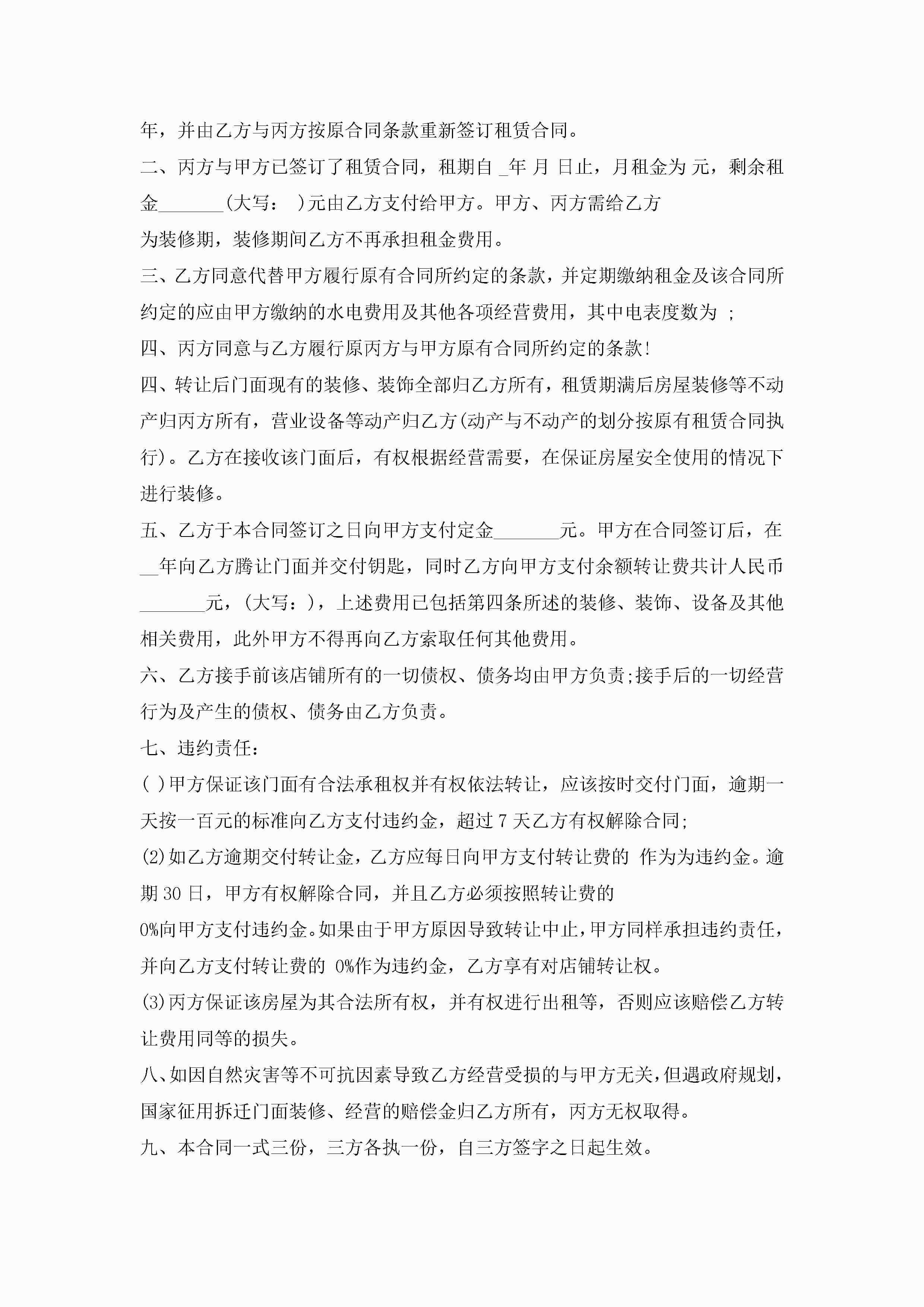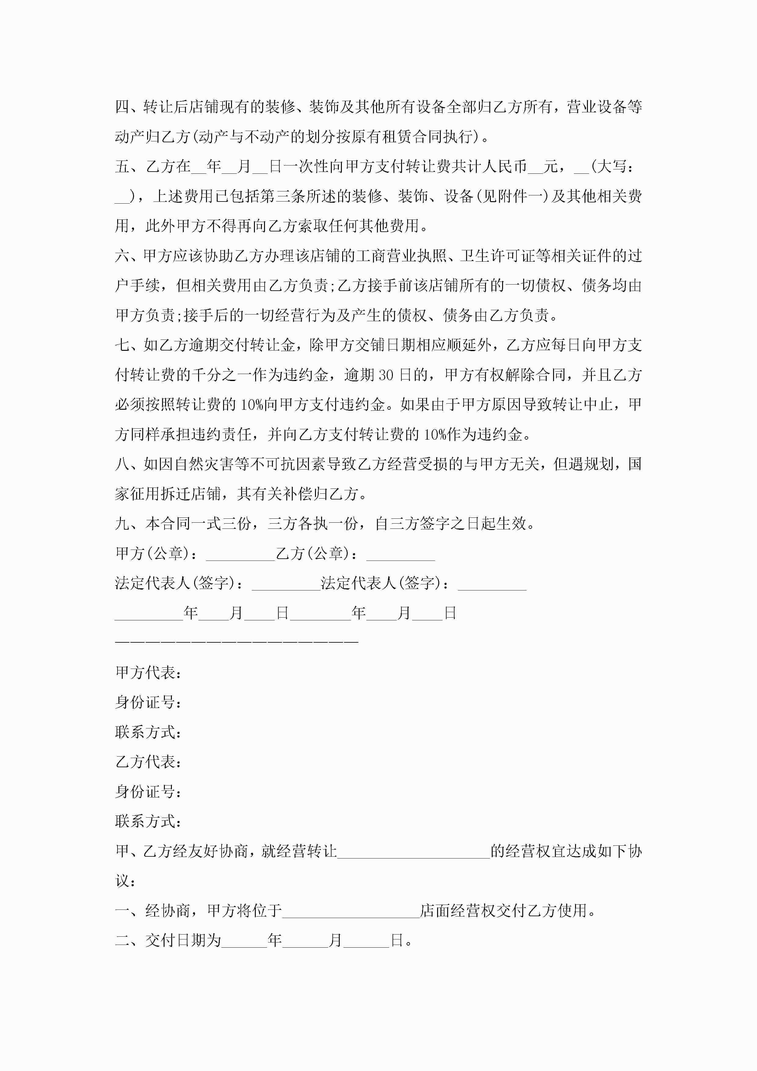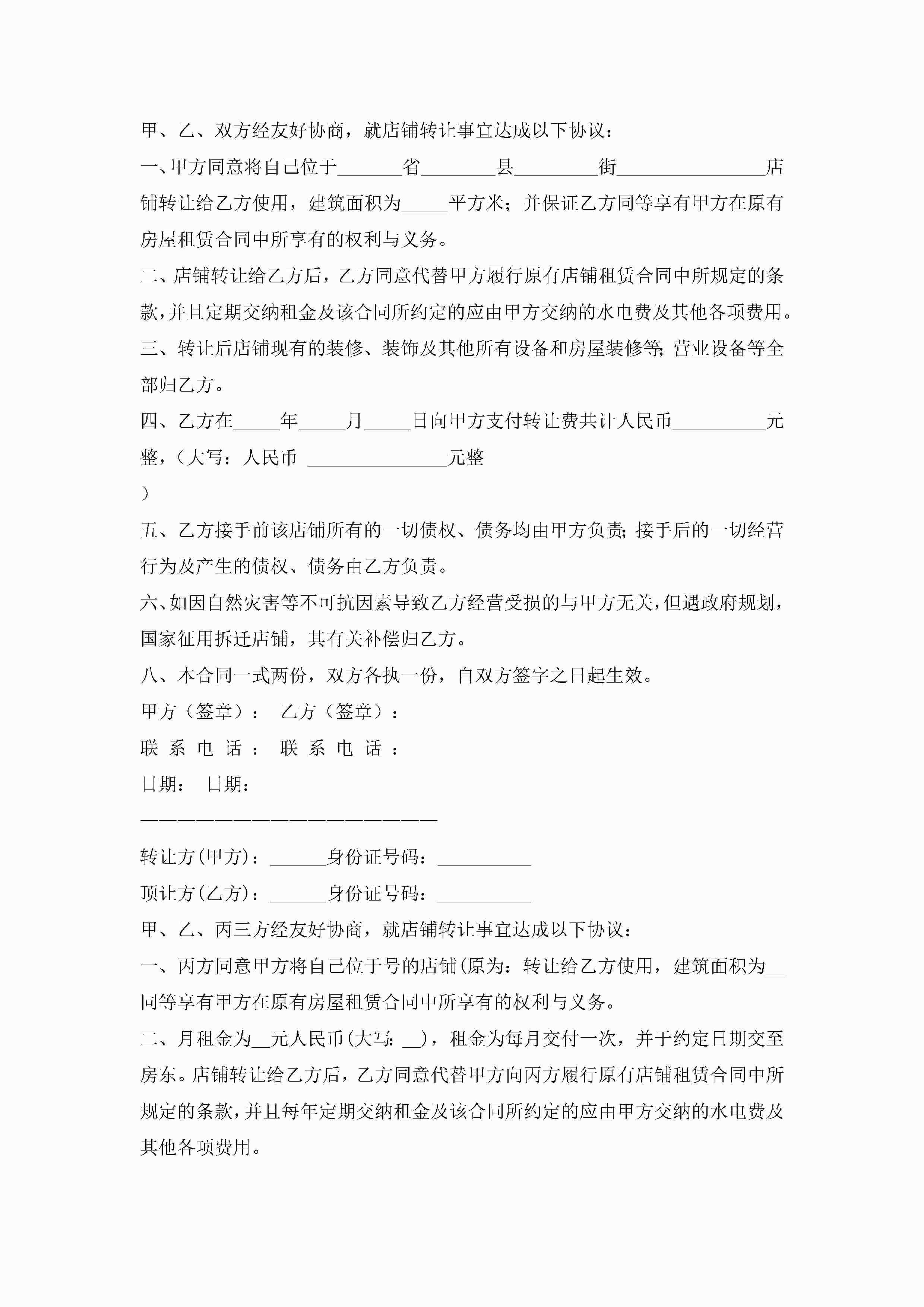 店铺转让协议书的模板(精选10篇)jugei3月22日 12:41更新关注271 店铺转让协议书的模板(精选10篇)此内容为付费资源,请付费后查看¥10.9 单篇文档限时特惠¥15个人会员开通企业会员开通立即下载无需登陆!可直接快捷下载单个模板付费资源© 版权声明THE ENDWord模板# 实用文档# 实用模板# 信函模板# 协议书 如有问题,可点击最底部“联系我们”联系客服 分享QQ空间微博QQ好友海报分享复制链接收藏