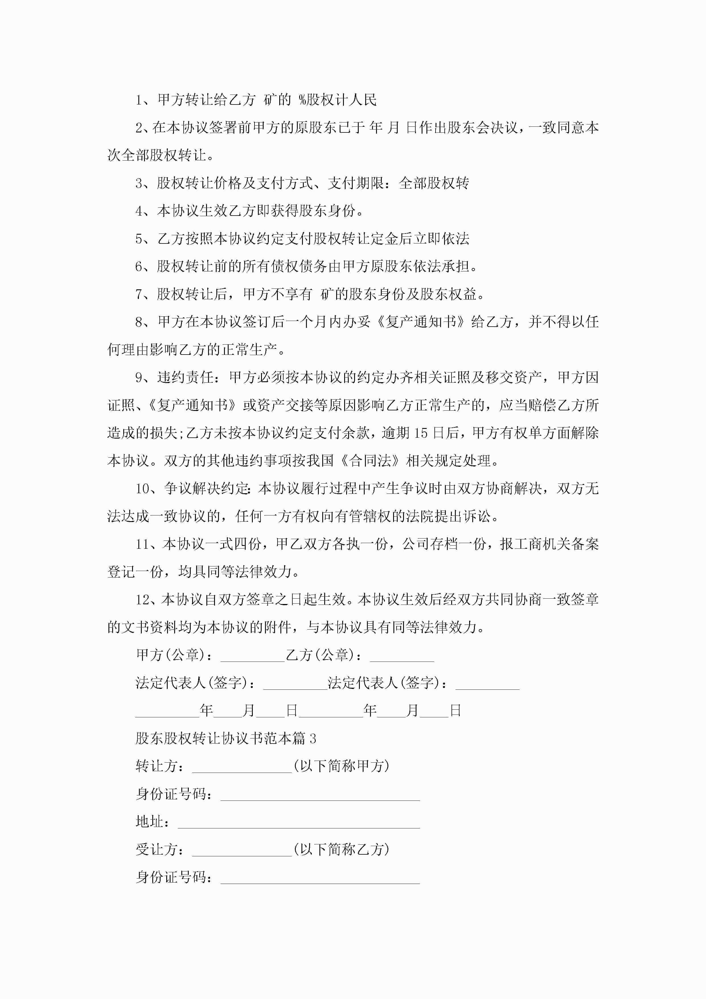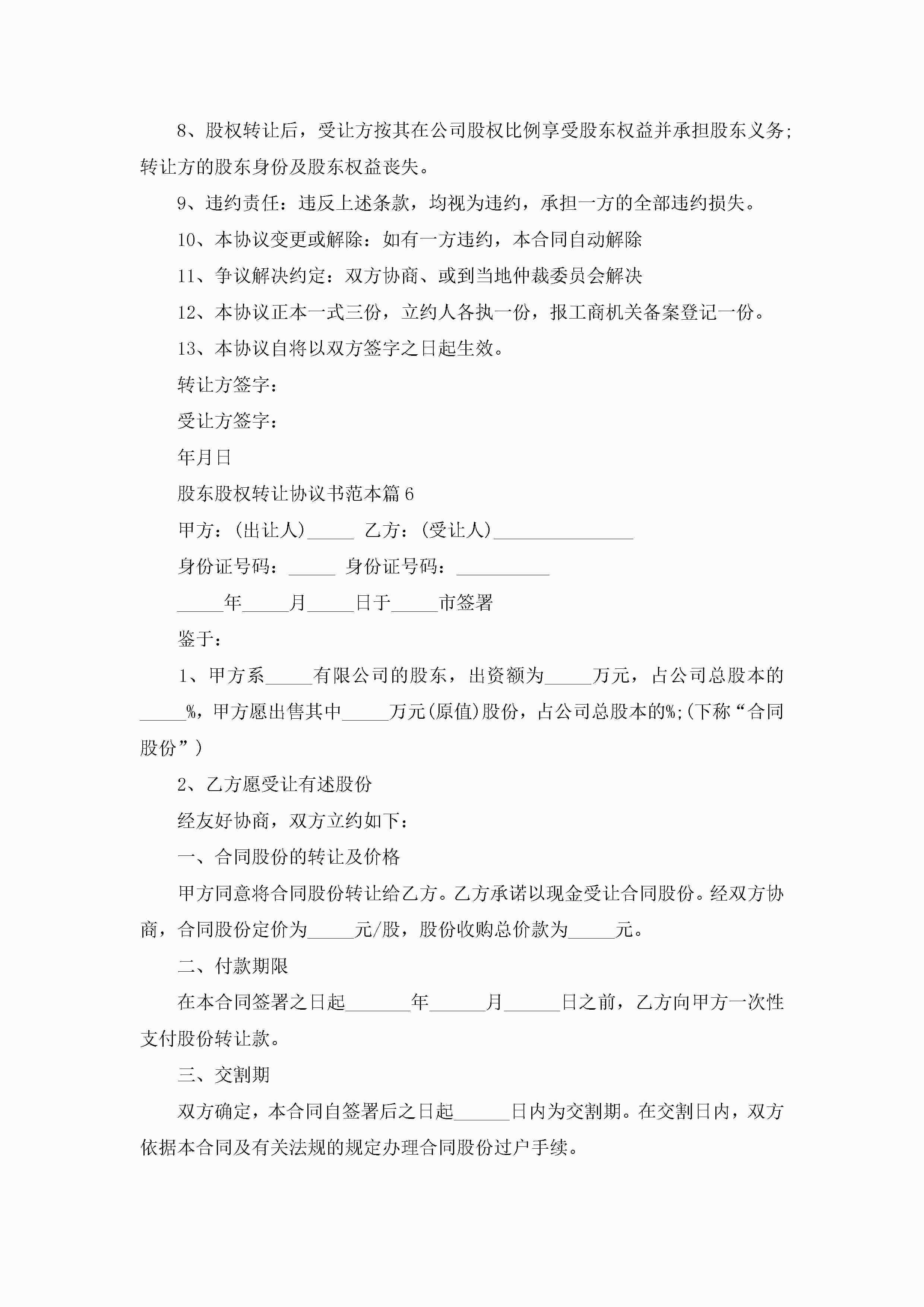 股东股权转让协议书范本(7篇)jugei3月22日 12:41更新关注203 股东股权转让协议书范本(7篇)此内容为付费资源,请付费后查看¥10.9 单篇文档限时特惠¥15个人会员开通企业会员开通立即下载无需登陆!可直接快捷下载单个模板付费资源© 版权声明THE ENDWord模板# 实用文档# 实用模板# 信函模板# 协议书 如有问题,可点击最底部“联系我们”联系客服 分享QQ空间微博QQ好友海报分享复制链接收藏