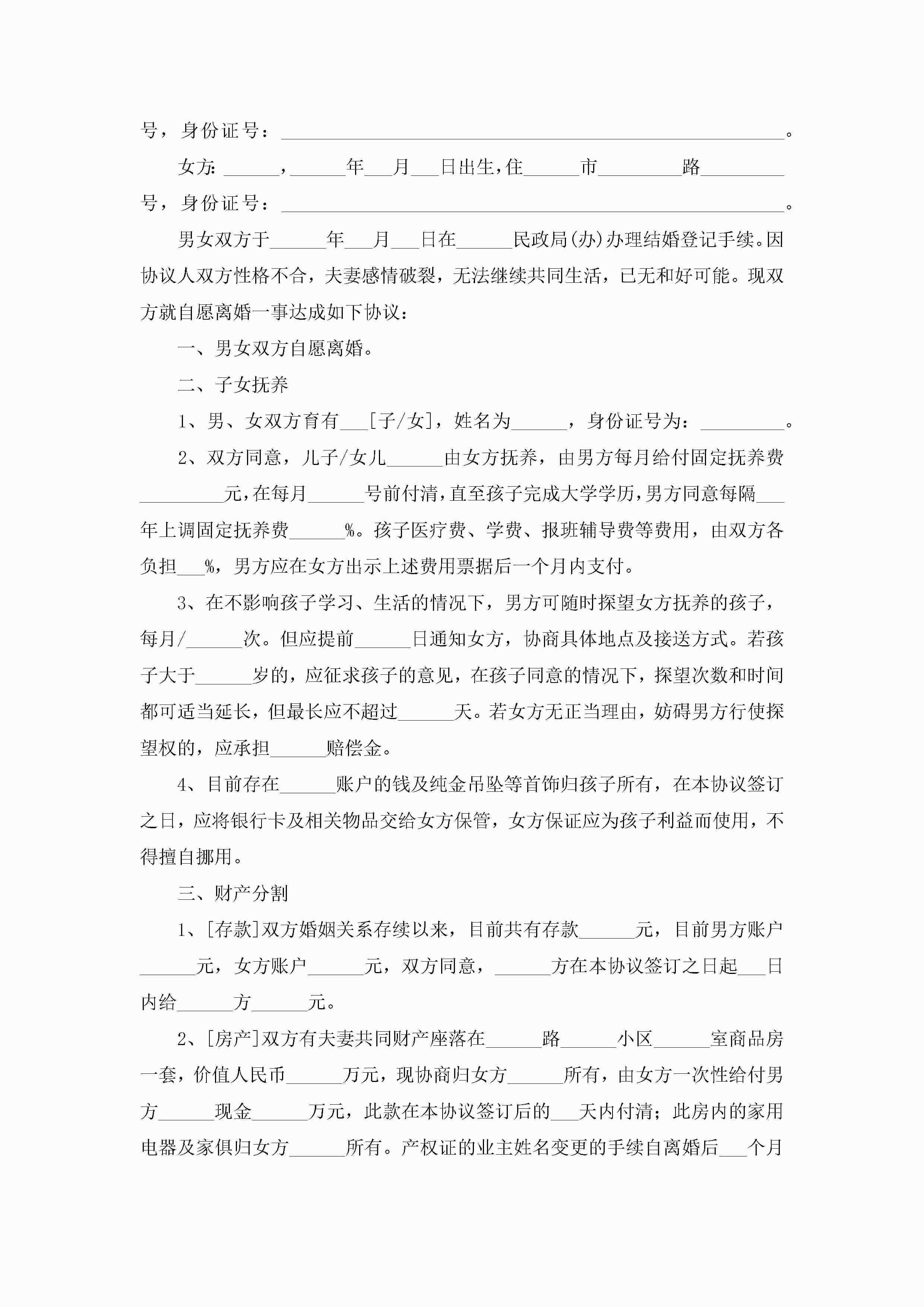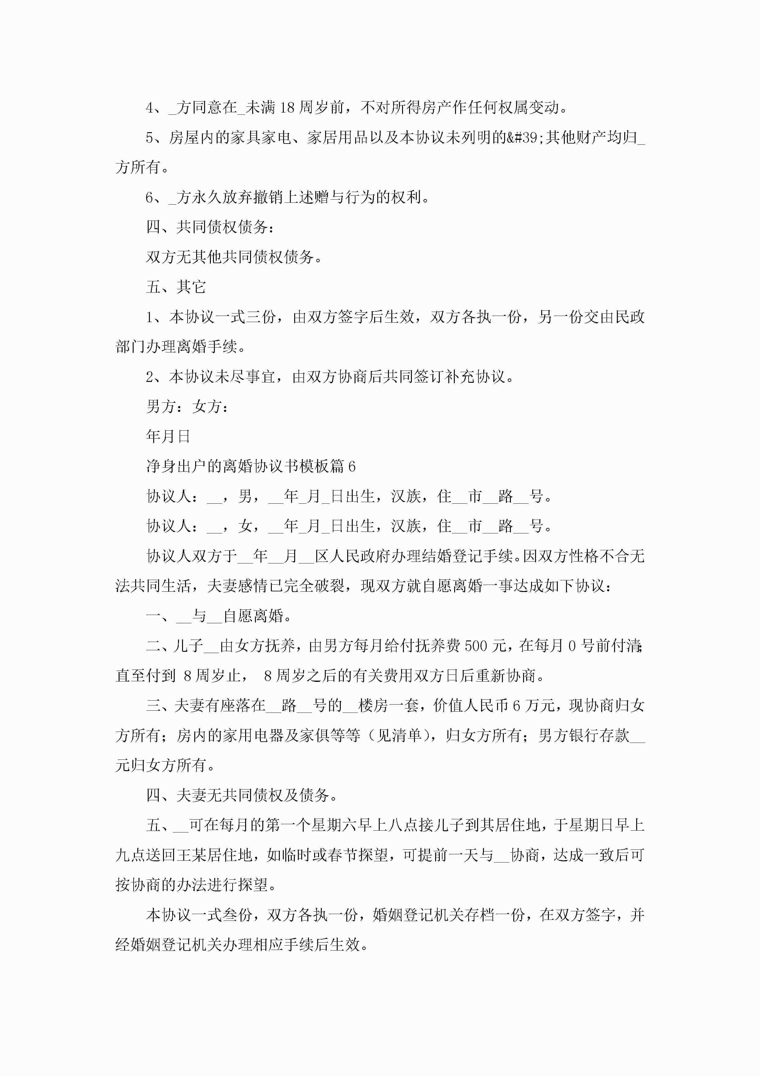净身出户的离婚协议书模板(精选10篇)jugei3月22日 12:41更新关注196 净身出户的离婚协议书模板(精选10篇)此内容为付费资源,请付费后查看¥10.9 单篇文档限时特惠¥15个人会员开通企业会员开通立即下载无需登陆!可直接快捷下载单个模板付费资源© 版权声明THE ENDWord模板# 实用文档# 实用模板# 信函模板# 协议书 如有问题,可点击最底部“联系我们”联系客服 分享QQ空间微博QQ好友海报分享复制链接收藏