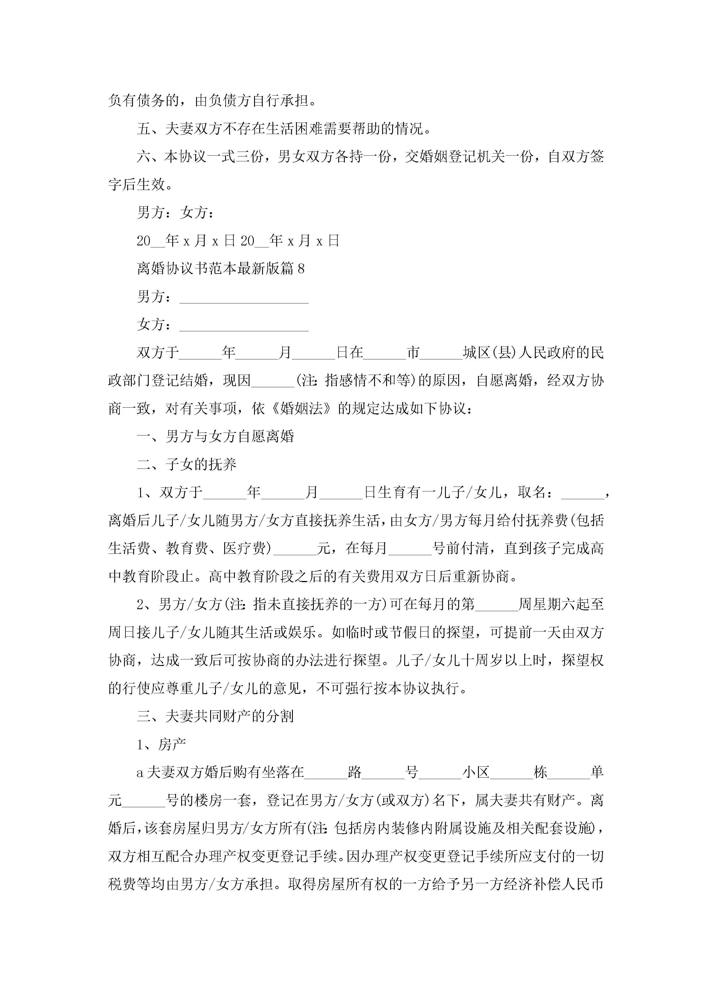 离婚协议书范本最新版(10篇)jugei3月22日 12:41更新关注263 离婚协议书范本最新版(10篇)此内容为付费资源,请付费后查看¥10.9 单篇文档限时特惠¥15个人会员开通企业会员开通立即下载无需登陆!可直接快捷下载单个模板付费资源© 版权声明THE ENDWord模板# 实用文档# 实用模板# 信函模板# 协议书 如有问题,可点击最底部“联系我们”联系客服 分享QQ空间微博QQ好友海报分享复制链接收藏