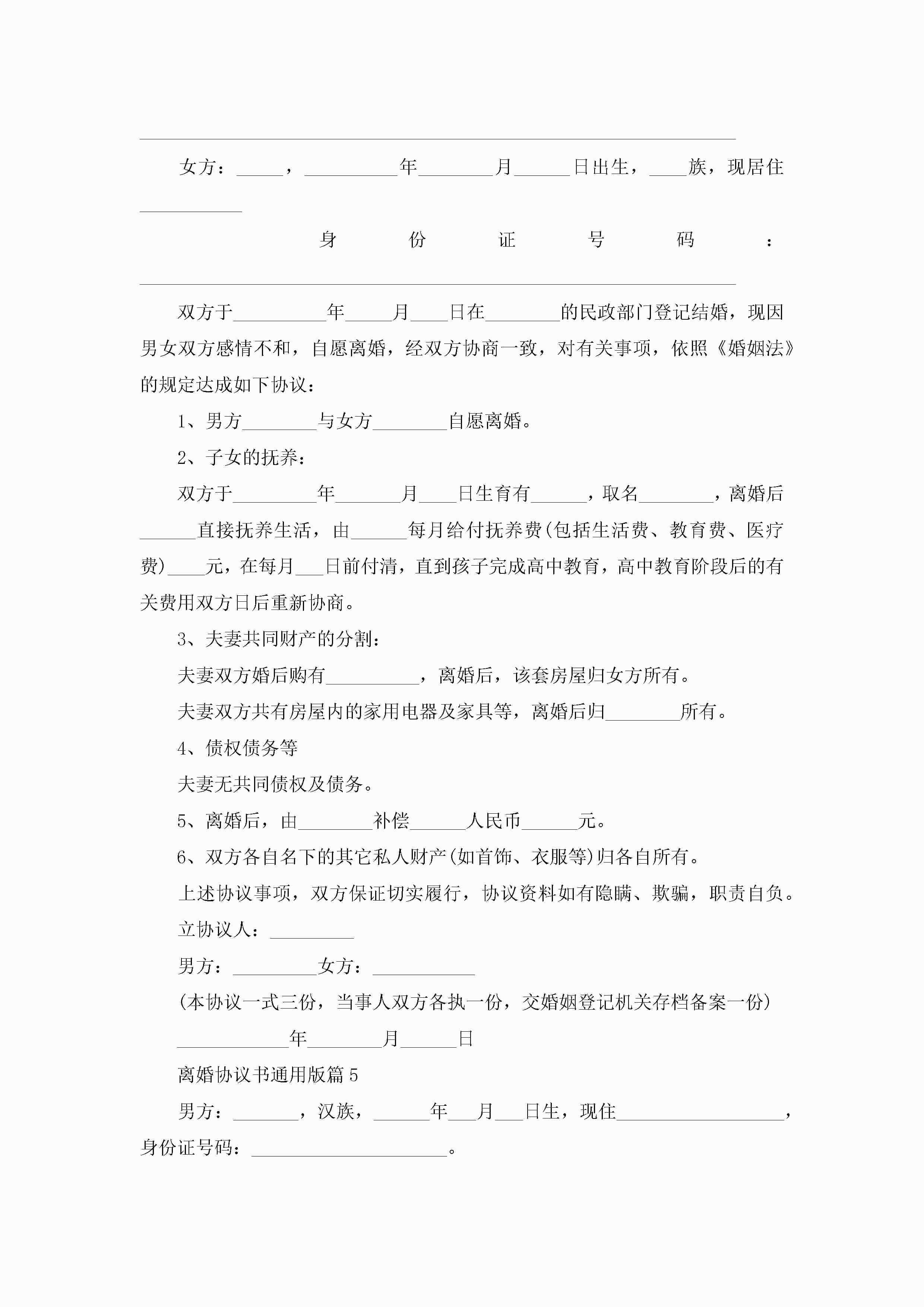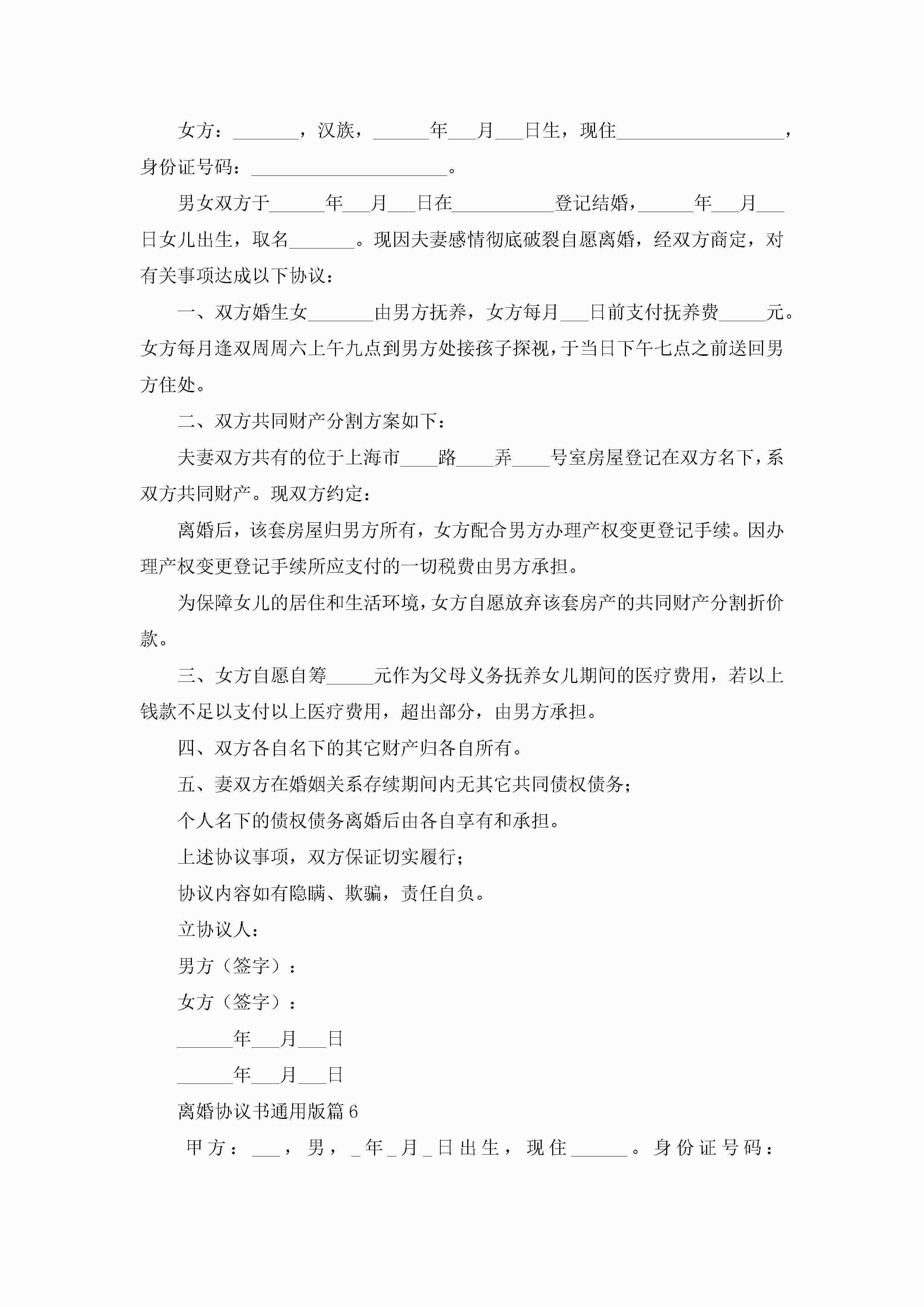 离婚协议书通用版10篇(精选)jugei3月22日 12:41更新关注190 离婚协议书通用版10篇(精选)此内容为付费资源,请付费后查看¥10.9 单篇文档限时特惠¥15个人会员开通企业会员开通立即下载无需登陆!可直接快捷下载单个模板付费资源© 版权声明THE ENDWord模板# 实用文档# 实用模板# 信函模板# 协议书 如有问题,可点击最底部“联系我们”联系客服 分享QQ空间微博QQ好友海报分享复制链接收藏