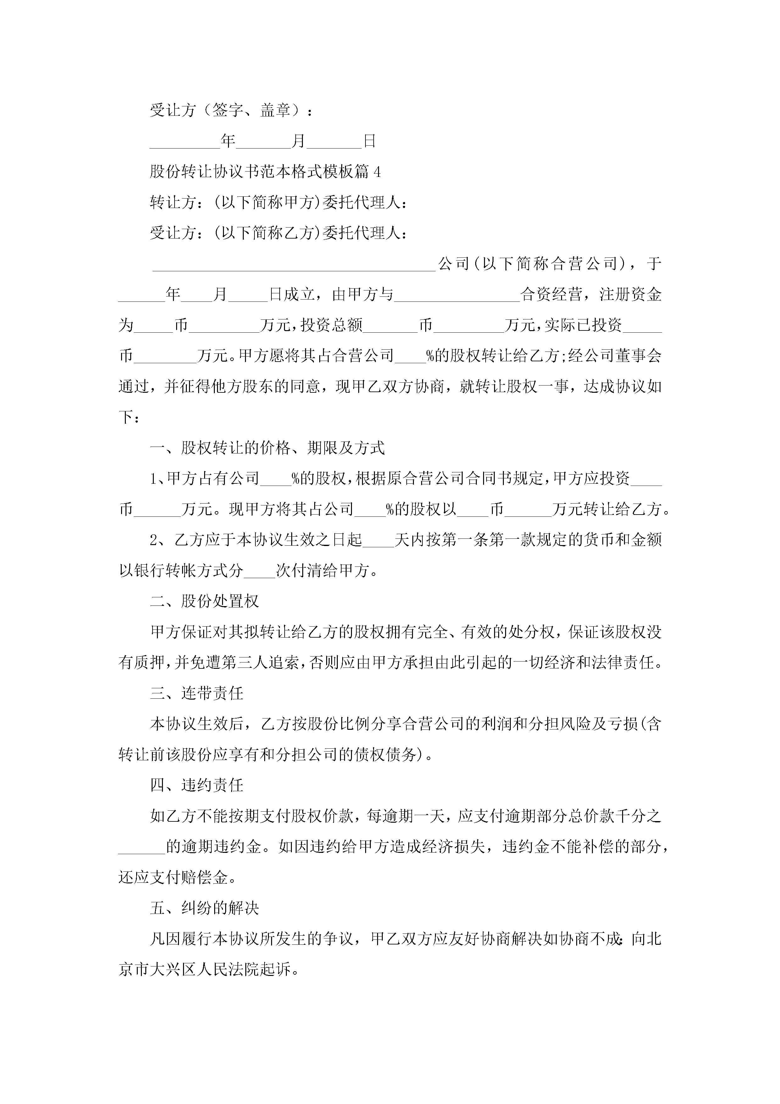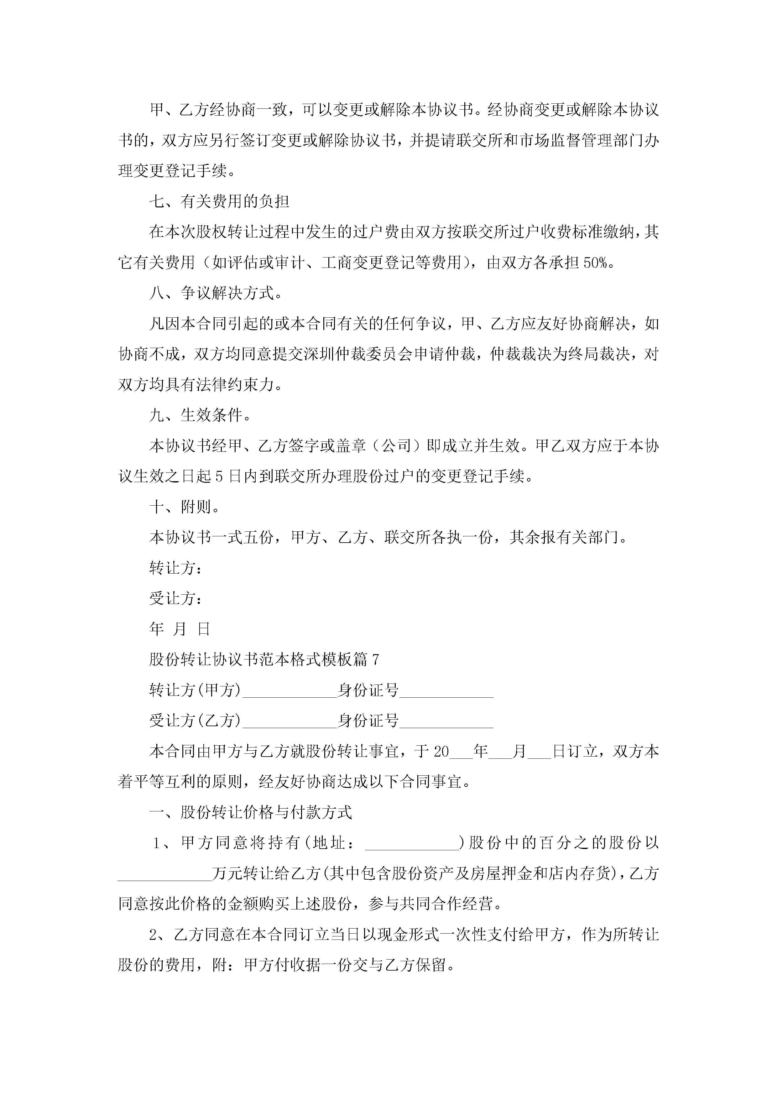 股份转让协议书范本格式模板(精选10篇)jugei3月22日 12:41更新关注192 股份转让协议书范本格式模板(精选10篇)此内容为付费资源,请付费后查看¥10.9 单篇文档限时特惠¥15个人会员开通企业会员开通立即下载无需登陆!可直接快捷下载单个模板付费资源© 版权声明THE ENDWord模板# 实用文档# 实用模板# 信函模板# 协议书 如有问题,可点击最底部“联系我们”联系客服 分享QQ空间微博QQ好友海报分享复制链接收藏