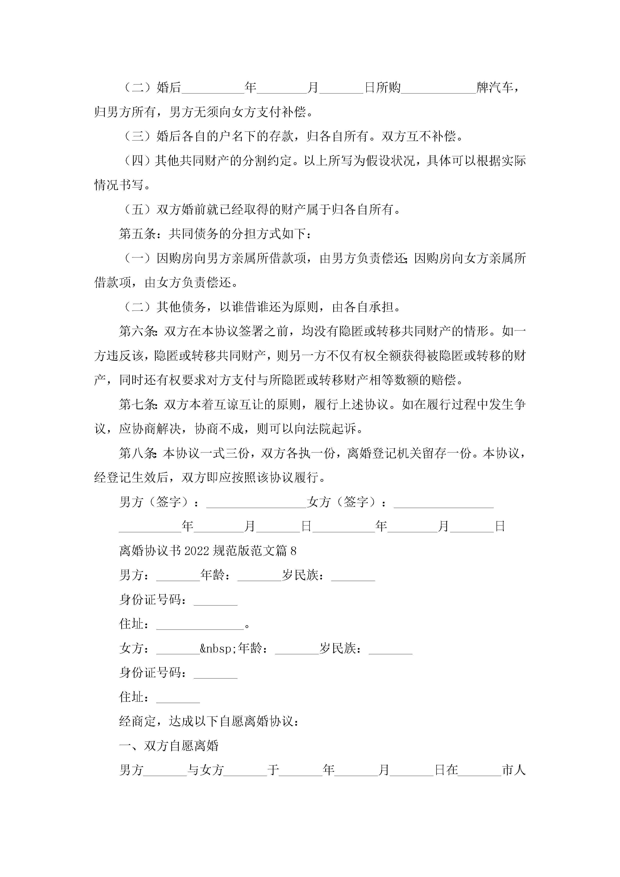 离婚协议书2022规范版范文9篇jugei3月22日 12:41更新关注195 离婚协议书2022规范版范文9篇此内容为付费资源,请付费后查看¥10.9 单篇文档限时特惠¥15个人会员开通企业会员开通立即下载无需登陆!可直接快捷下载单个模板付费资源© 版权声明THE ENDWord模板# 实用文档# 实用模板# 信函模板# 协议书 如有问题,可点击最底部“联系我们”联系客服 分享QQ空间微博QQ好友海报分享复制链接收藏