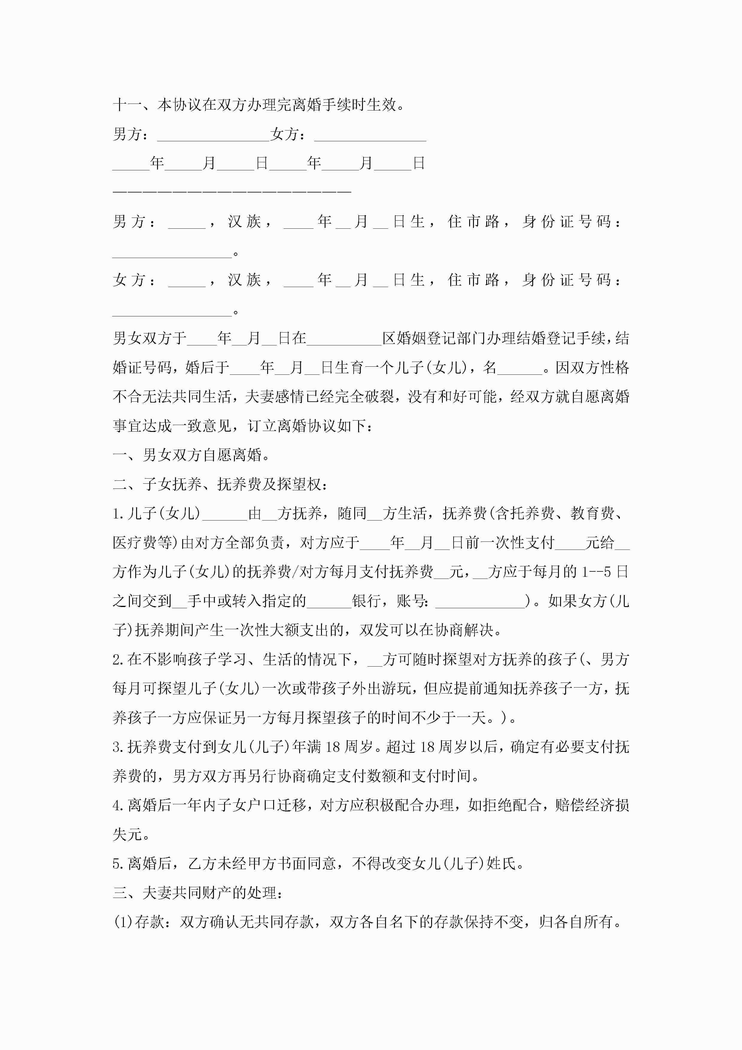 民政局离婚协议书范本最新版(精选10篇)jugei3月22日 12:41更新关注213 民政局离婚协议书范本最新版(精选10篇)此内容为付费资源,请付费后查看¥10.9 单篇文档限时特惠¥15个人会员开通企业会员开通立即下载无需登陆!可直接快捷下载单个模板付费资源© 版权声明THE ENDWord模板# 实用文档# 实用模板# 信函模板# 协议书 如有问题,可点击最底部“联系我们”联系客服 分享QQ空间微博QQ好友海报分享复制链接收藏