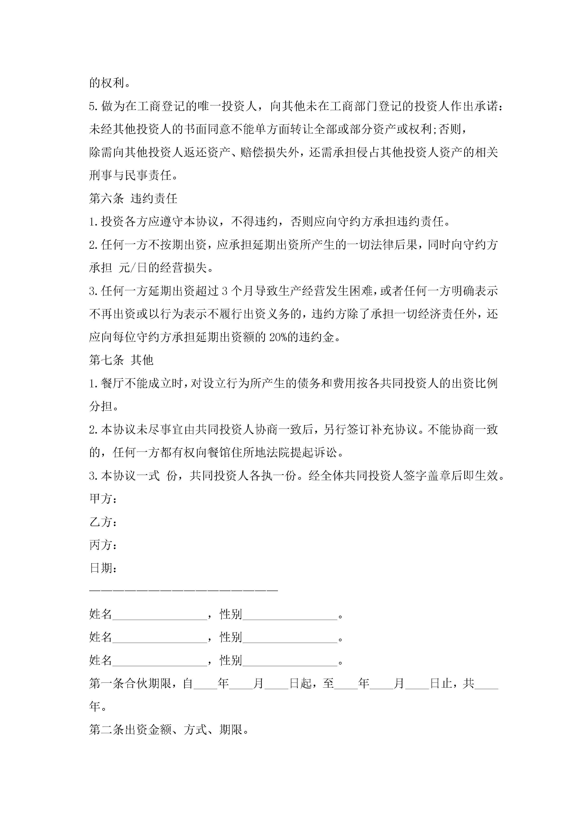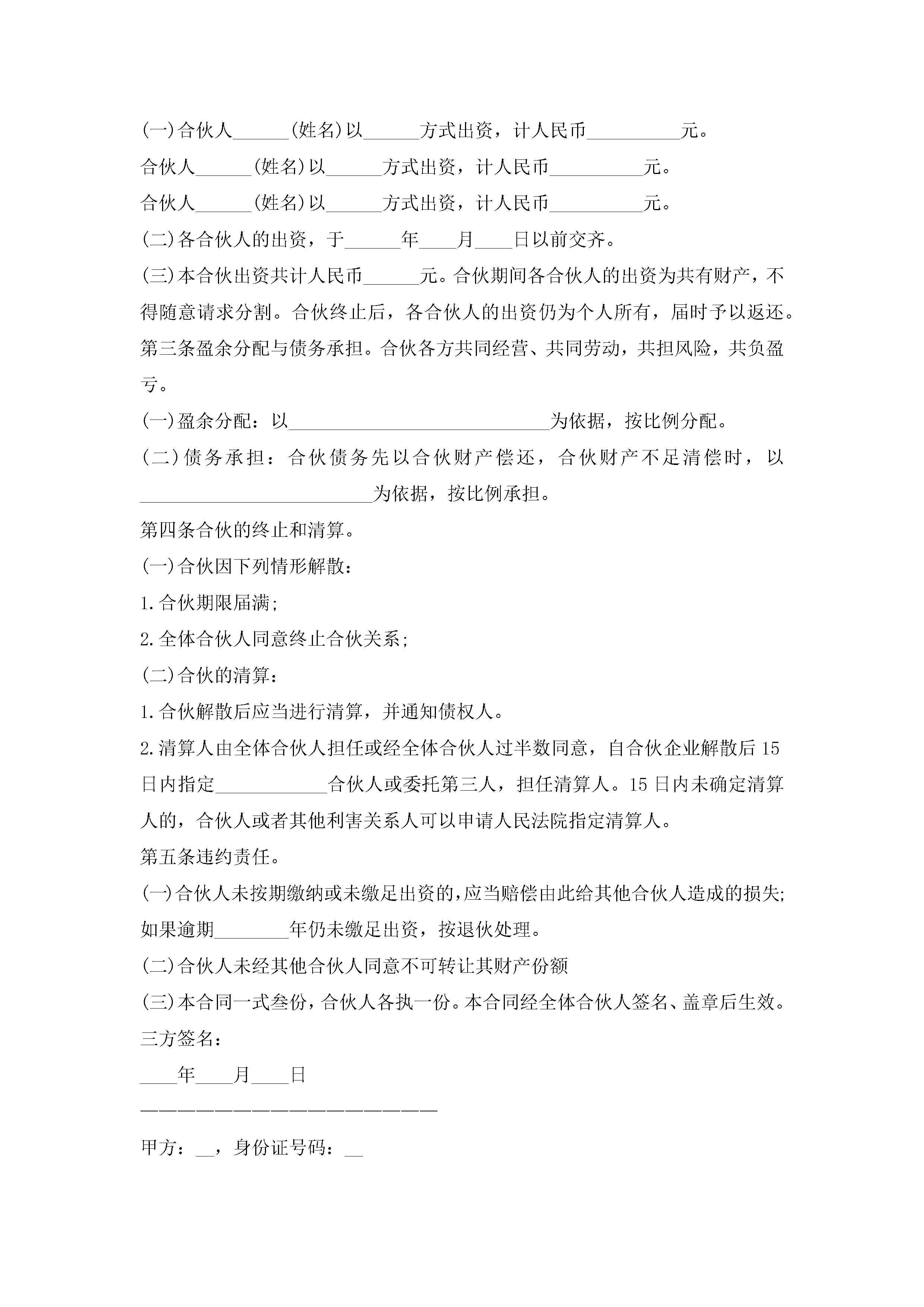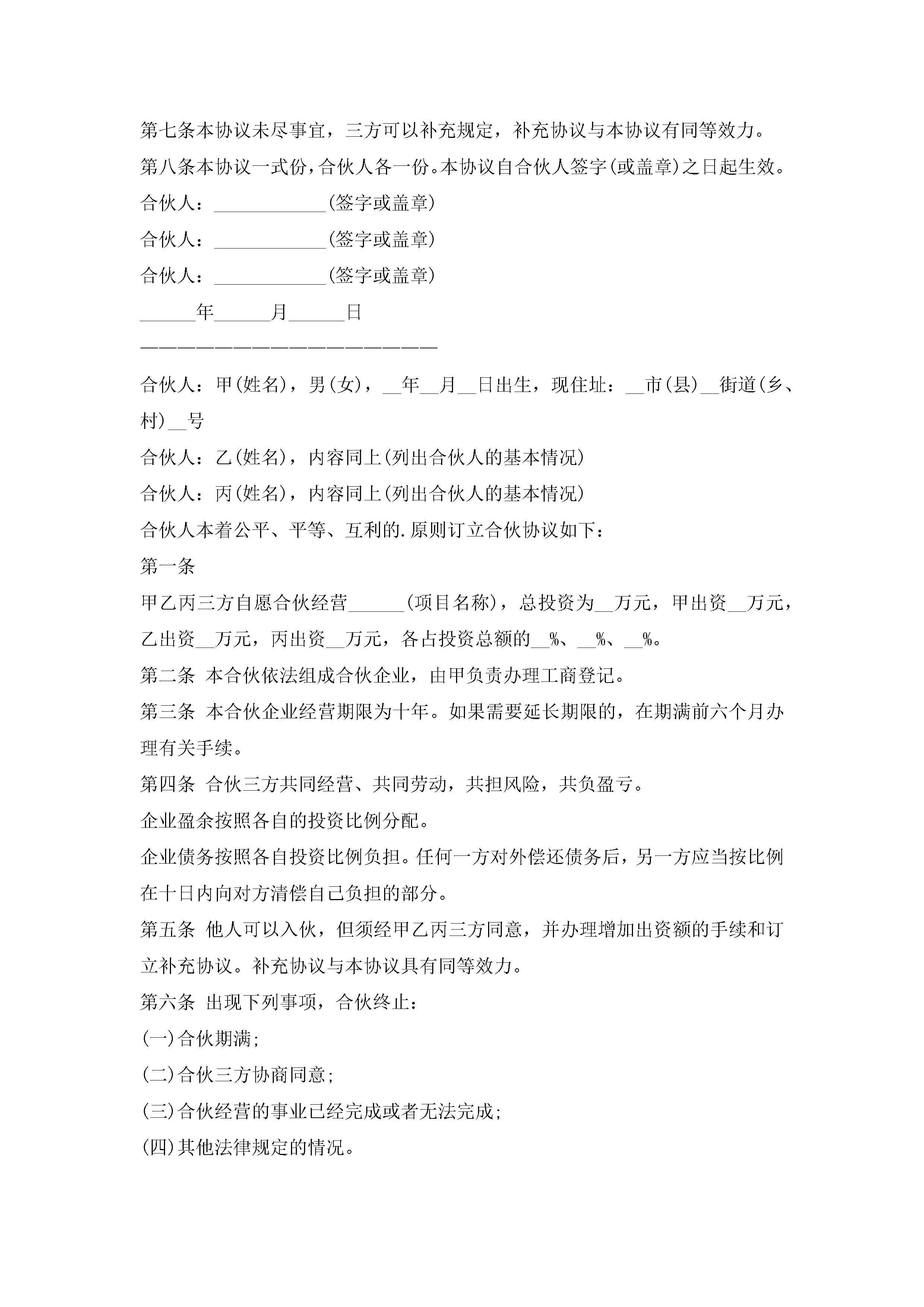 三人合伙协议书范本(精选7篇)jugei3月22日 12:41更新关注201 三人合伙协议书范本(精选7篇)此内容为付费资源,请付费后查看¥10.9 单篇文档限时特惠¥15个人会员开通企业会员开通立即下载无需登陆!可直接快捷下载单个模板付费资源© 版权声明THE ENDWord模板# 实用文档# 实用模板# 信函模板# 协议书 如有问题,可点击最底部“联系我们”联系客服 分享QQ空间微博QQ好友海报分享复制链接收藏