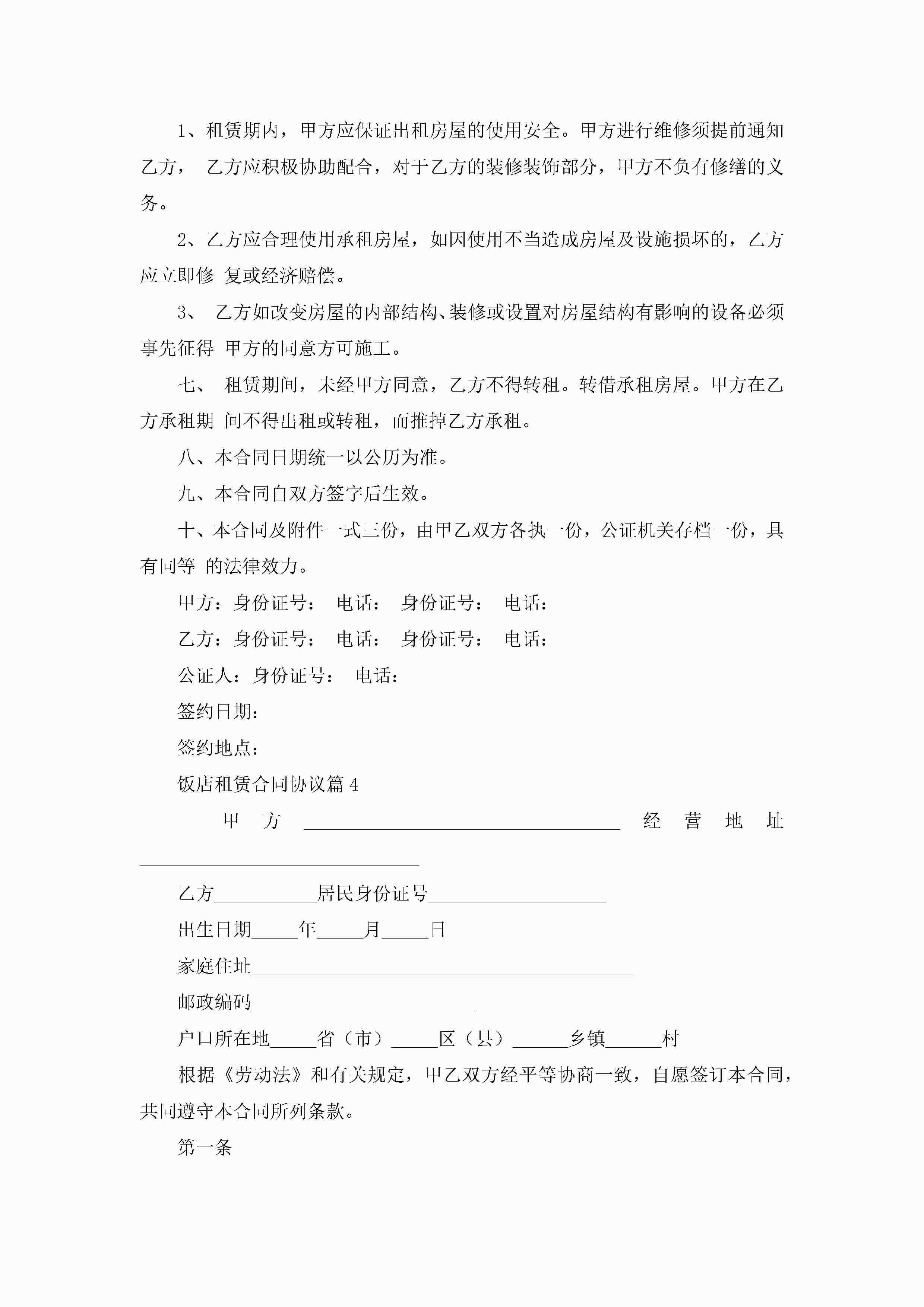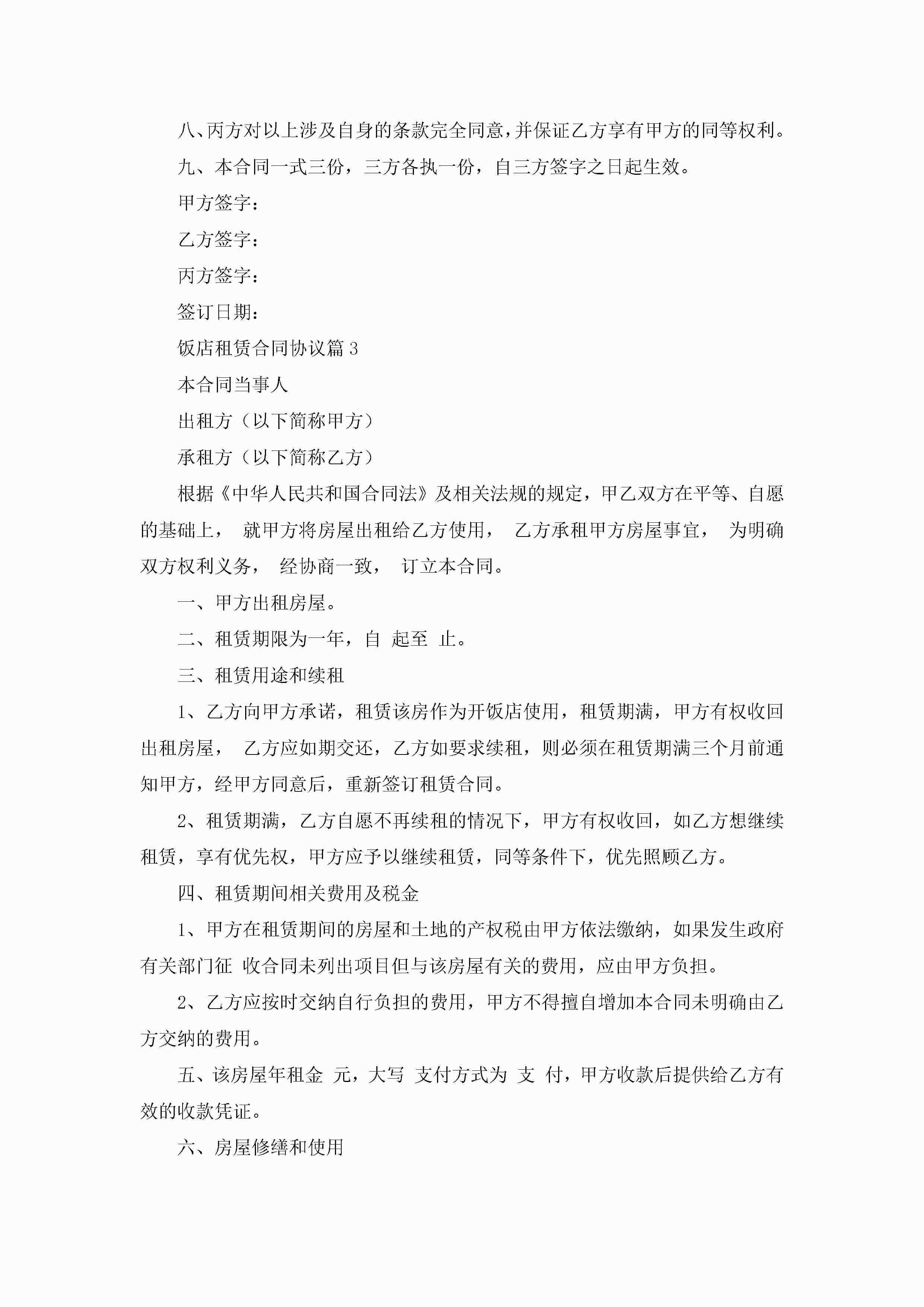 2022饭店租赁合同协议jugei3月22日 12:41更新关注204 2022饭店租赁合同协议此内容为付费资源,请付费后查看¥10.9 单篇文档限时特惠¥15个人会员开通企业会员开通立即下载无需登陆!可直接快捷下载单个模板付费资源© 版权声明THE ENDWord模板# 实用文档# 信函模板# 协议书# 饭店租赁合同协议 如有问题,可点击最底部“联系我们”联系客服 分享QQ空间微博QQ好友海报分享复制链接收藏