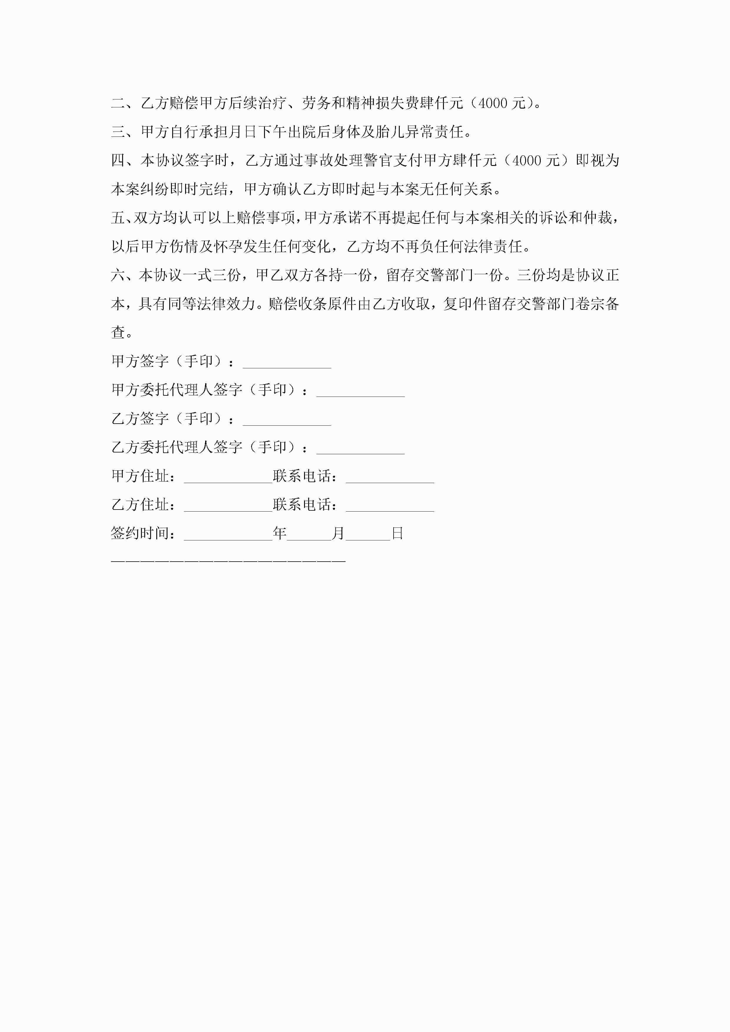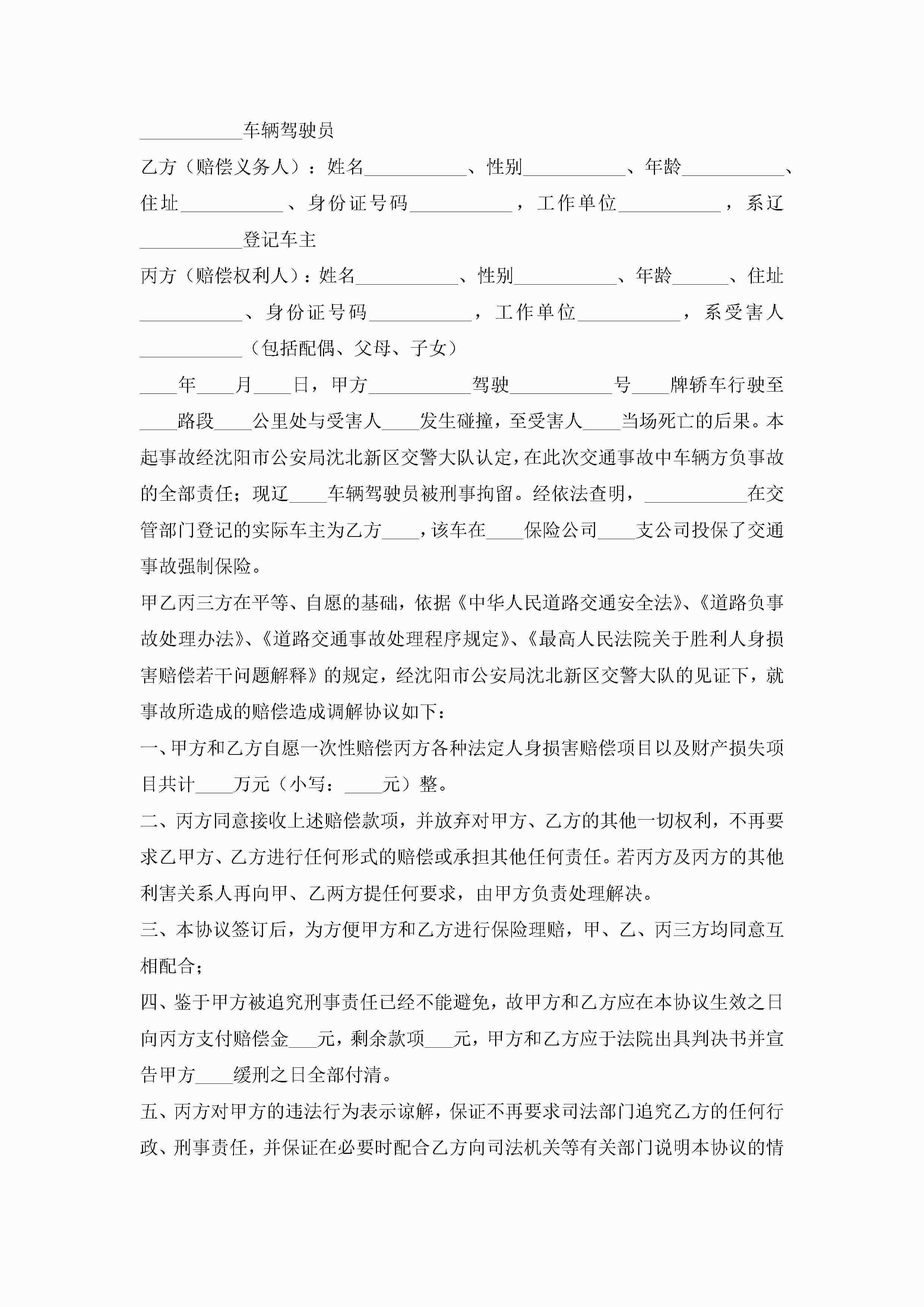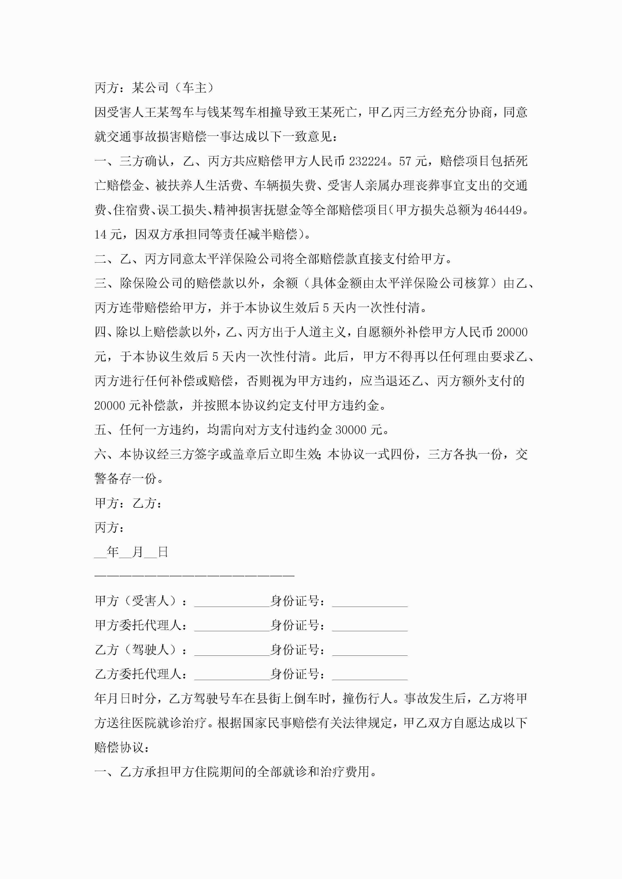 交通意外事故赔偿协议书(7篇)jugei3月22日 12:41更新关注191 交通意外事故赔偿协议书(7篇)此内容为付费资源,请付费后查看¥10.9 单篇文档限时特惠¥15个人会员开通企业会员开通立即下载无需登陆!可直接快捷下载单个模板付费资源© 版权声明THE ENDWord模板# 实用文档# 实用模板# 信函模板# 协议书 如有问题,可点击最底部“联系我们”联系客服 分享QQ空间微博QQ好友海报分享复制链接收藏