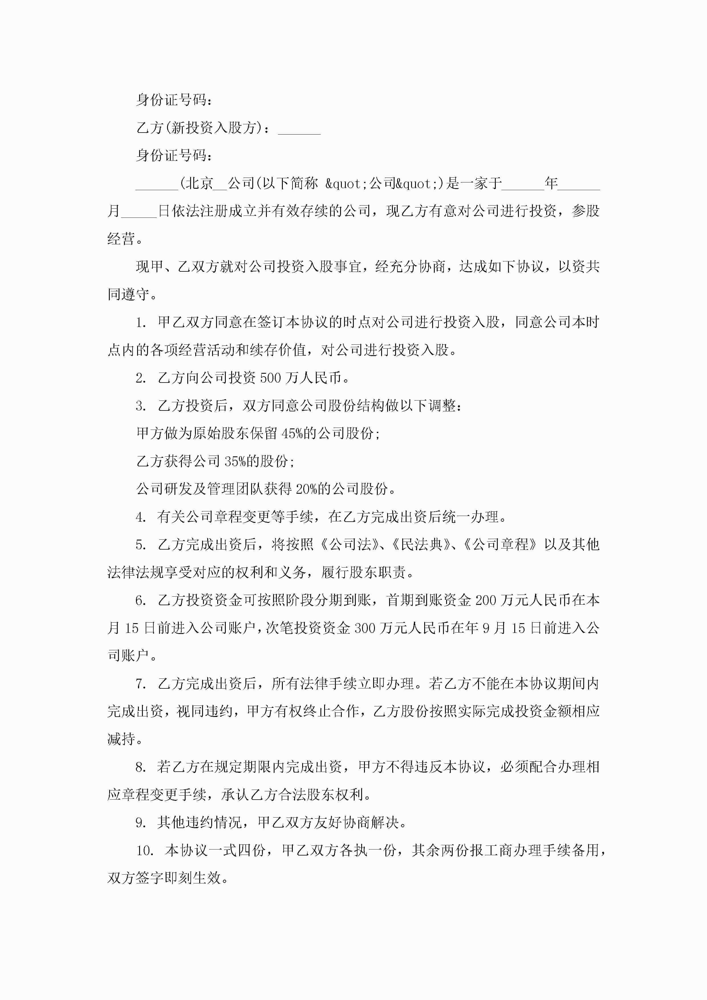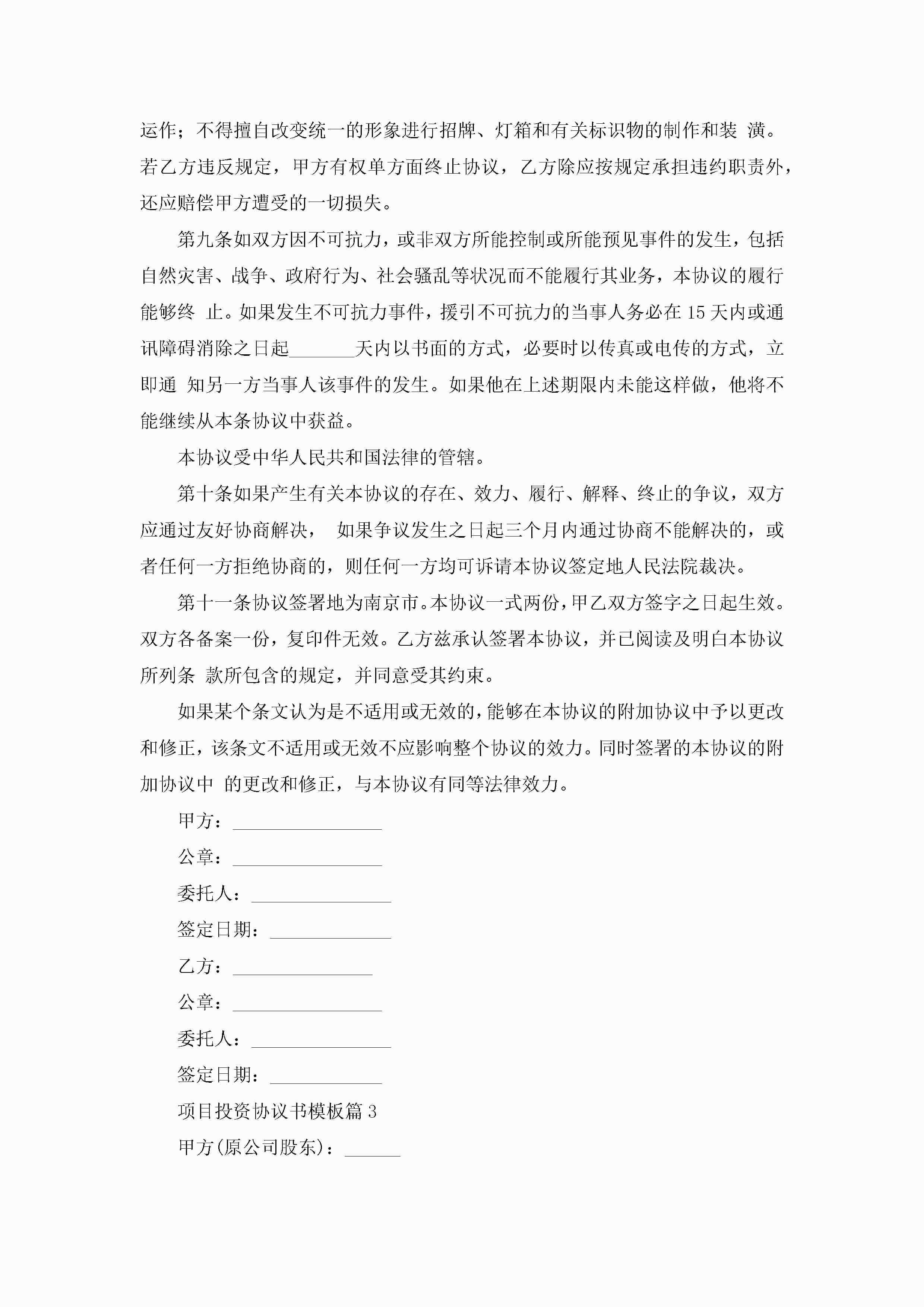 项目投资协议书模板(7篇)jugei3月22日 12:41更新关注197 项目投资协议书模板(7篇)此内容为付费资源,请付费后查看¥10.9 单篇文档限时特惠¥15个人会员开通企业会员开通立即下载无需登陆!可直接快捷下载单个模板付费资源© 版权声明THE ENDWord模板# 实用文档# 实用模板# 信函模板# 协议书 如有问题,可点击最底部“联系我们”联系客服 分享QQ空间微博QQ好友海报分享复制链接收藏