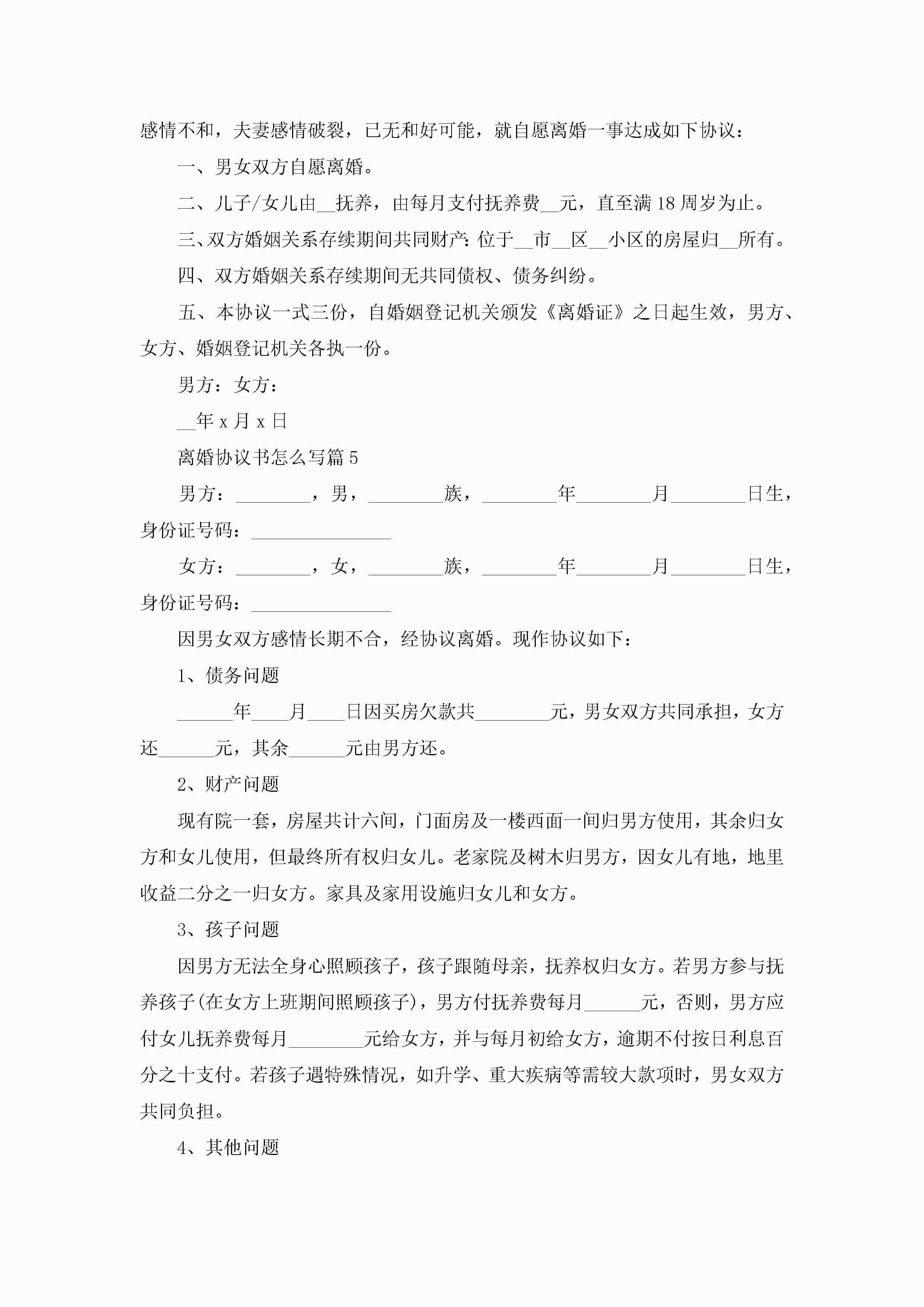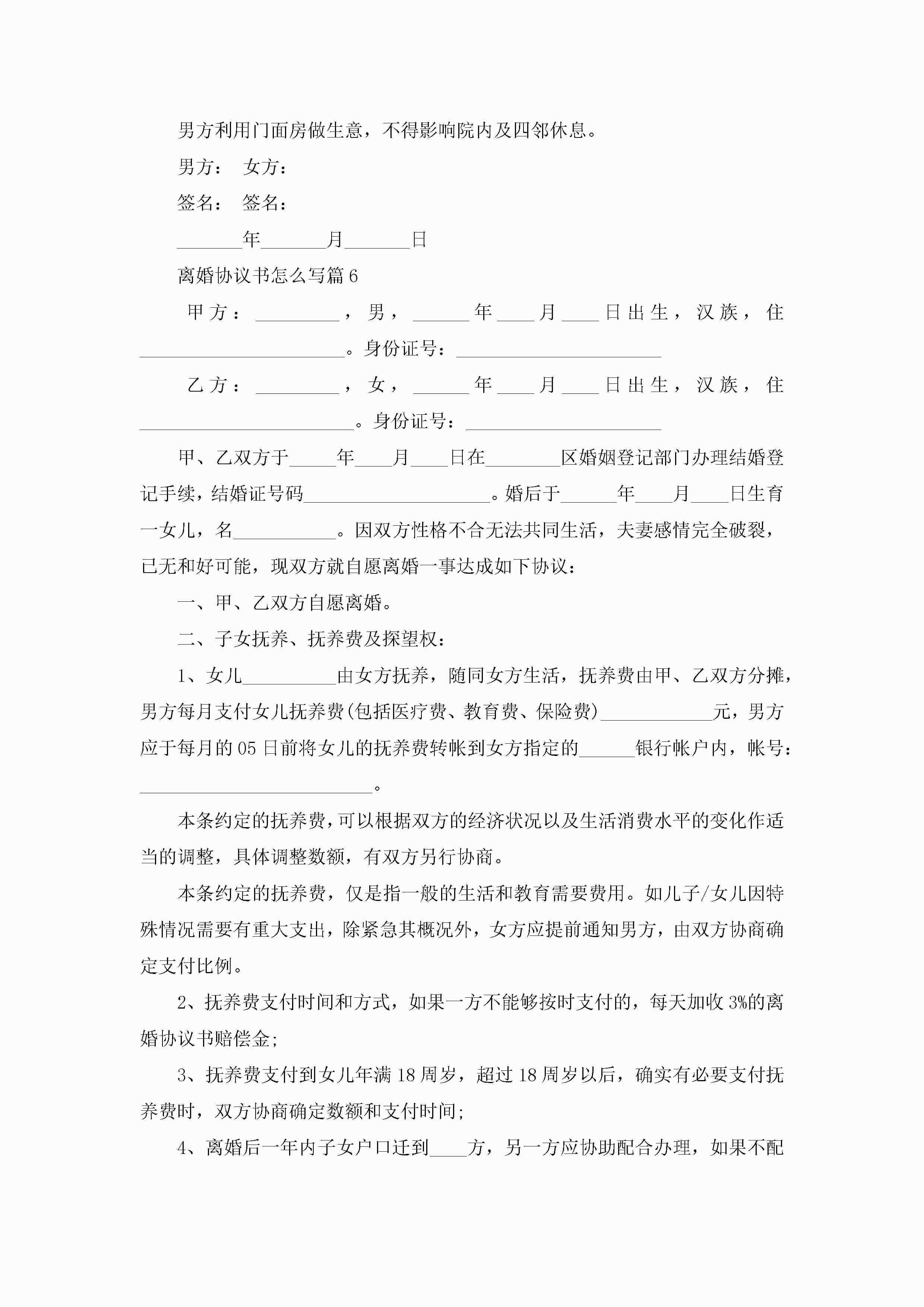 离婚协议书怎么写(8篇)jugei3月22日 12:41更新关注287 离婚协议书怎么写(8篇)此内容为付费资源,请付费后查看¥10.9 单篇文档限时特惠¥15个人会员开通企业会员开通立即下载无需登陆!可直接快捷下载单个模板付费资源© 版权声明THE ENDWord模板# 实用文档# 实用模板# 信函模板# 协议书 如有问题,可点击最底部“联系我们”联系客服 分享QQ空间微博QQ好友海报分享复制链接收藏