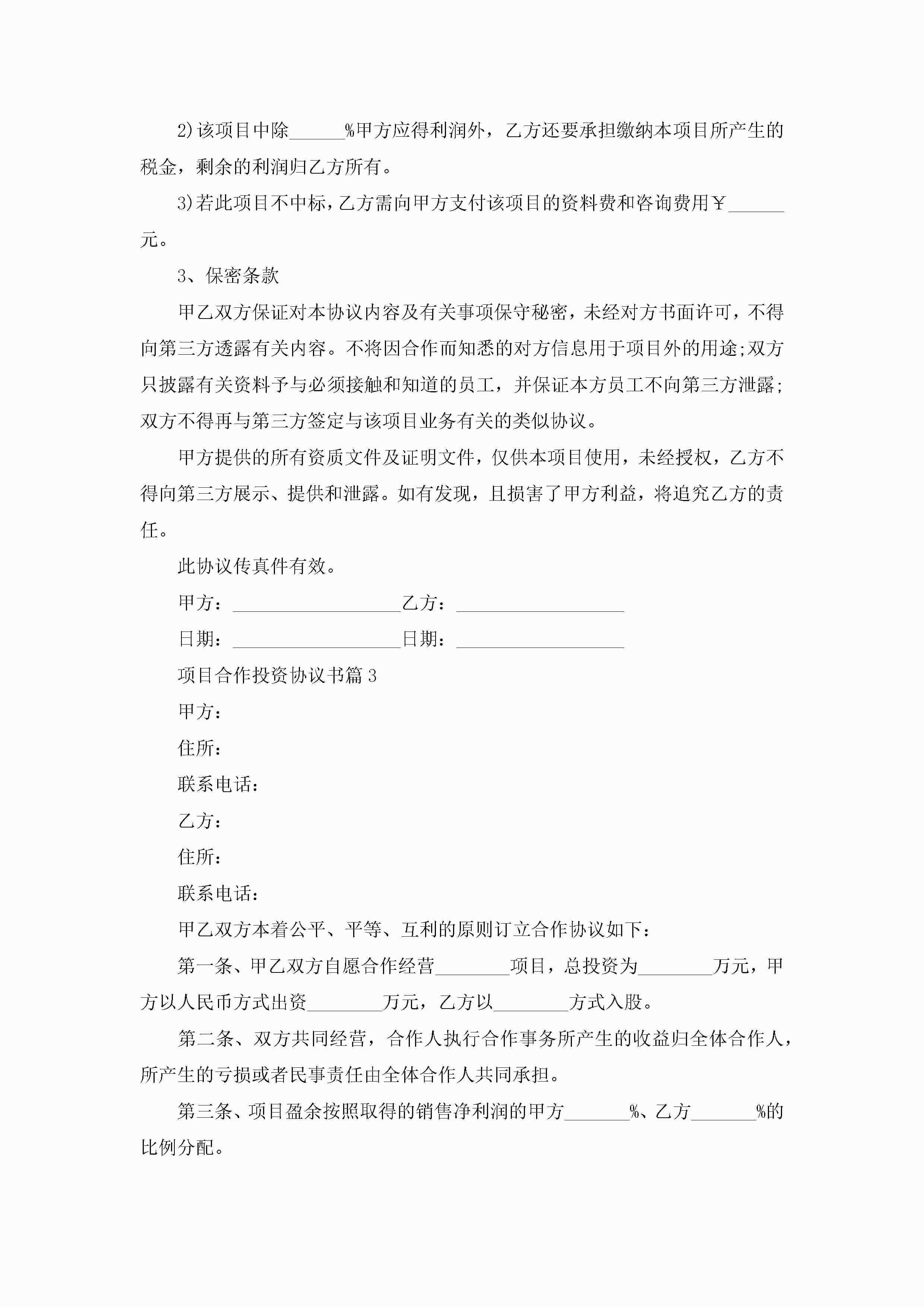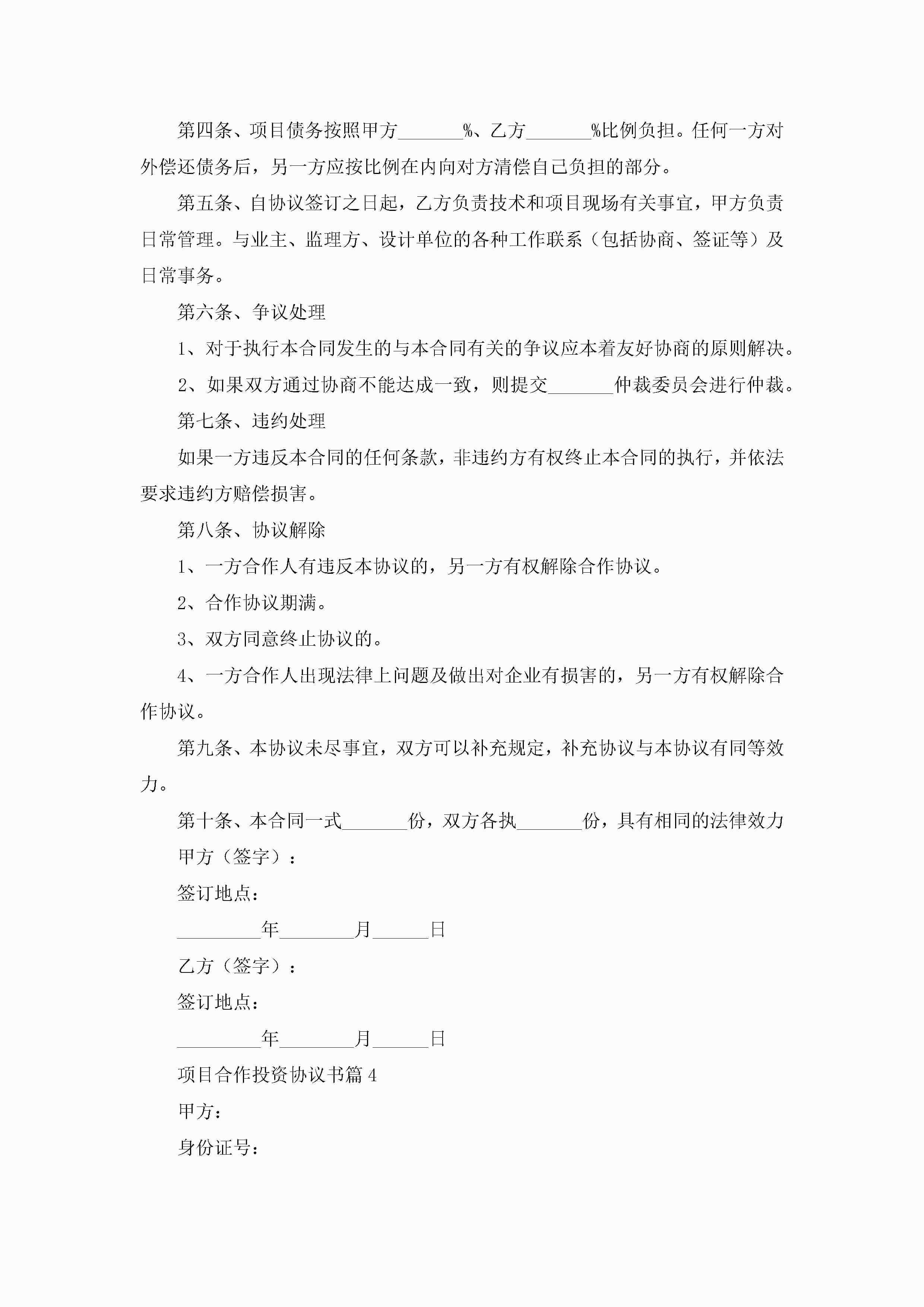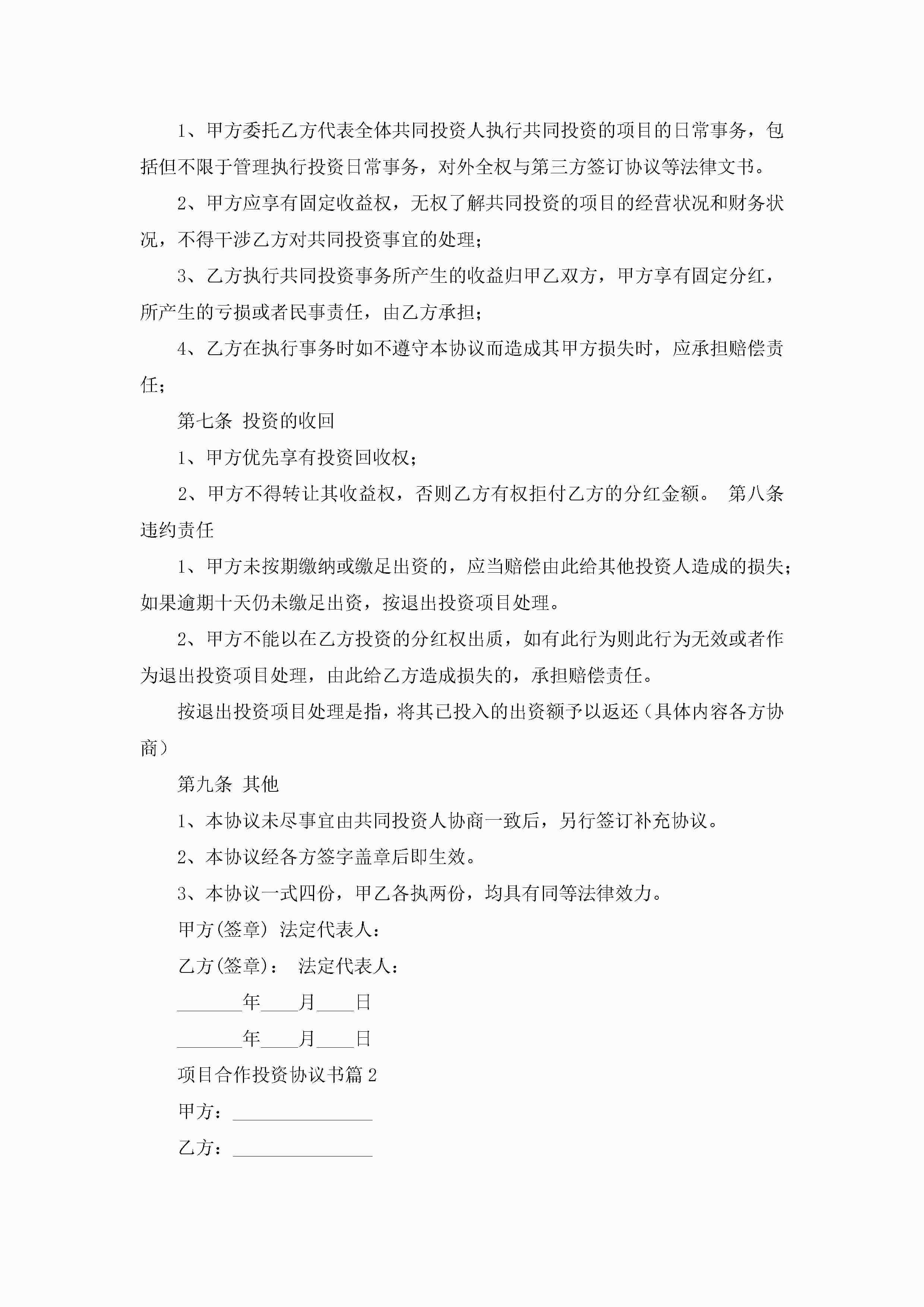 项目合作投资协议书(7篇)jugei3月22日 12:41更新关注193 项目合作投资协议书(7篇)此内容为付费资源,请付费后查看¥10.9 单篇文档限时特惠¥15个人会员开通企业会员开通立即下载无需登陆!可直接快捷下载单个模板付费资源© 版权声明THE ENDWord模板# 实用文档# 实用模板# 信函模板# 协议书 如有问题,可点击最底部“联系我们”联系客服 分享QQ空间微博QQ好友海报分享复制链接收藏