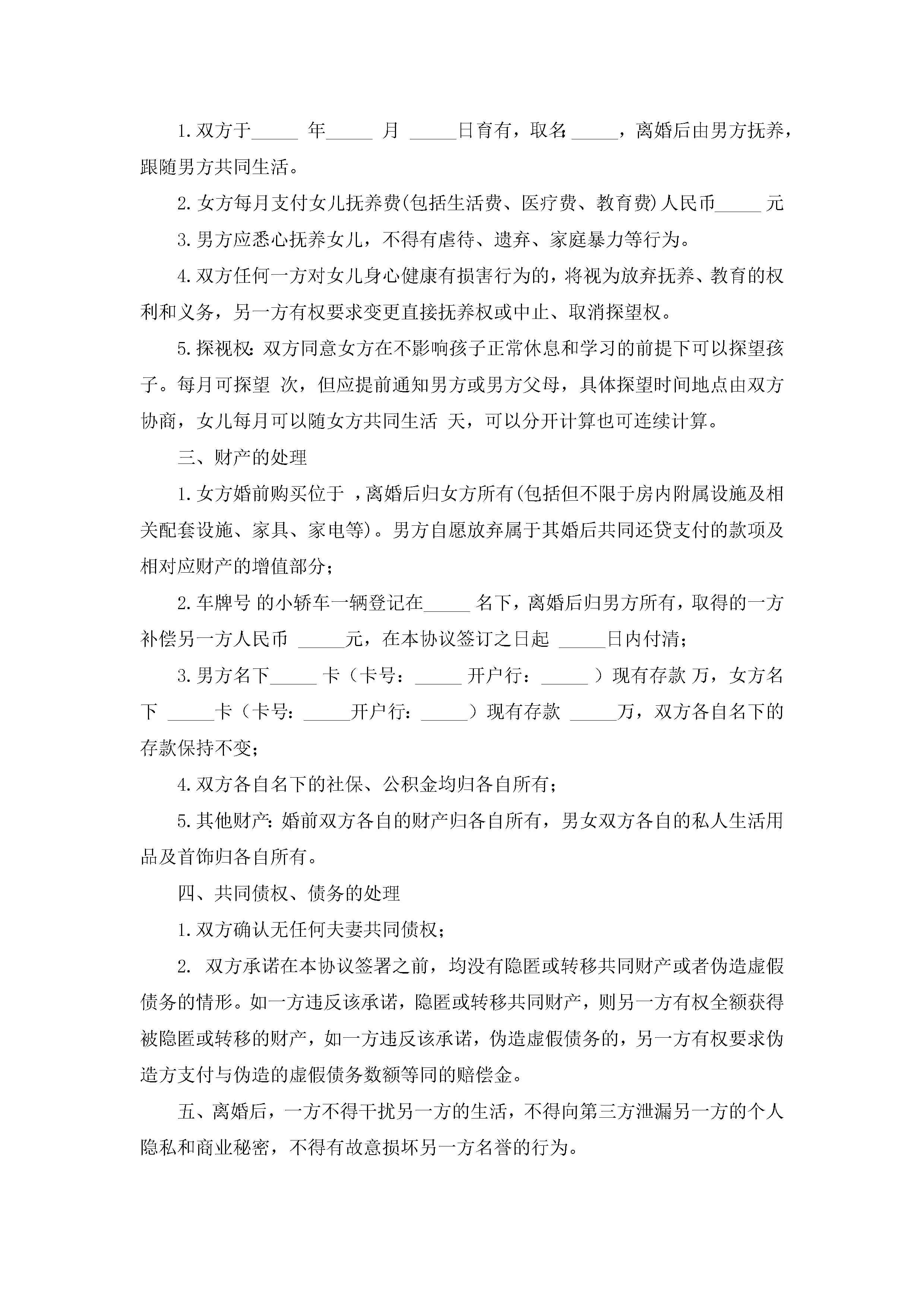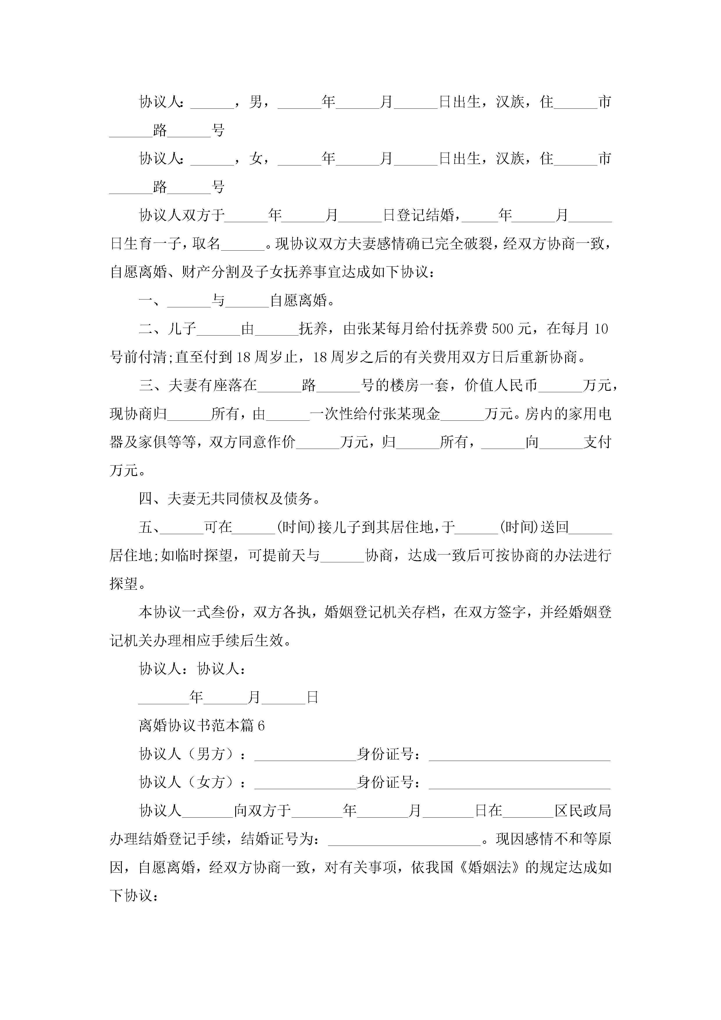 离婚协议书范本8篇最新jugei3月22日 12:41更新关注292 离婚协议书范本8篇最新此内容为付费资源,请付费后查看¥10.9 单篇文档限时特惠¥15个人会员开通企业会员开通立即下载无需登陆!可直接快捷下载单个模板付费资源© 版权声明THE ENDWord模板# 实用文档# 实用模板# 信函模板# 协议书 如有问题,可点击最底部“联系我们”联系客服 分享QQ空间微博QQ好友海报分享复制链接收藏