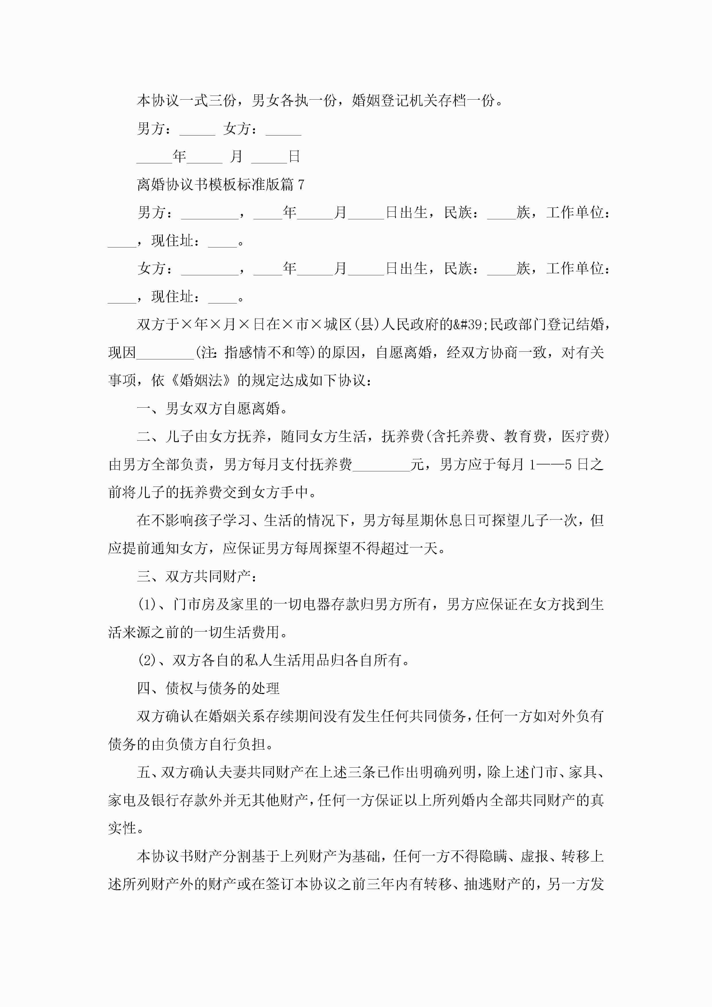 离婚协议书模板标准版(9篇)jugei3月22日 12:41更新关注330 离婚协议书模板标准版(9篇)此内容为付费资源,请付费后查看¥10.9 单篇文档限时特惠¥15个人会员开通企业会员开通立即下载无需登陆!可直接快捷下载单个模板付费资源© 版权声明THE ENDWord模板# 实用文档# 实用模板# 信函模板# 协议书 如有问题,可点击最底部“联系我们”联系客服 分享QQ空间微博QQ好友海报分享复制链接收藏