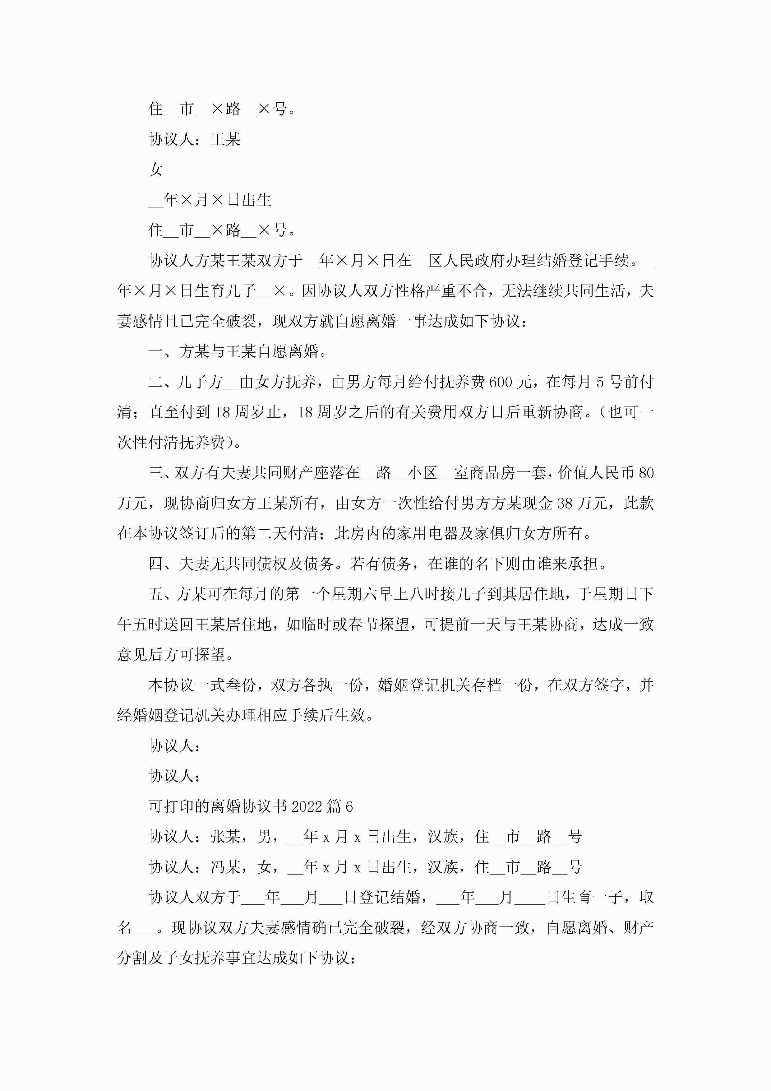 可打印的离婚协议书2022(八篇)jugei3月22日 12:41更新关注196 可打印的离婚协议书2022(八篇)此内容为付费资源,请付费后查看¥10.9 单篇文档限时特惠¥15个人会员开通企业会员开通立即下载无需登陆!可直接快捷下载单个模板付费资源© 版权声明THE ENDWord模板# 实用文档# 实用模板# 信函模板# 协议书 如有问题,可点击最底部“联系我们”联系客服 分享QQ空间微博QQ好友海报分享复制链接收藏
