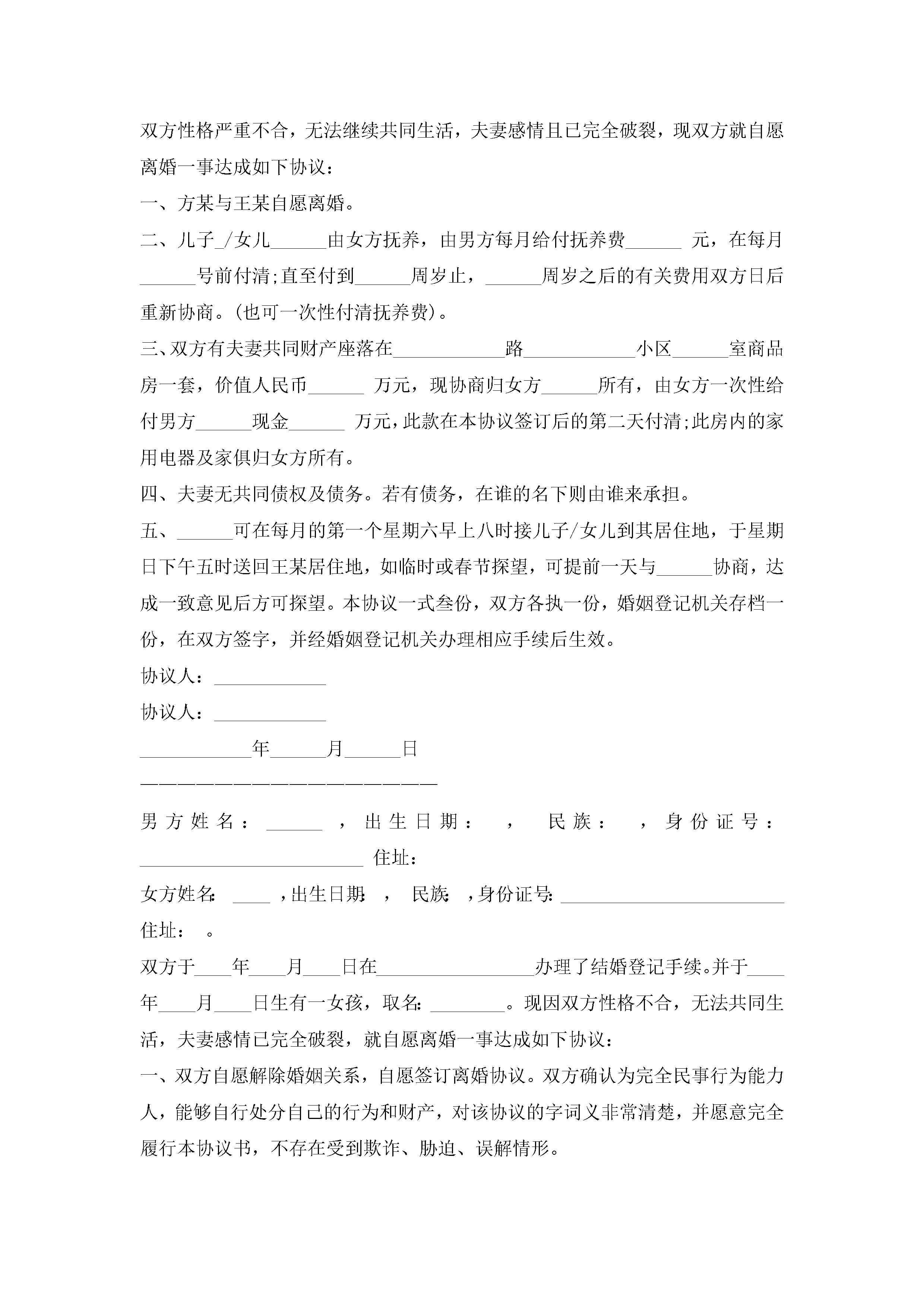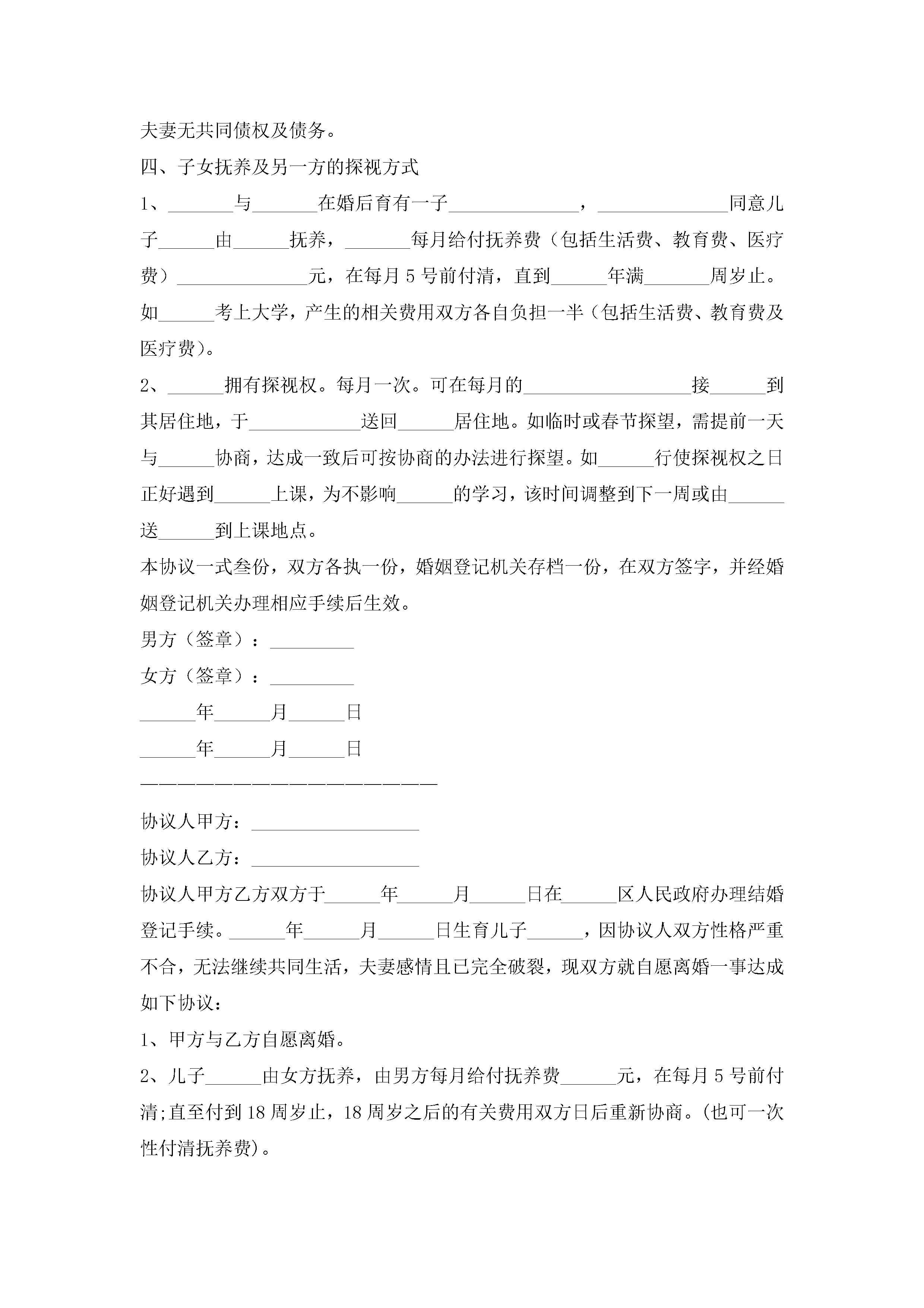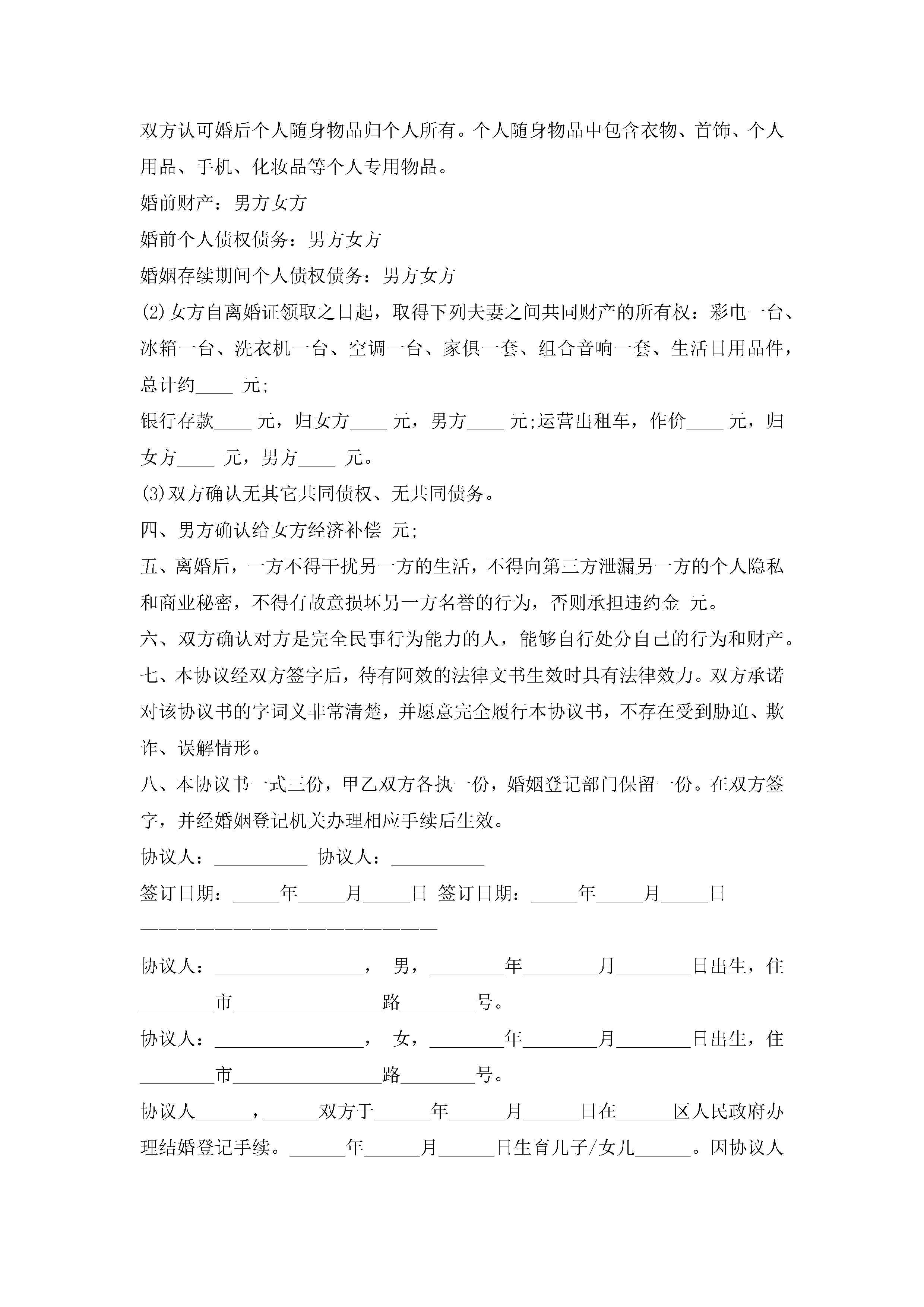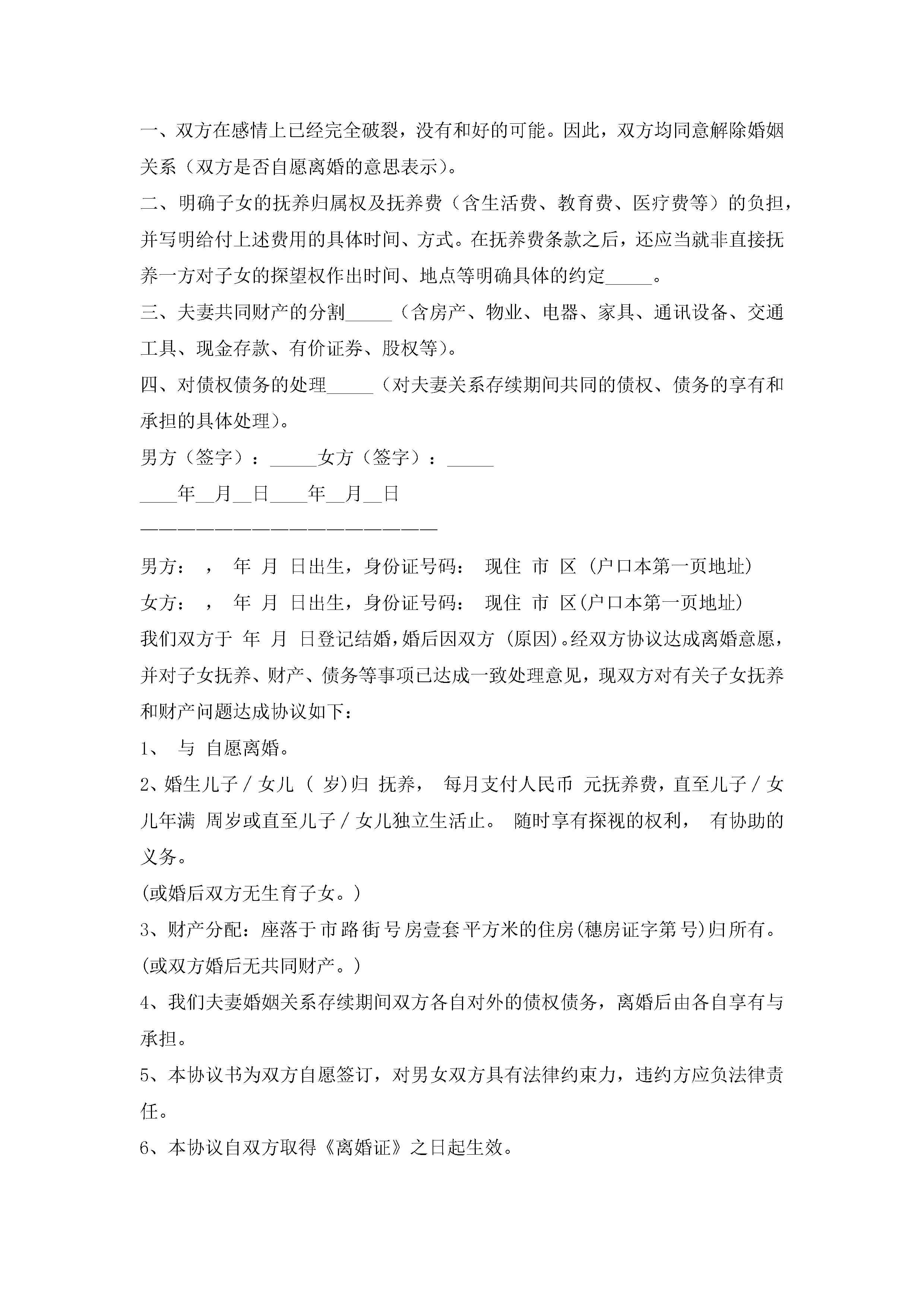 离婚协议书怎么写(精选10篇)jugei3月22日 12:41更新关注263 离婚协议书怎么写(精选10篇)此内容为付费资源,请付费后查看¥10.9 单篇文档限时特惠¥15个人会员开通企业会员开通立即下载无需登陆!可直接快捷下载单个模板付费资源© 版权声明THE ENDWord模板# 实用文档# 实用模板# 信函模板# 协议书 如有问题,可点击最底部“联系我们”联系客服 分享QQ空间微博QQ好友海报分享复制链接收藏