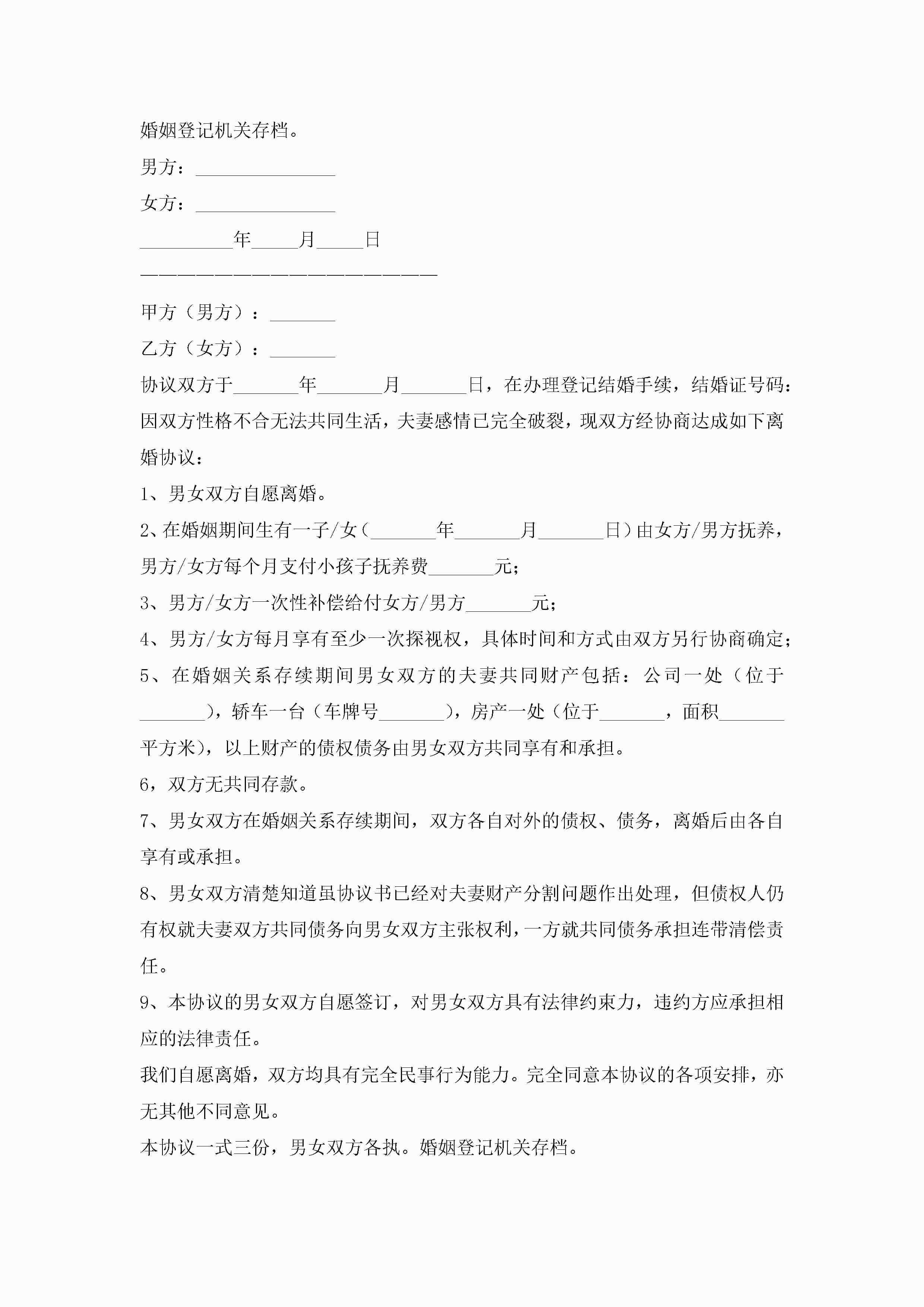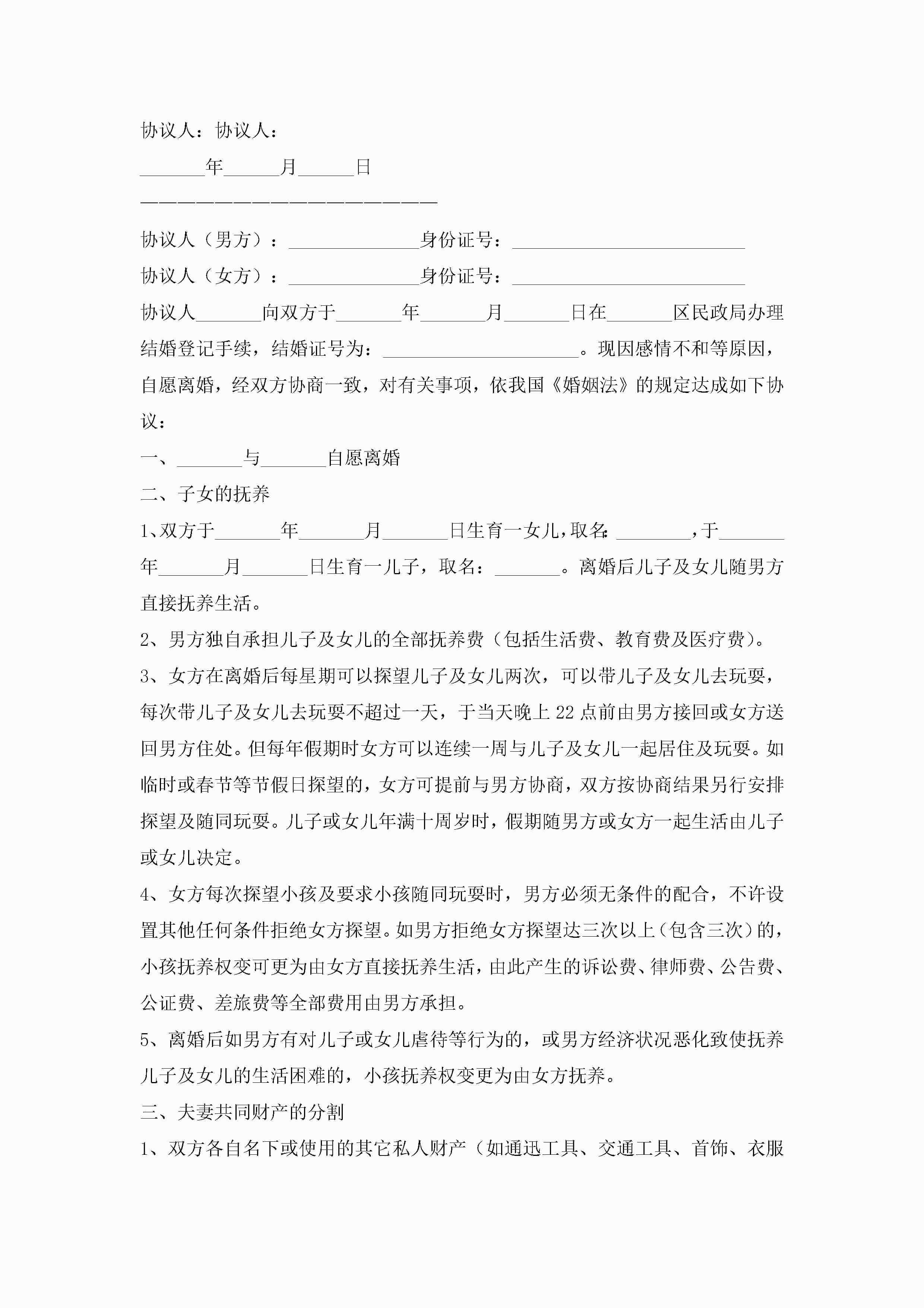 离婚协议书模板标准版(十篇)jugei3月22日 12:41更新关注202 离婚协议书模板标准版(十篇)此内容为付费资源,请付费后查看¥10.9 单篇文档限时特惠¥15个人会员开通企业会员开通立即下载无需登陆!可直接快捷下载单个模板付费资源© 版权声明THE ENDWord模板# 实用文档# 实用模板# 信函模板# 协议书 如有问题,可点击最底部“联系我们”联系客服 分享QQ空间微博QQ好友海报分享复制链接收藏