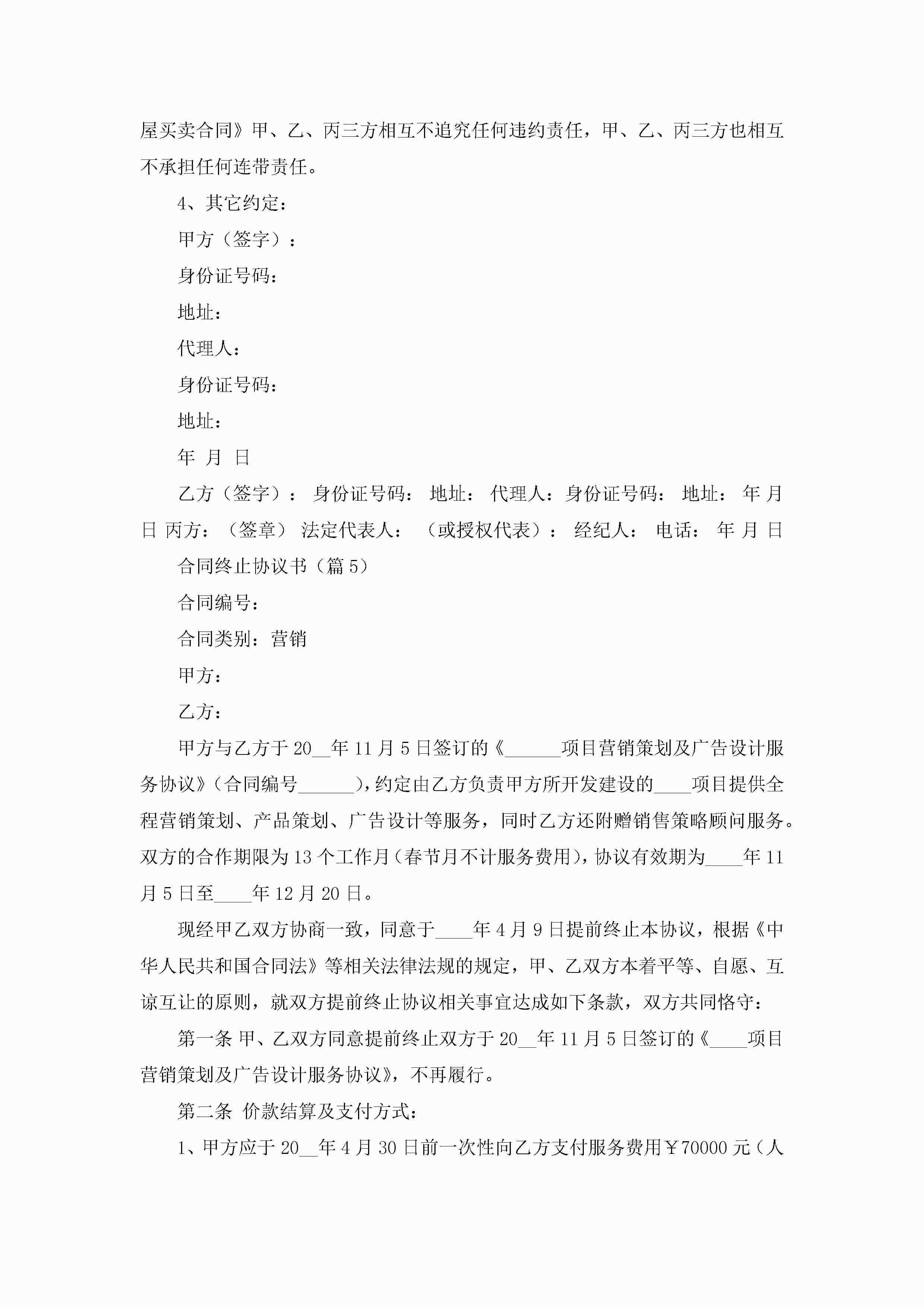 合同终止协议书(优秀11篇)jugei3月22日 12:41更新关注236 合同终止协议书(优秀11篇)此内容为付费资源,请付费后查看¥10.9 单篇文档限时特惠¥15个人会员开通企业会员开通立即下载无需登陆!可直接快捷下载单个模板付费资源© 版权声明THE ENDWord模板# 实用文档# 实用模板# 信函模板# 协议书 如有问题,可点击最底部“联系我们”联系客服 分享QQ空间微博QQ好友海报分享复制链接收藏