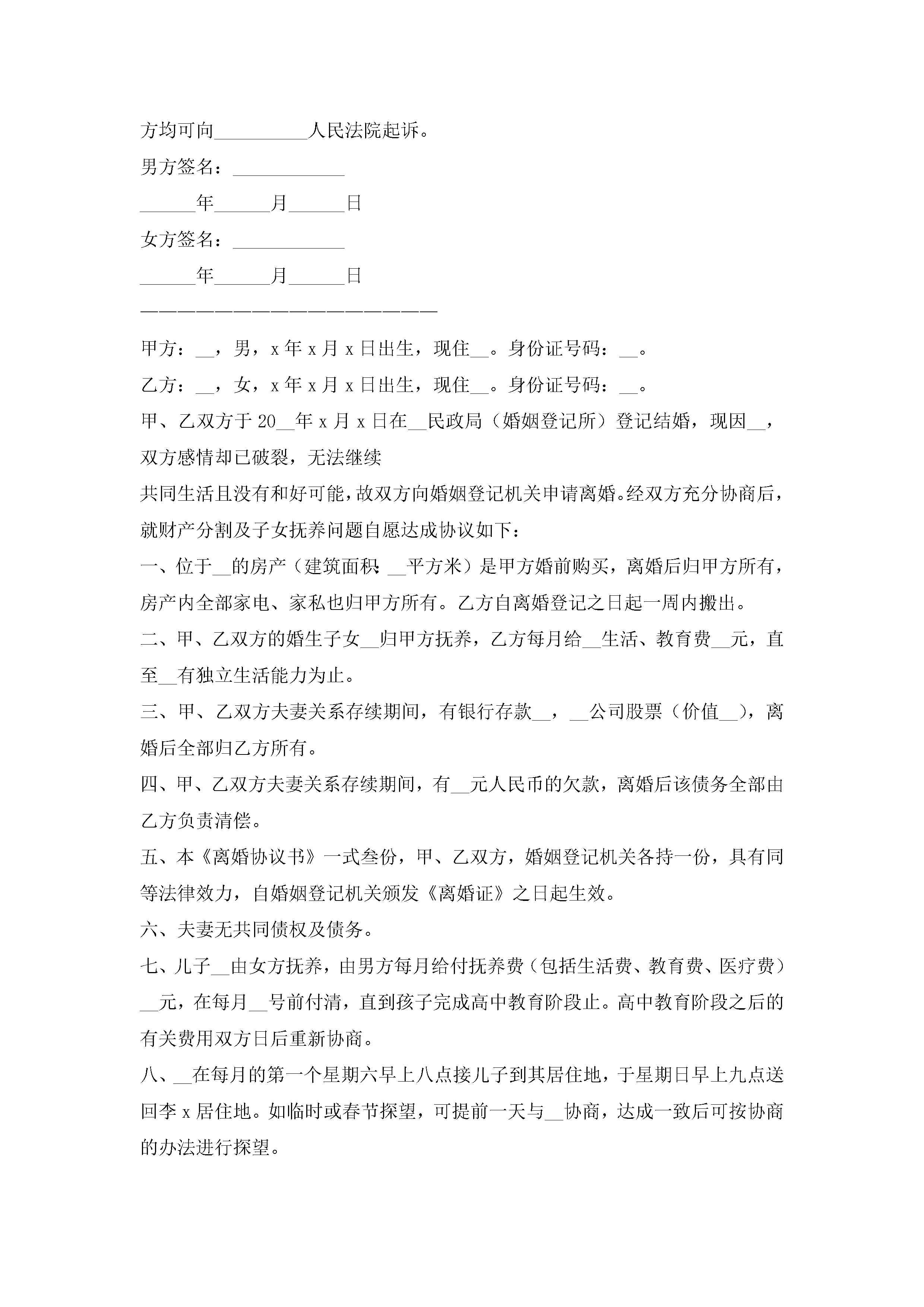 年离婚协议书怎么写【10篇】jugei3月22日 12:42更新关注280 年离婚协议书怎么写【10篇】此内容为付费资源,请付费后查看¥10.9 单篇文档限时特惠¥15个人会员开通企业会员开通立即下载无需登陆!可直接快捷下载单个模板付费资源© 版权声明THE ENDWord模板# 实用文档# 实用模板# 信函模板# 协议书 如有问题,可点击最底部“联系我们”联系客服 分享QQ空间微博QQ好友海报分享复制链接收藏