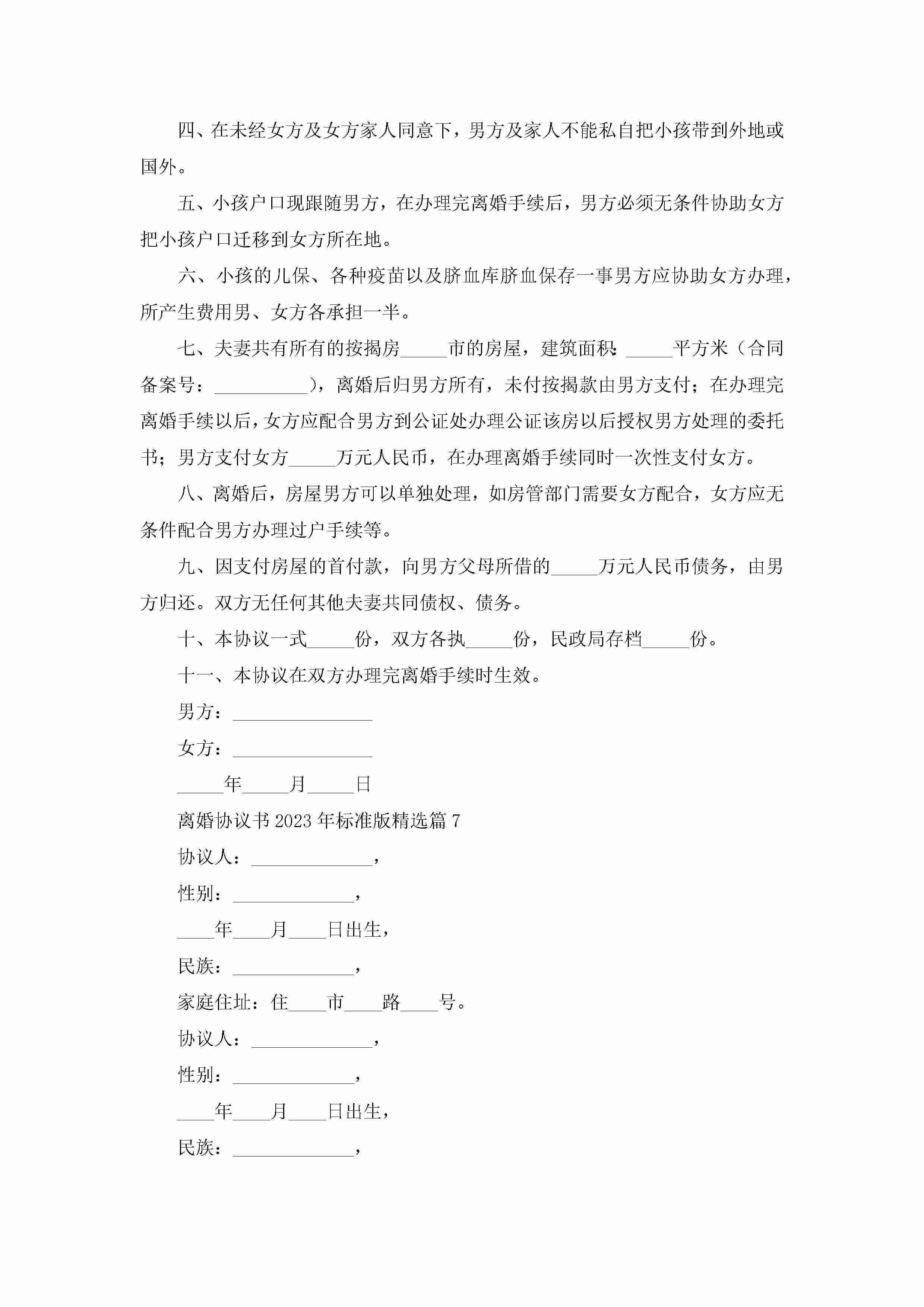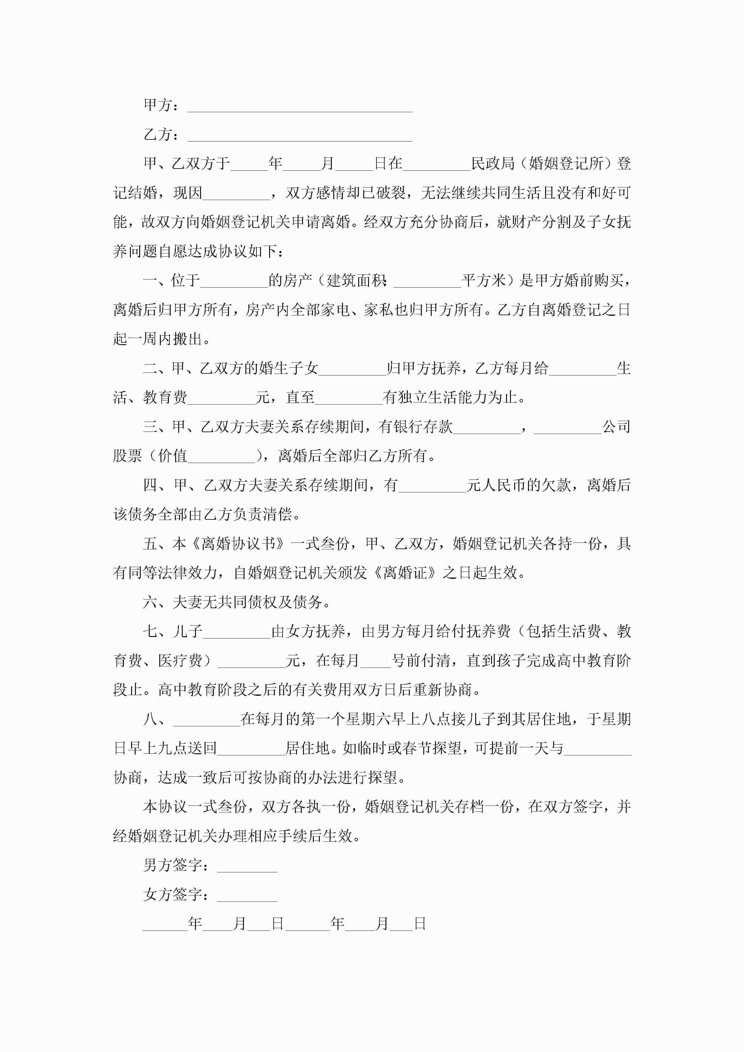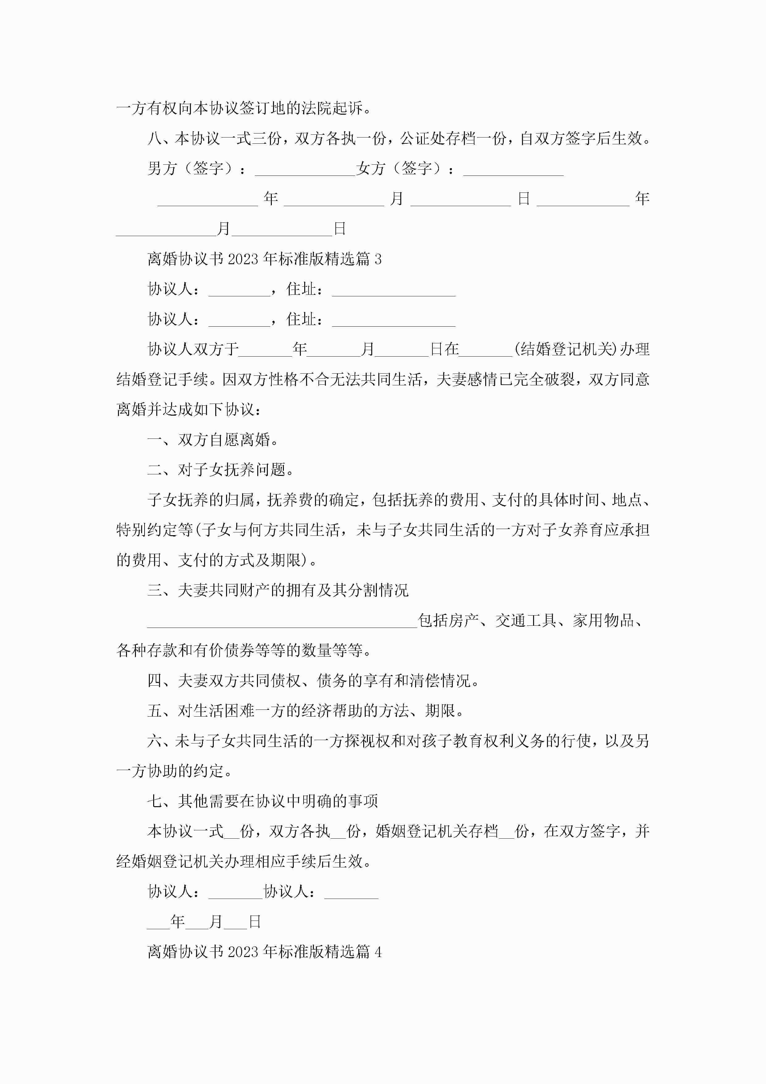离婚协议书年标准版8篇jugei3月22日 12:42更新关注237 离婚协议书年标准版8篇此内容为付费资源,请付费后查看¥10.9 单篇文档限时特惠¥15个人会员开通企业会员开通立即下载无需登陆!可直接快捷下载单个模板付费资源© 版权声明THE ENDWord模板# 实用文档# 实用模板# 信函模板# 协议书 如有问题,可点击最底部“联系我们”联系客服 分享QQ空间微博QQ好友海报分享复制链接收藏