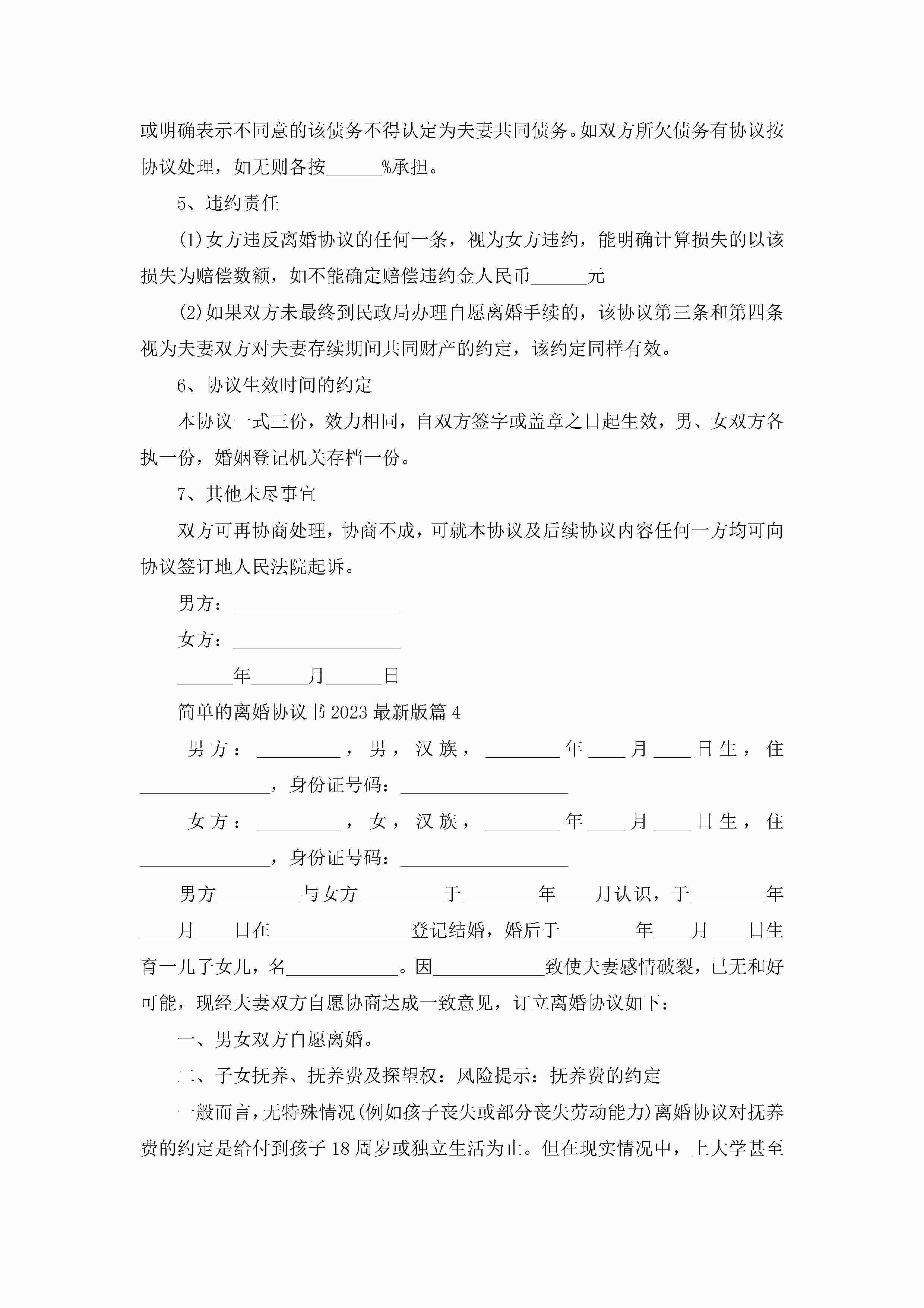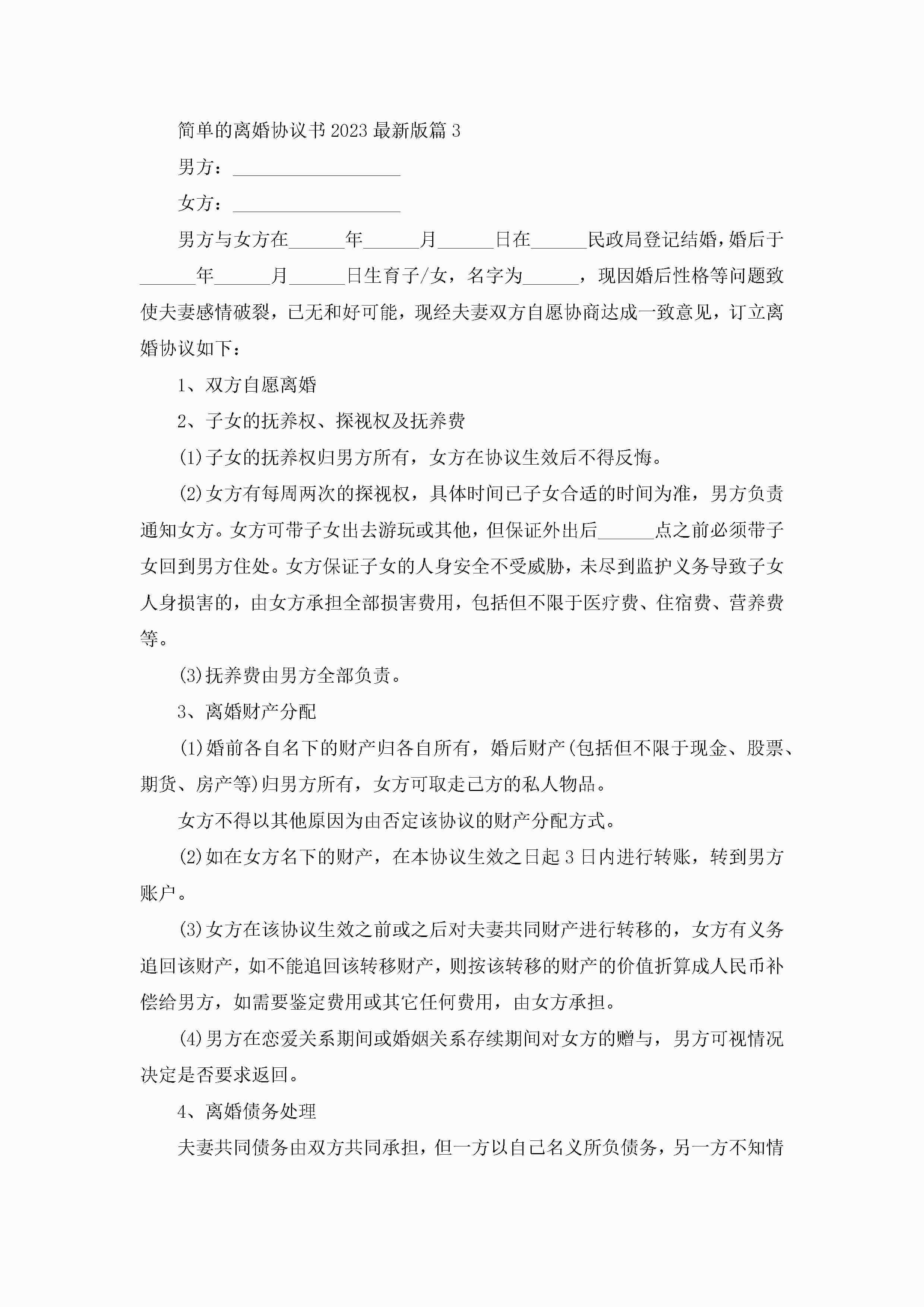 简单的离婚协议书最新版7篇jugei3月22日 12:42更新关注225 简单的离婚协议书最新版7篇此内容为付费资源,请付费后查看¥10.9 单篇文档限时特惠¥15个人会员开通企业会员开通立即下载无需登陆!可直接快捷下载单个模板付费资源© 版权声明THE ENDWord模板# 实用文档# 实用模板# 信函模板# 协议书 如有问题,可点击最底部“联系我们”联系客服 分享QQ空间微博QQ好友海报分享复制链接收藏
