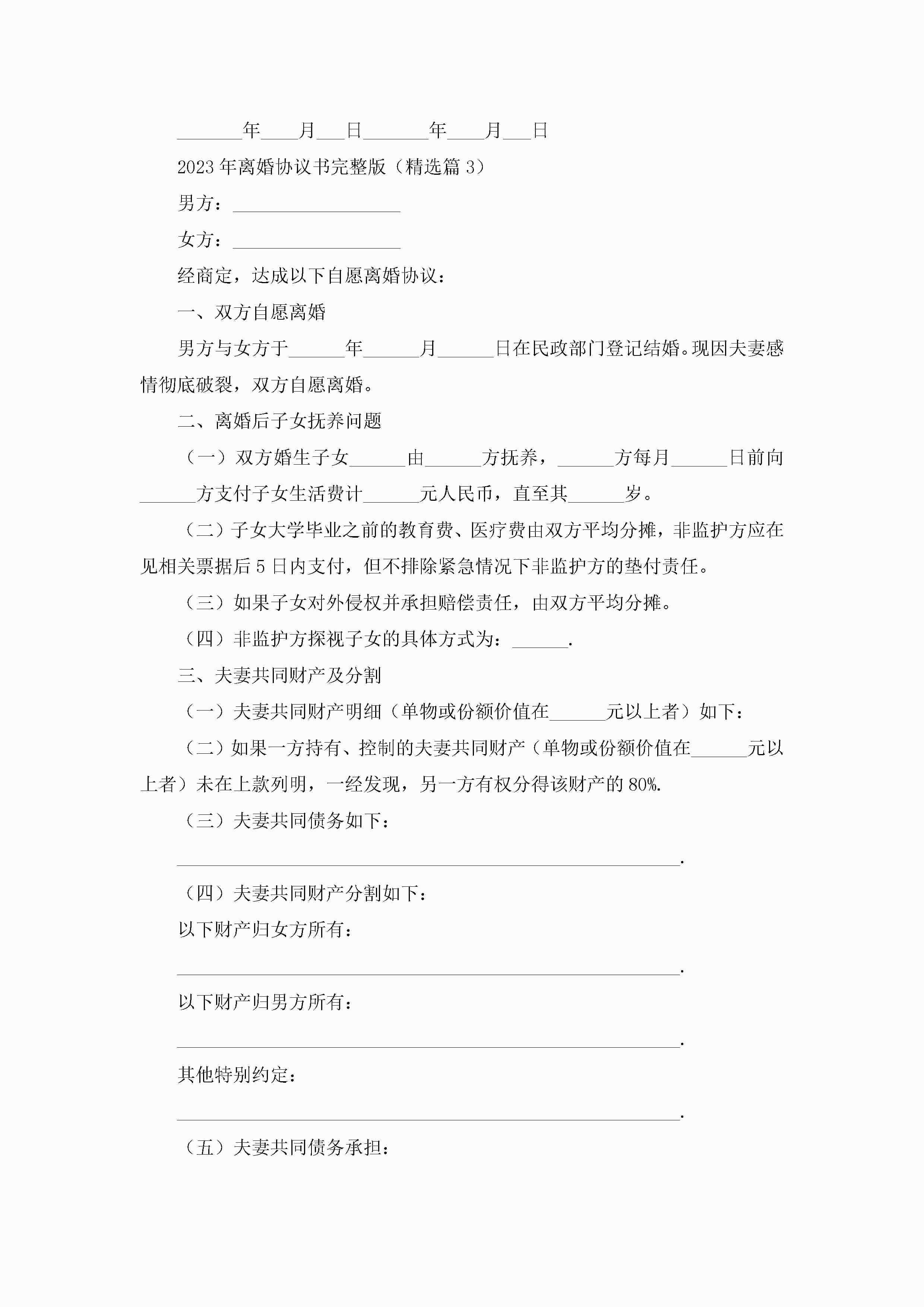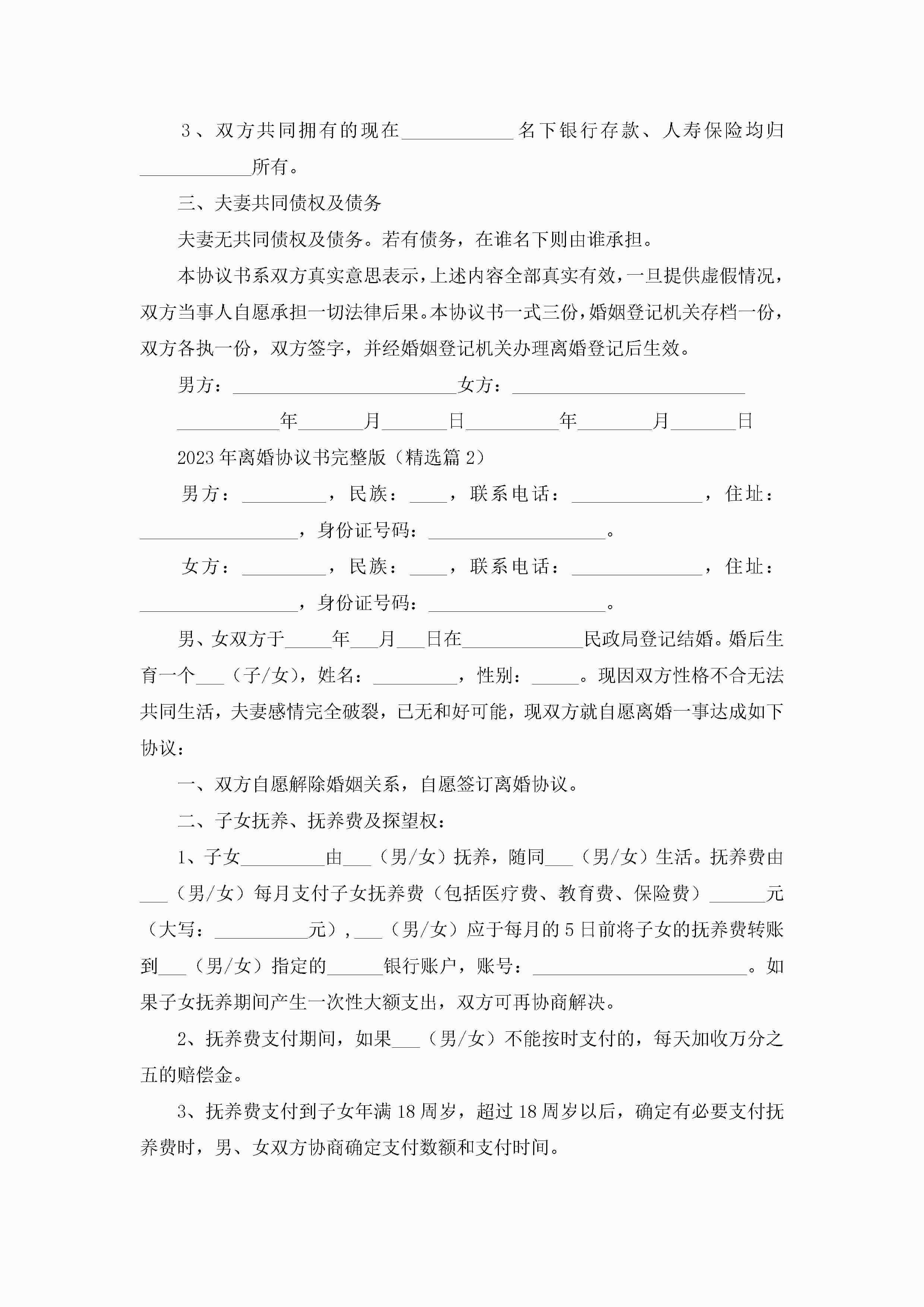 年离婚协议书完整版七篇jugei3月22日 12:42更新关注196 年离婚协议书完整版七篇此内容为付费资源,请付费后查看¥10.9 单篇文档限时特惠¥15个人会员开通企业会员开通立即下载无需登陆!可直接快捷下载单个模板付费资源© 版权声明THE ENDWord模板# 实用文档# 实用模板# 信函模板# 协议书 如有问题,可点击最底部“联系我们”联系客服 分享QQ空间微博QQ好友海报分享复制链接收藏