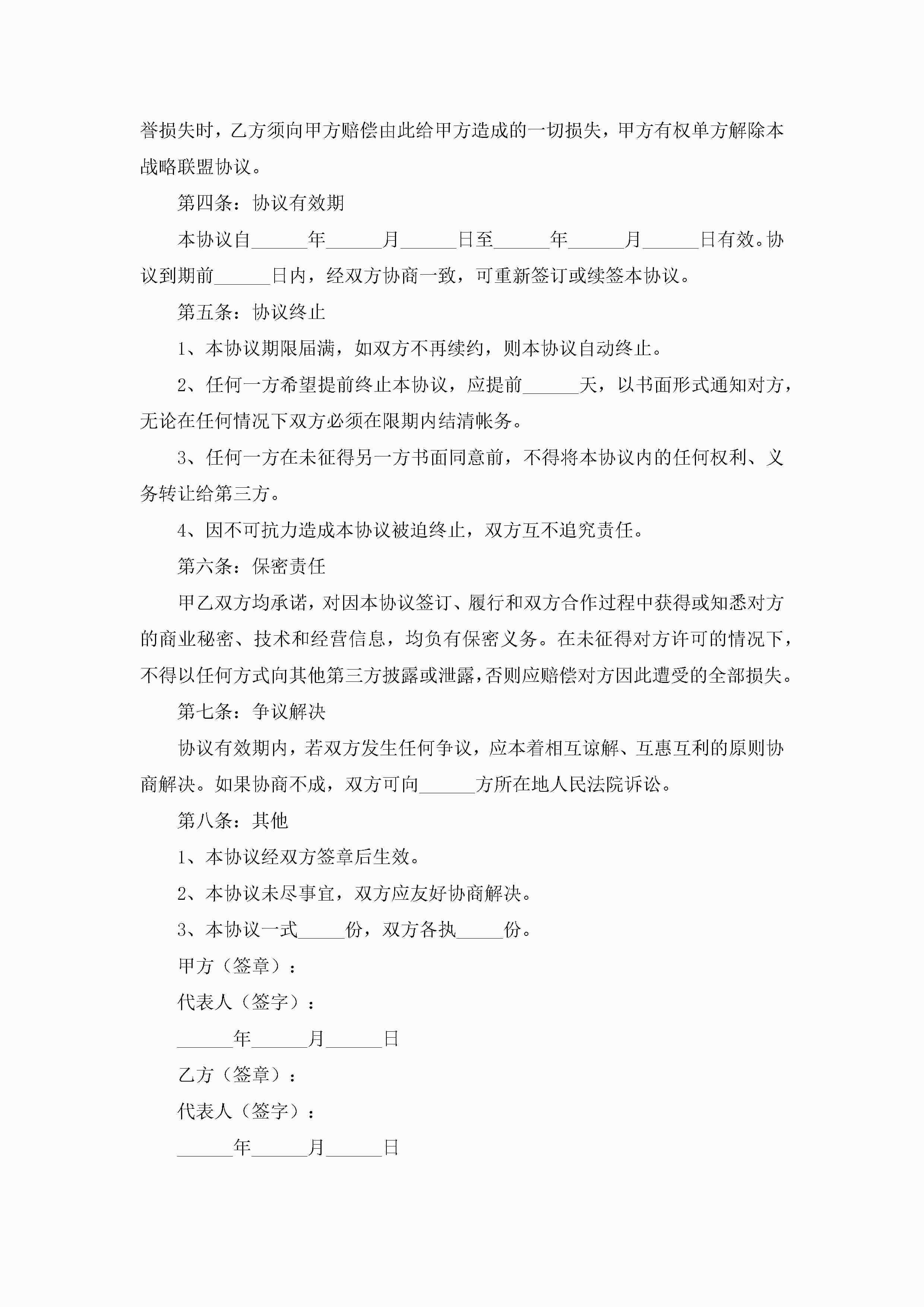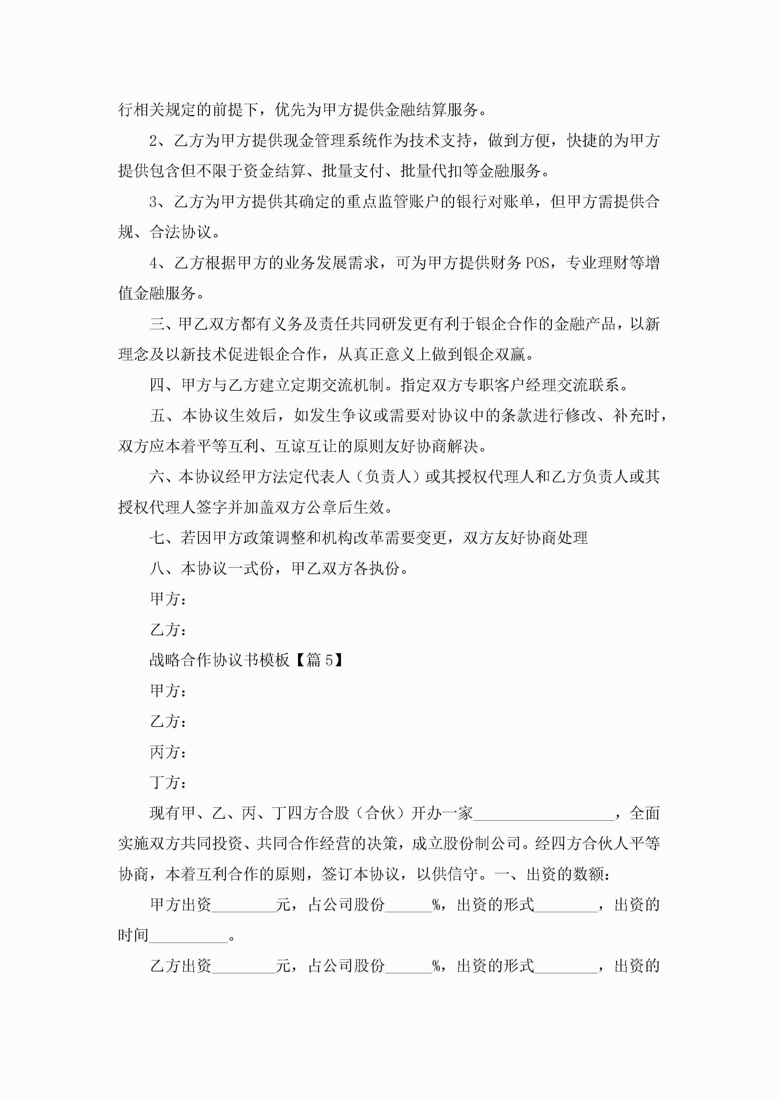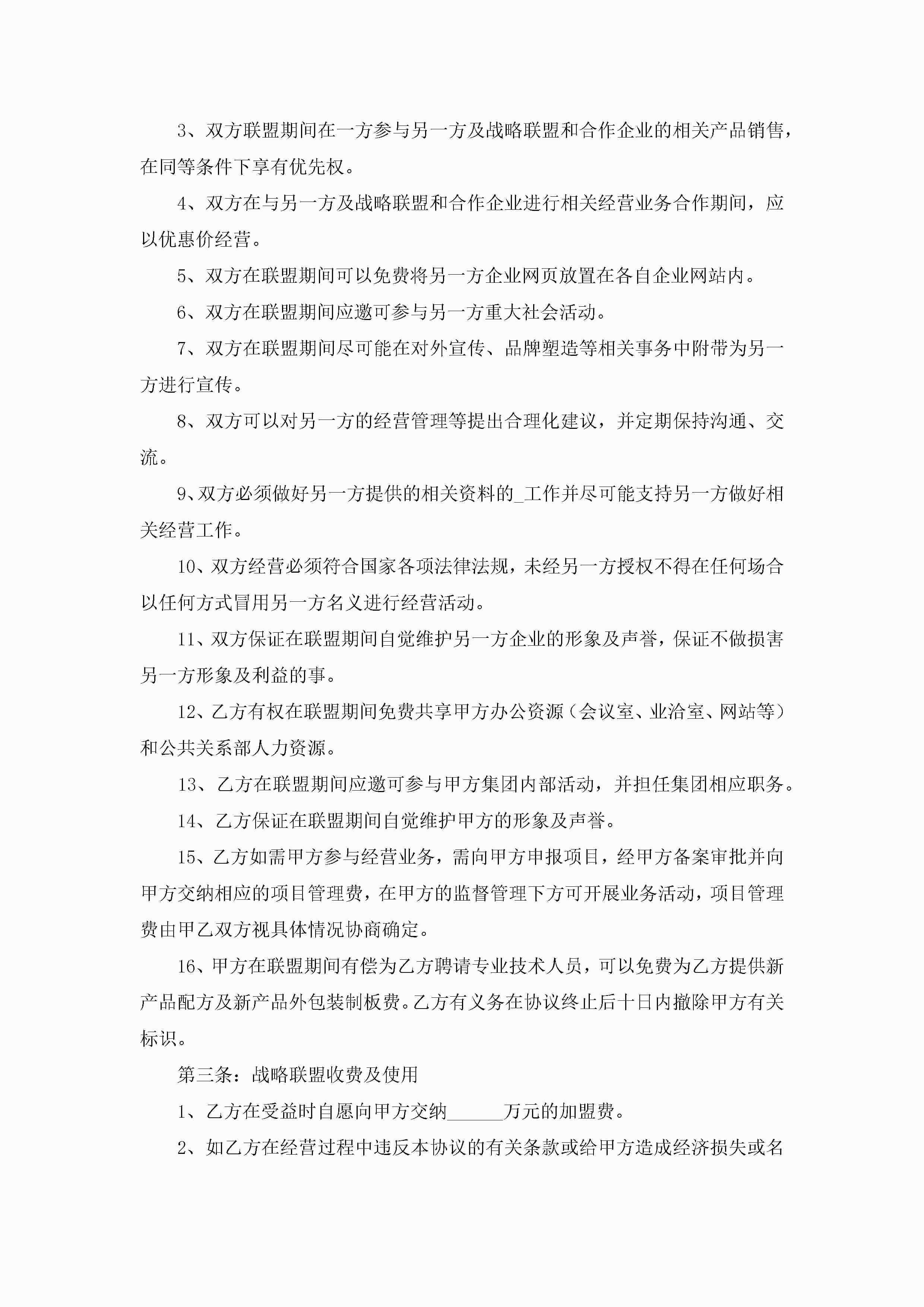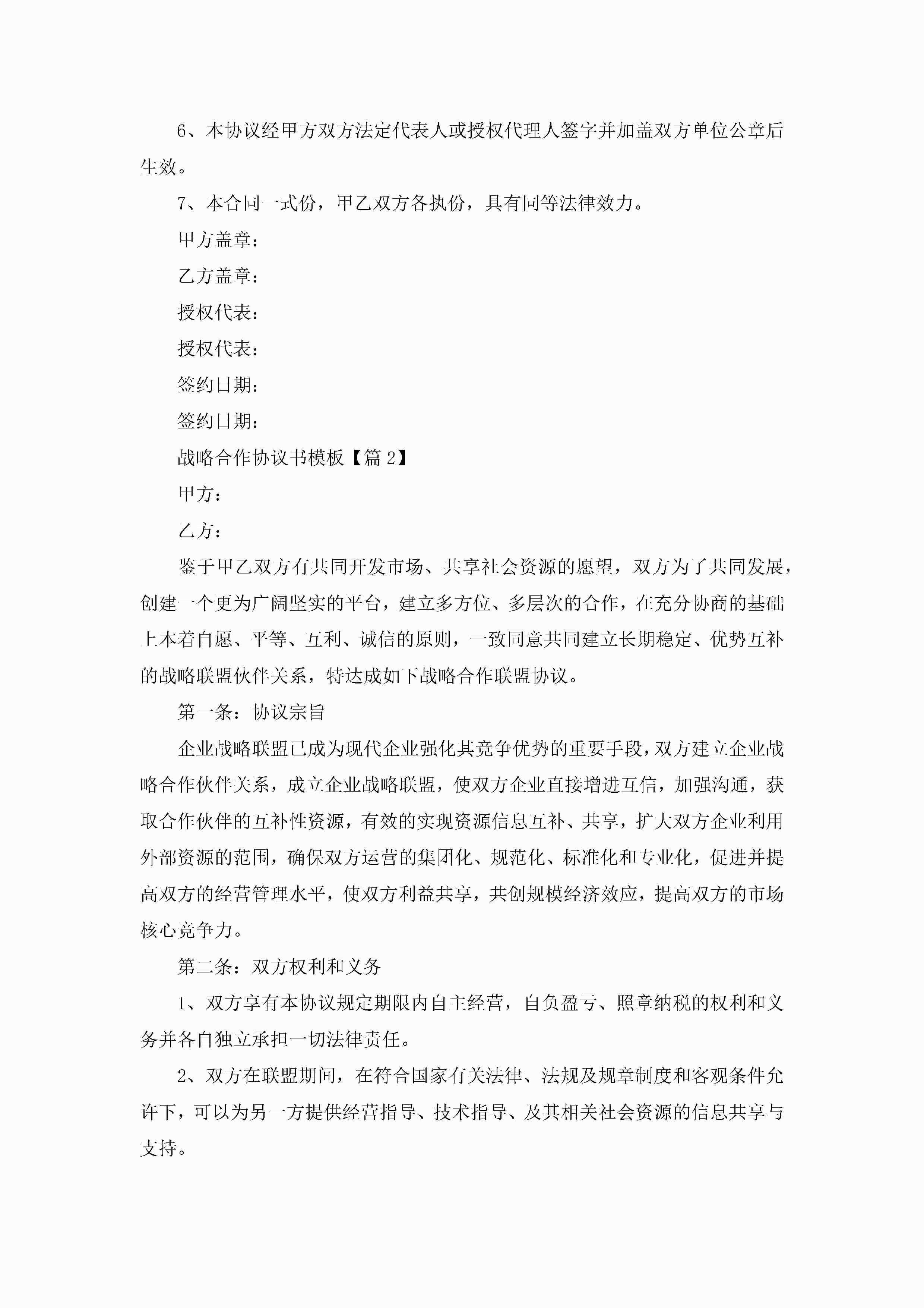 战略合作协议书模板(优秀8篇)jugei3月22日 12:42更新关注198 战略合作协议书模板(优秀8篇)此内容为付费资源,请付费后查看¥10.9 单篇文档限时特惠¥15个人会员开通企业会员开通立即下载无需登陆!可直接快捷下载单个模板付费资源© 版权声明THE ENDWord模板# 实用文档# 实用模板# 信函模板# 协议书 如有问题,可点击最底部“联系我们”联系客服 分享QQ空间微博QQ好友海报分享复制链接收藏