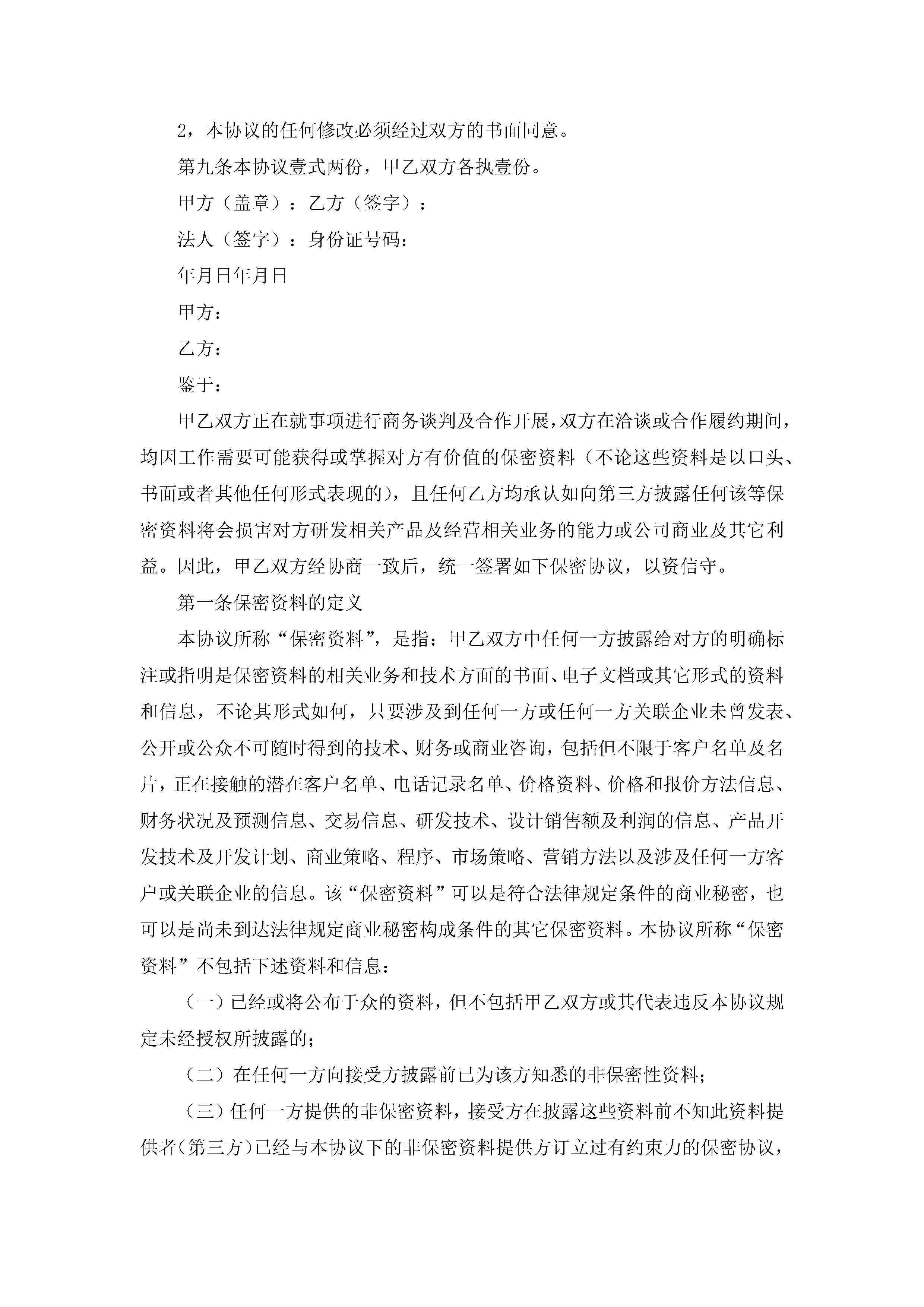 保密协议书范本(通用7篇)jugei3月22日 12:42更新关注243 保密协议书范本(通用7篇)此内容为付费资源,请付费后查看¥10.9 单篇文档限时特惠¥15个人会员开通企业会员开通立即下载无需登陆!可直接快捷下载单个模板付费资源© 版权声明THE ENDWord模板# 实用文档# 实用模板# 信函模板# 协议书 如有问题,可点击最底部“联系我们”联系客服 分享QQ空间微博QQ好友海报分享复制链接收藏