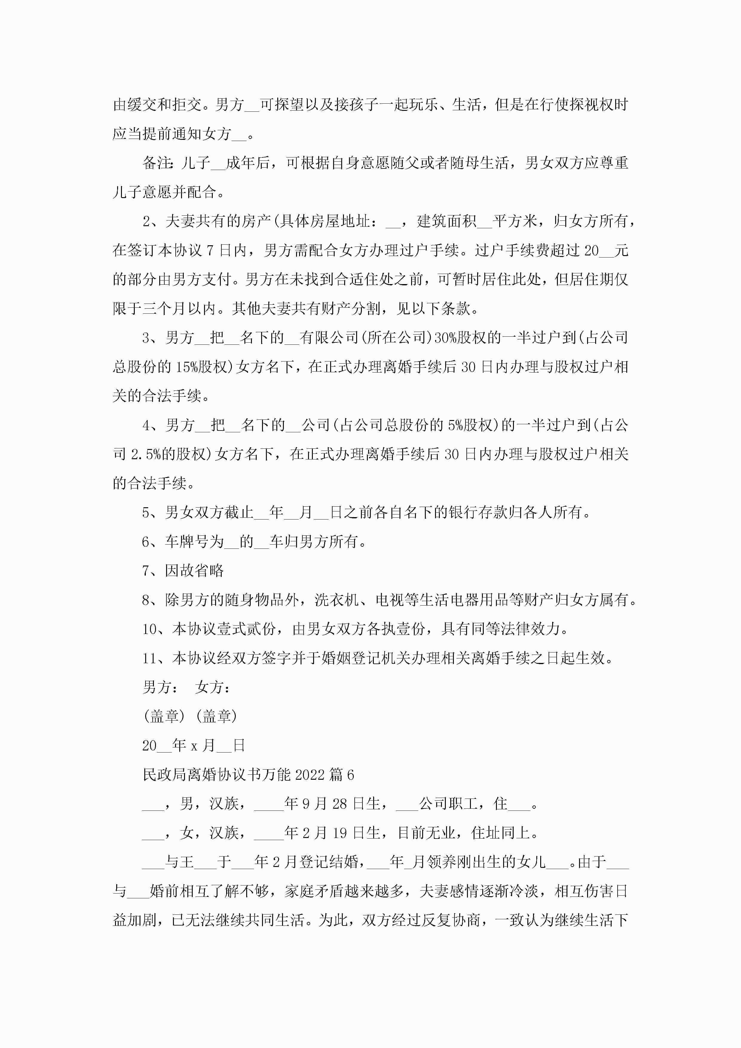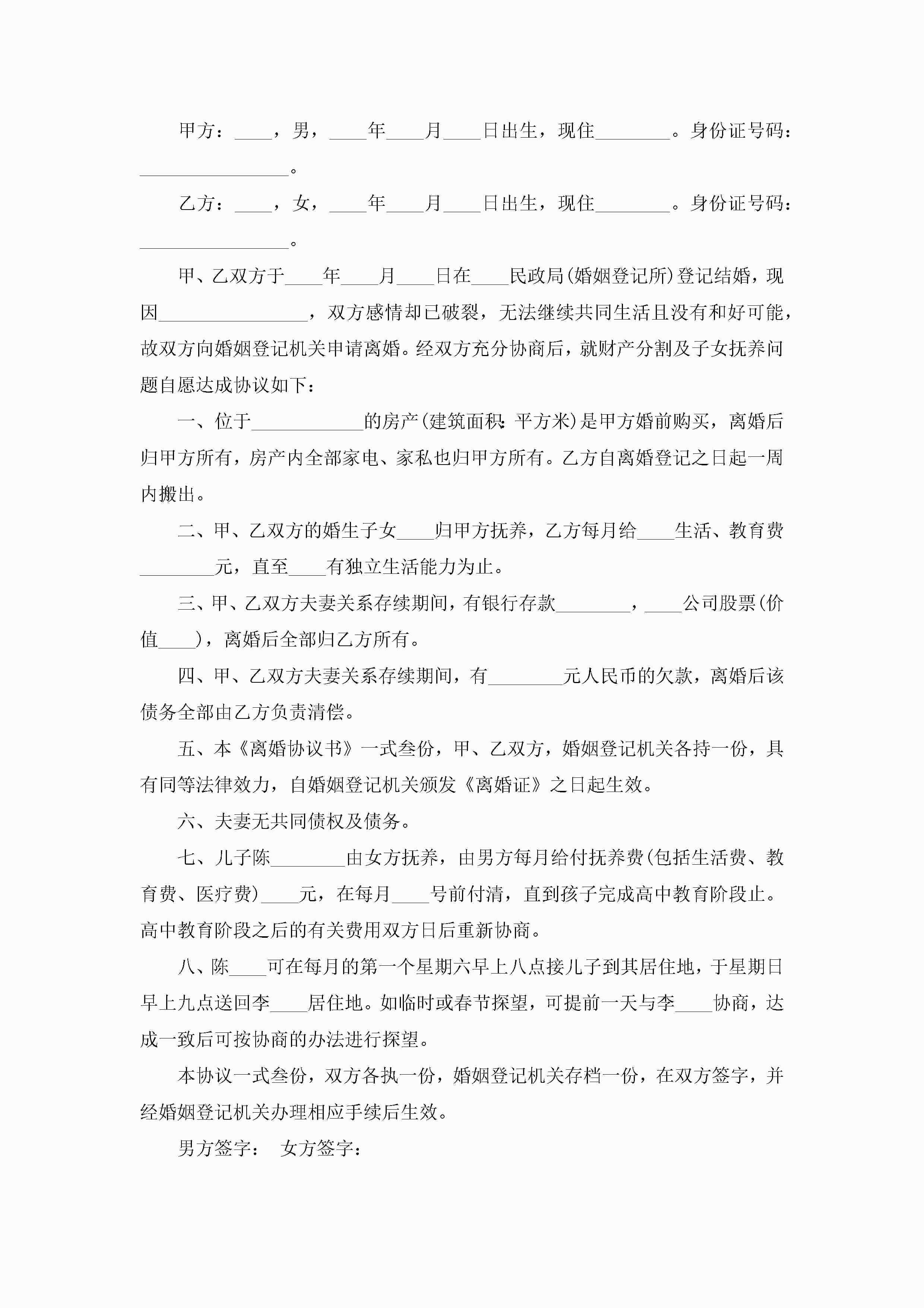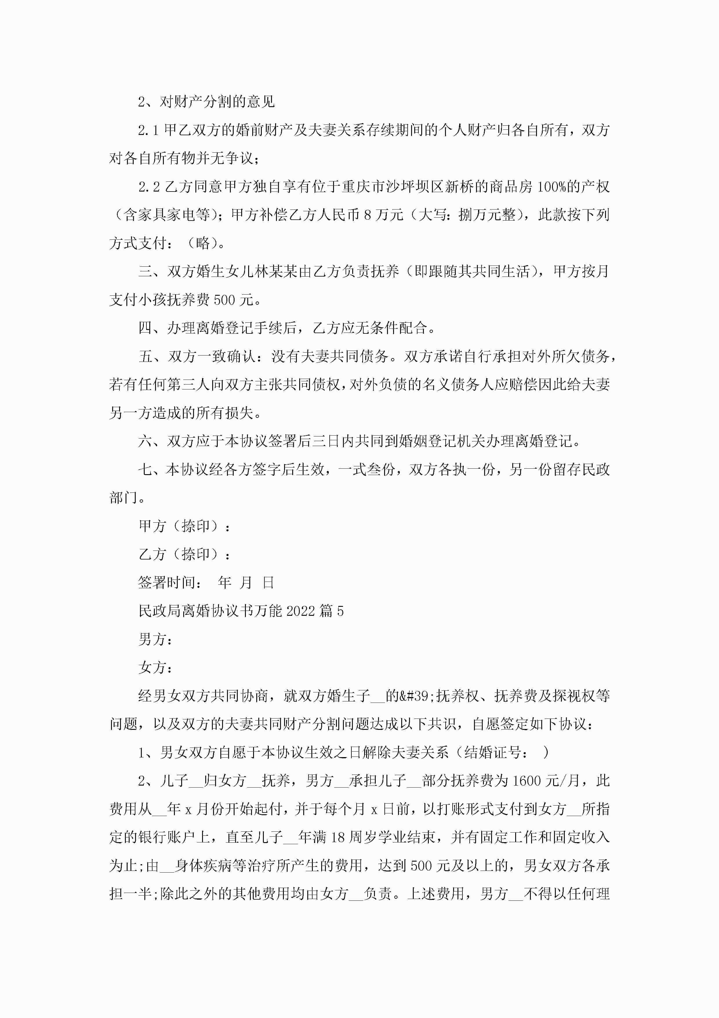 民政局离婚协议书万能(精选7篇)jugei3月22日 12:42更新关注198 民政局离婚协议书万能(精选7篇)此内容为付费资源,请付费后查看¥10.9 单篇文档限时特惠¥15个人会员开通企业会员开通立即下载无需登陆!可直接快捷下载单个模板付费资源© 版权声明THE ENDWord模板# 实用文档# 实用模板# 信函模板# 协议书 如有问题,可点击最底部“联系我们”联系客服 分享QQ空间微博QQ好友海报分享复制链接收藏