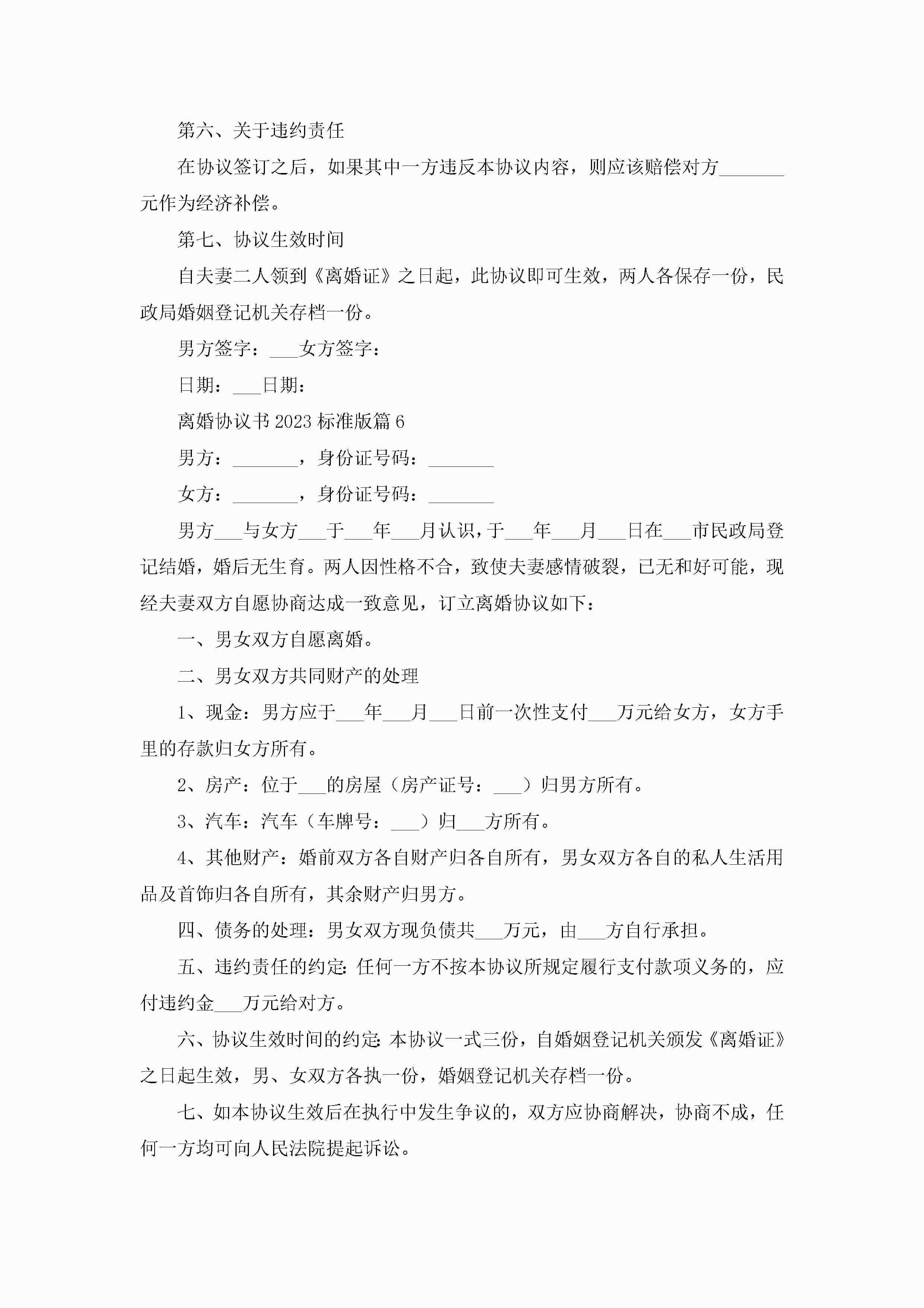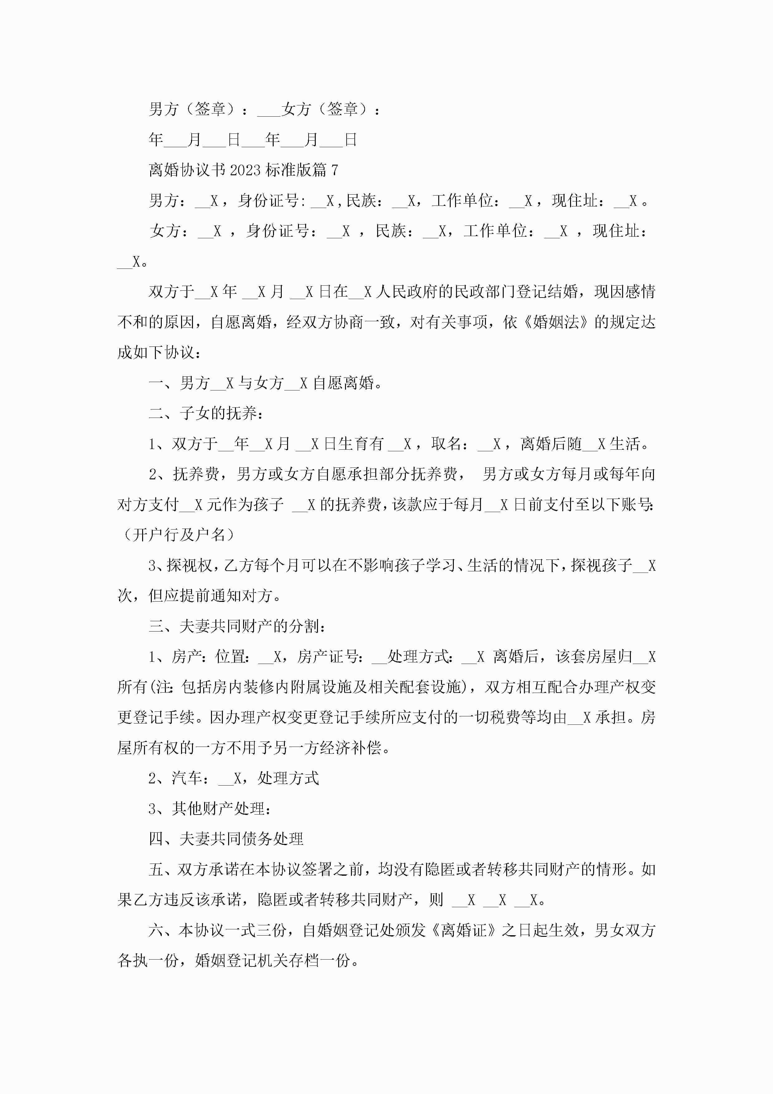 离婚协议书标准版(十篇)jugei3月22日 12:42更新关注215 离婚协议书标准版(十篇)此内容为付费资源,请付费后查看¥10.9 单篇文档限时特惠¥15个人会员开通企业会员开通立即下载无需登陆!可直接快捷下载单个模板付费资源© 版权声明THE ENDWord模板# 实用文档# 实用模板# 信函模板# 协议书 如有问题,可点击最底部“联系我们”联系客服 分享QQ空间微博QQ好友海报分享复制链接收藏