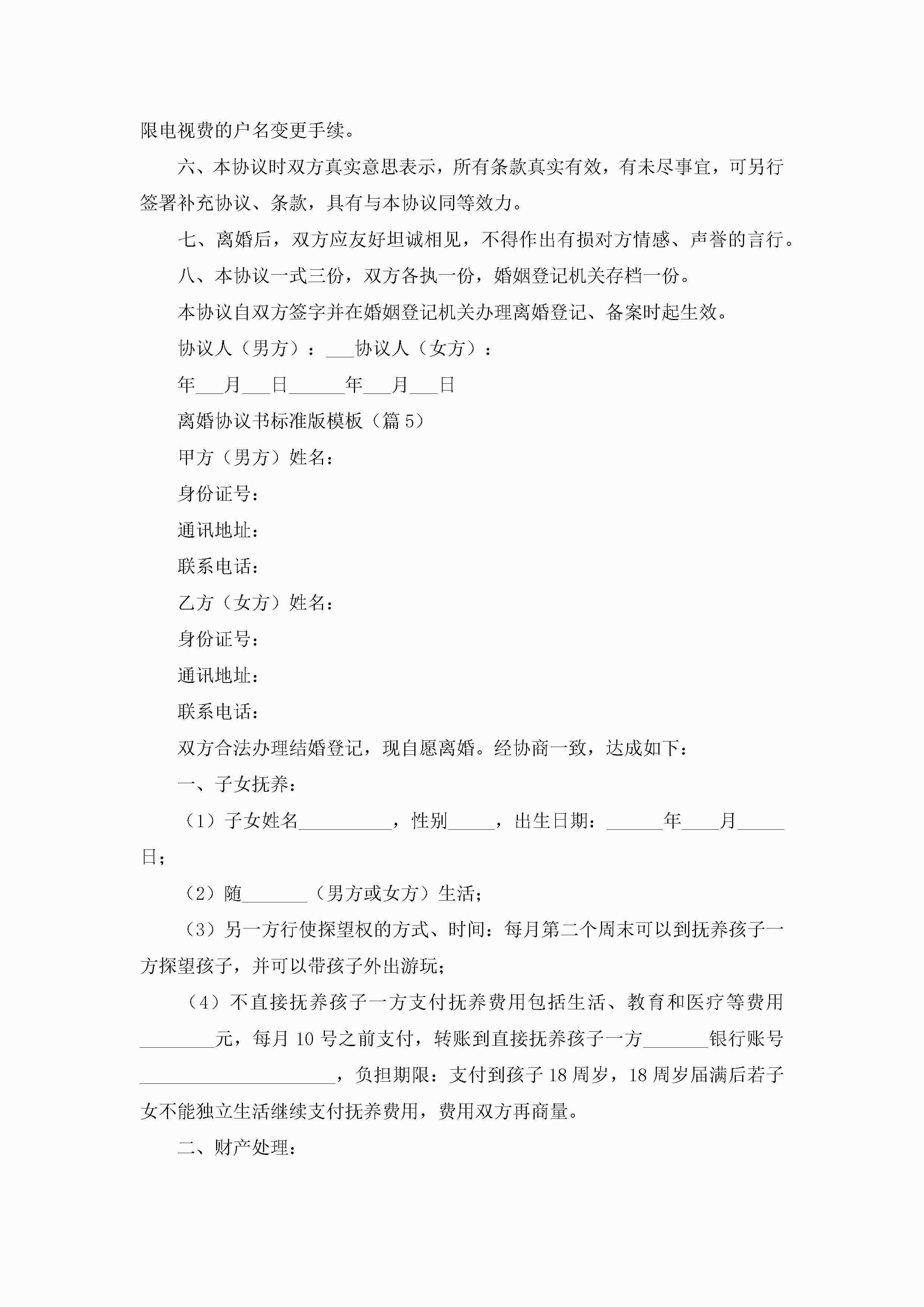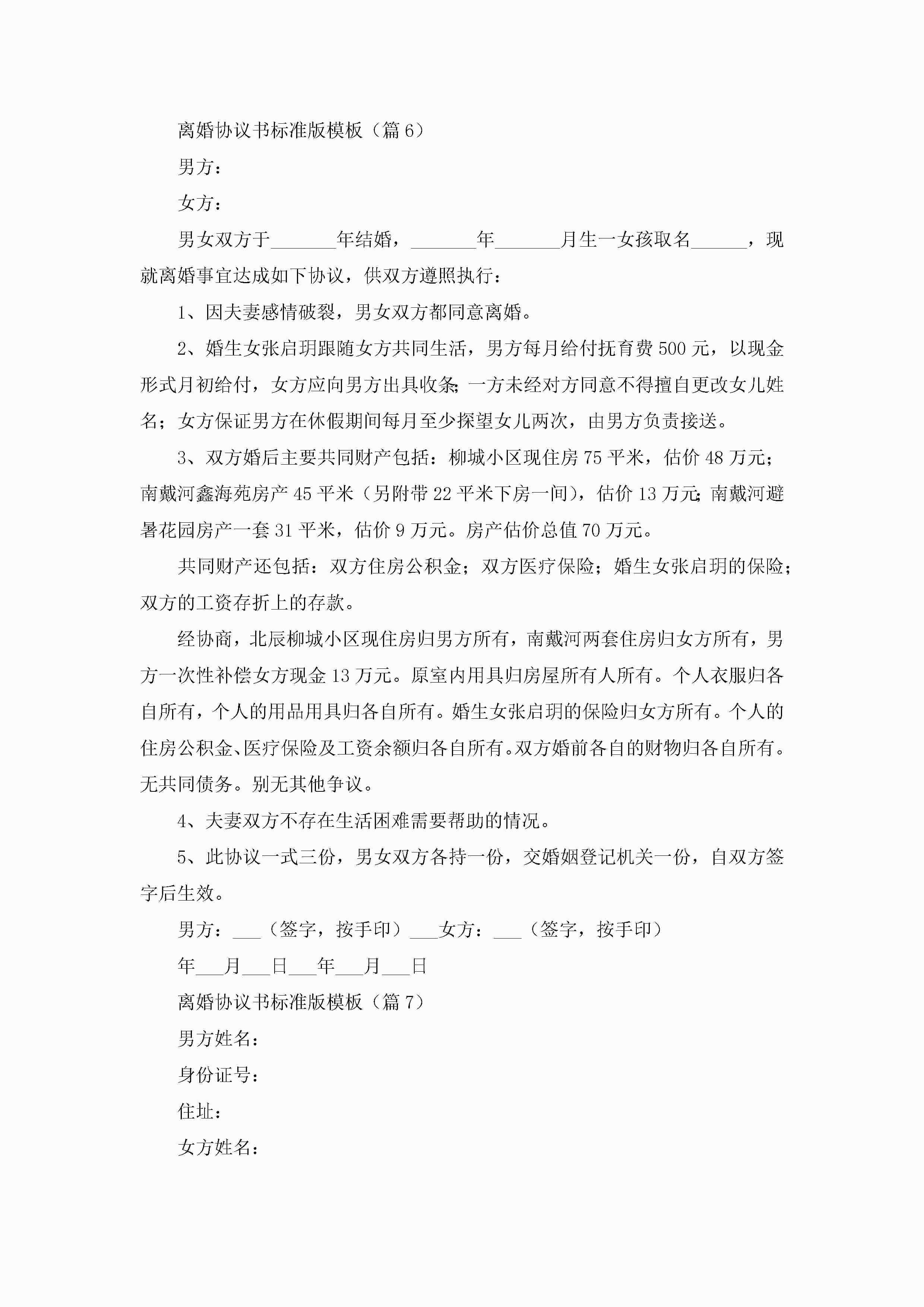 离婚协议书标准版模板(10篇)jugei3月22日 12:42更新关注278 离婚协议书标准版模板(10篇)此内容为付费资源,请付费后查看¥10.9 单篇文档限时特惠¥15个人会员开通企业会员开通立即下载无需登陆!可直接快捷下载单个模板付费资源© 版权声明THE ENDWord模板# 实用文档# 实用模板# 信函模板# 协议书 如有问题,可点击最底部“联系我们”联系客服 分享QQ空间微博QQ好友海报分享复制链接收藏