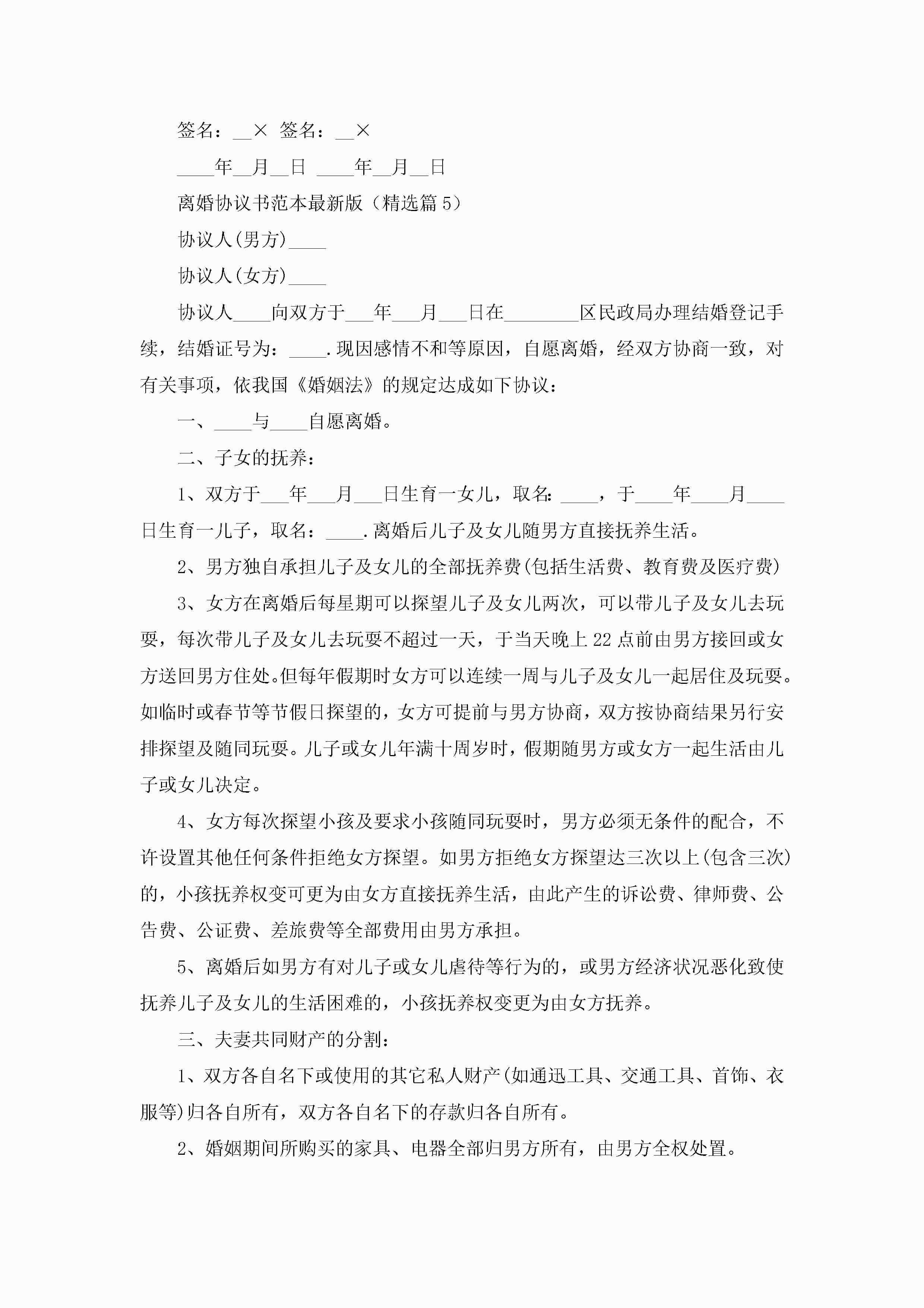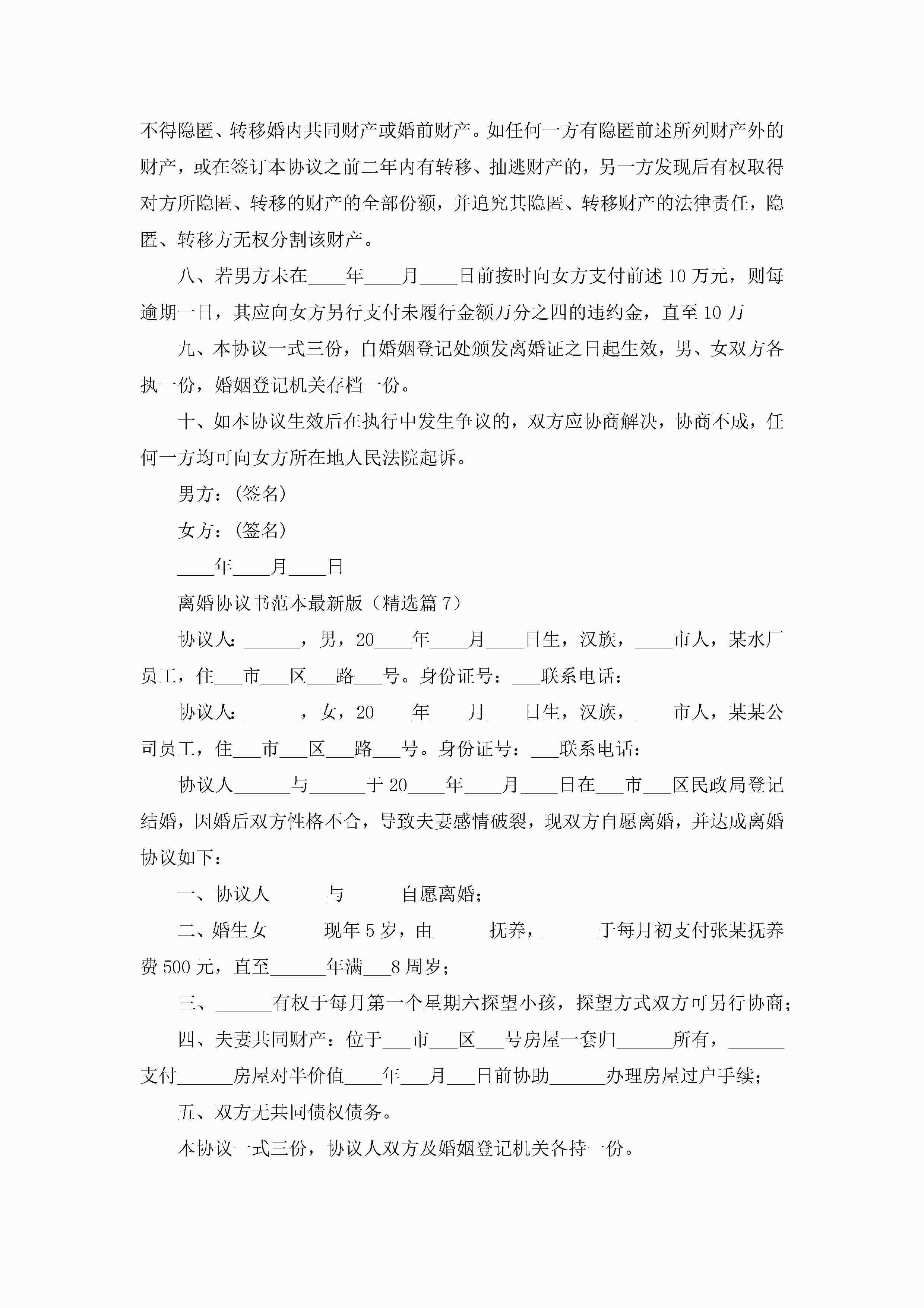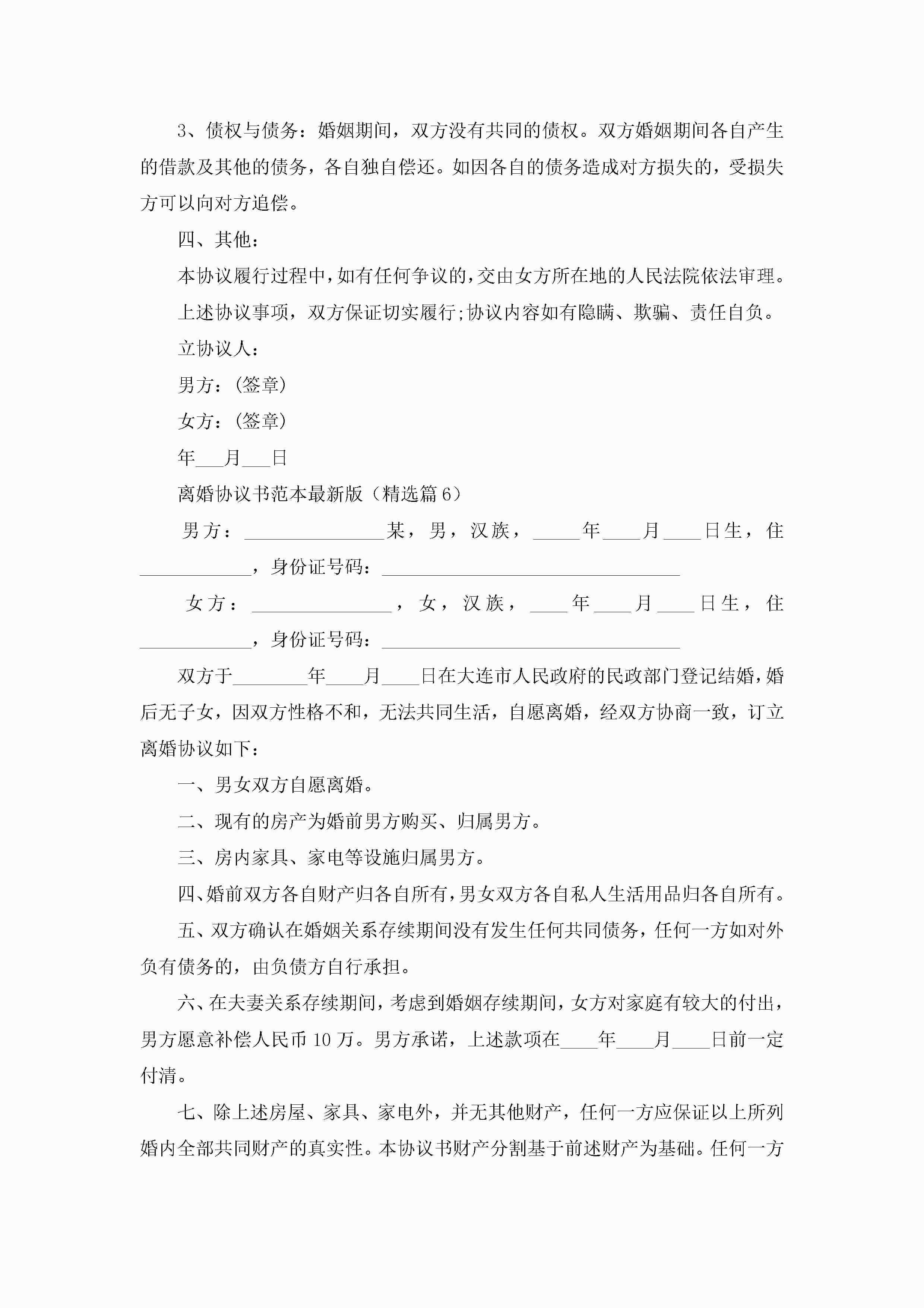 离婚协议书范本最新版(精选10篇)jugei3月22日 12:42更新关注200 离婚协议书范本最新版(精选10篇)此内容为付费资源,请付费后查看¥10.9 单篇文档限时特惠¥15个人会员开通企业会员开通立即下载无需登陆!可直接快捷下载单个模板付费资源© 版权声明THE ENDWord模板# 实用文档# 实用模板# 信函模板# 协议书 如有问题,可点击最底部“联系我们”联系客服 分享QQ空间微博QQ好友海报分享复制链接收藏