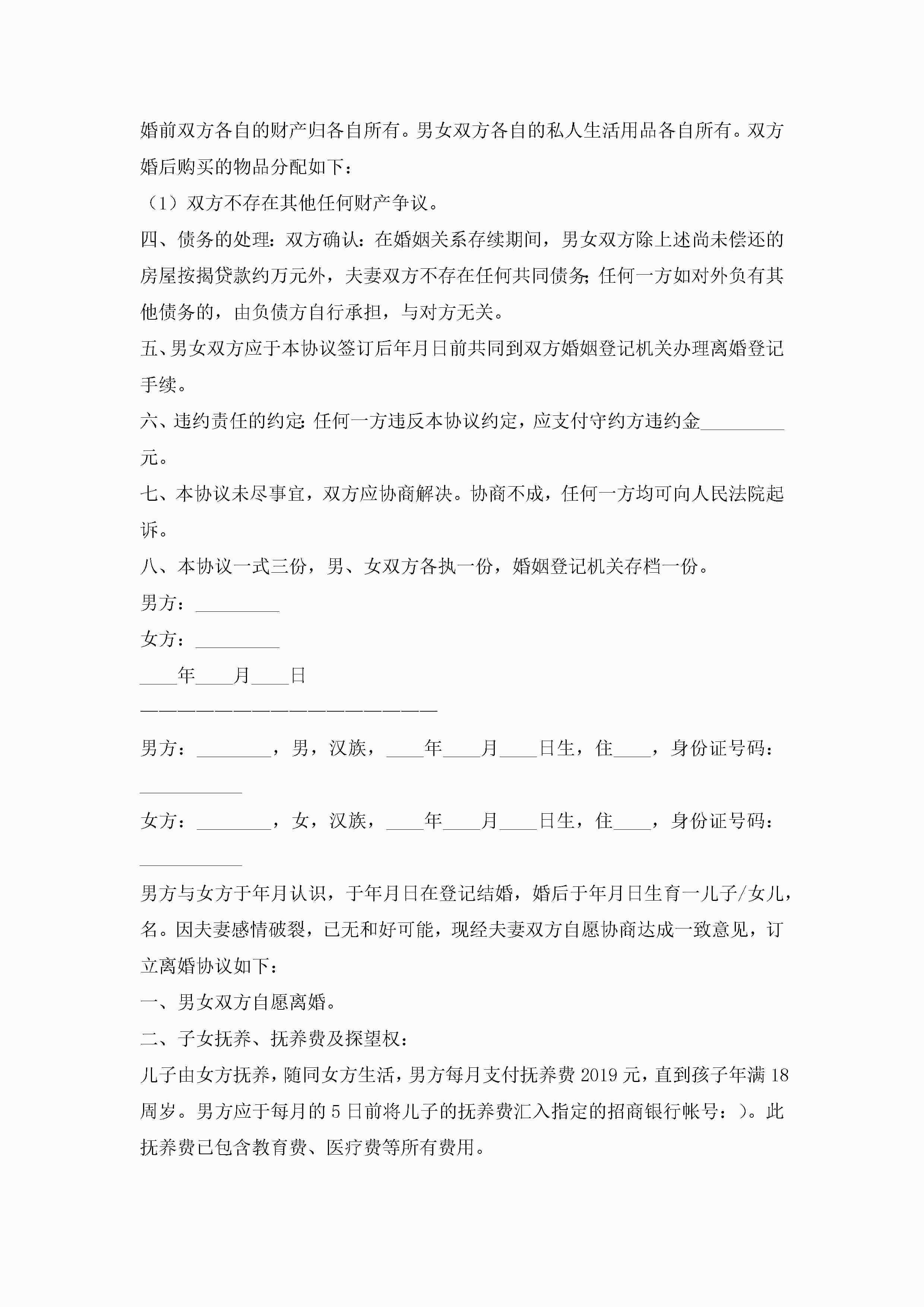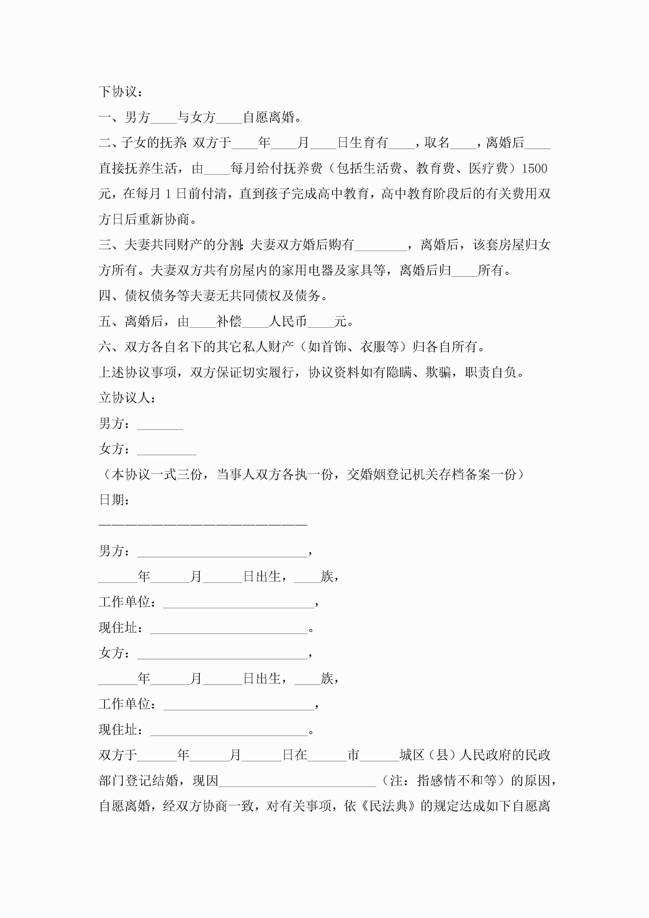 最新离婚协议书正规范本(精选10篇)jugei3月22日 12:42更新关注195 最新离婚协议书正规范本(精选10篇)此内容为付费资源,请付费后查看¥10.9 单篇文档限时特惠¥15个人会员开通企业会员开通立即下载无需登陆!可直接快捷下载单个模板付费资源© 版权声明THE ENDWord模板# 实用文档# 实用模板# 信函模板# 协议书 如有问题,可点击最底部“联系我们”联系客服 分享QQ空间微博QQ好友海报分享复制链接收藏
