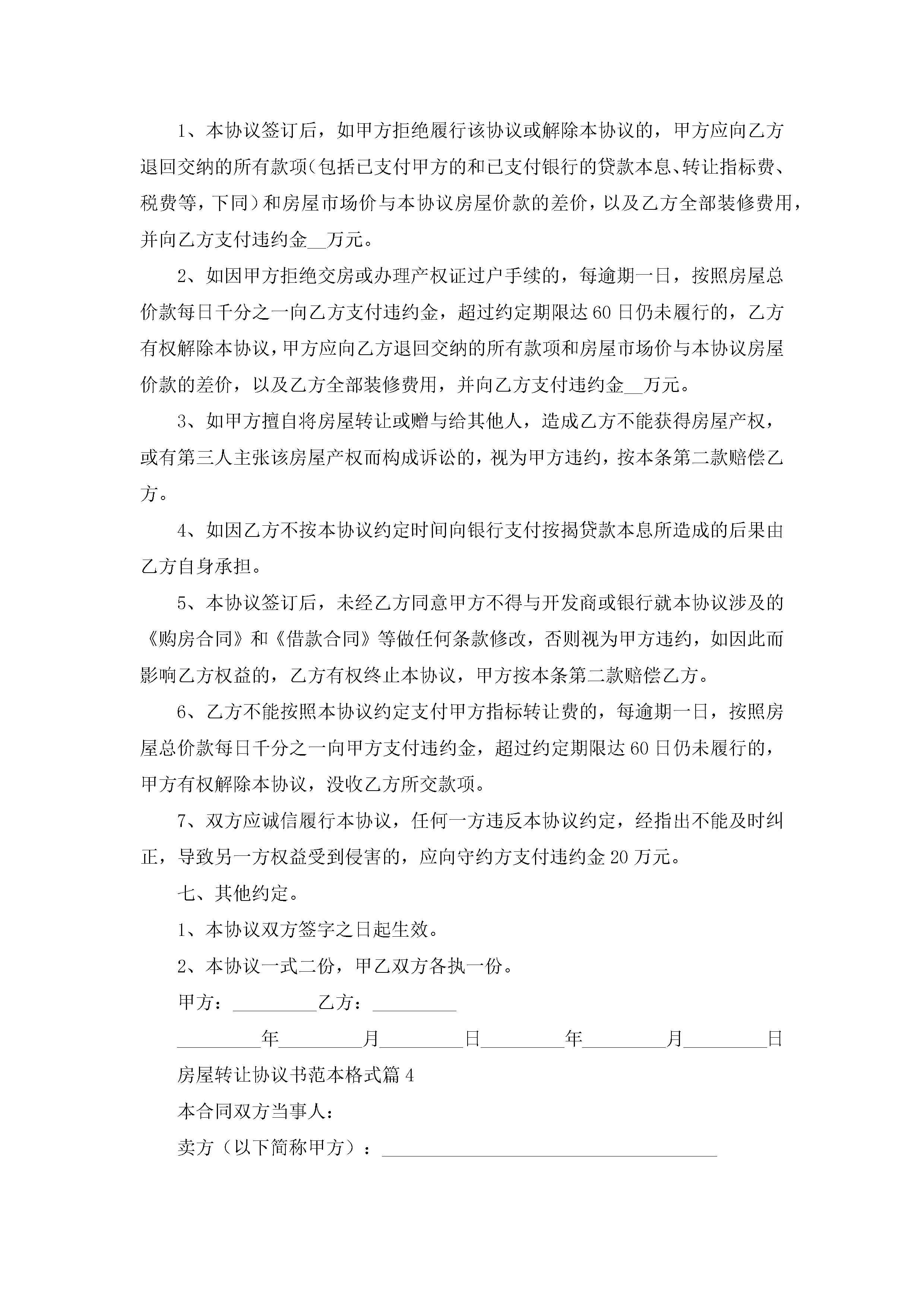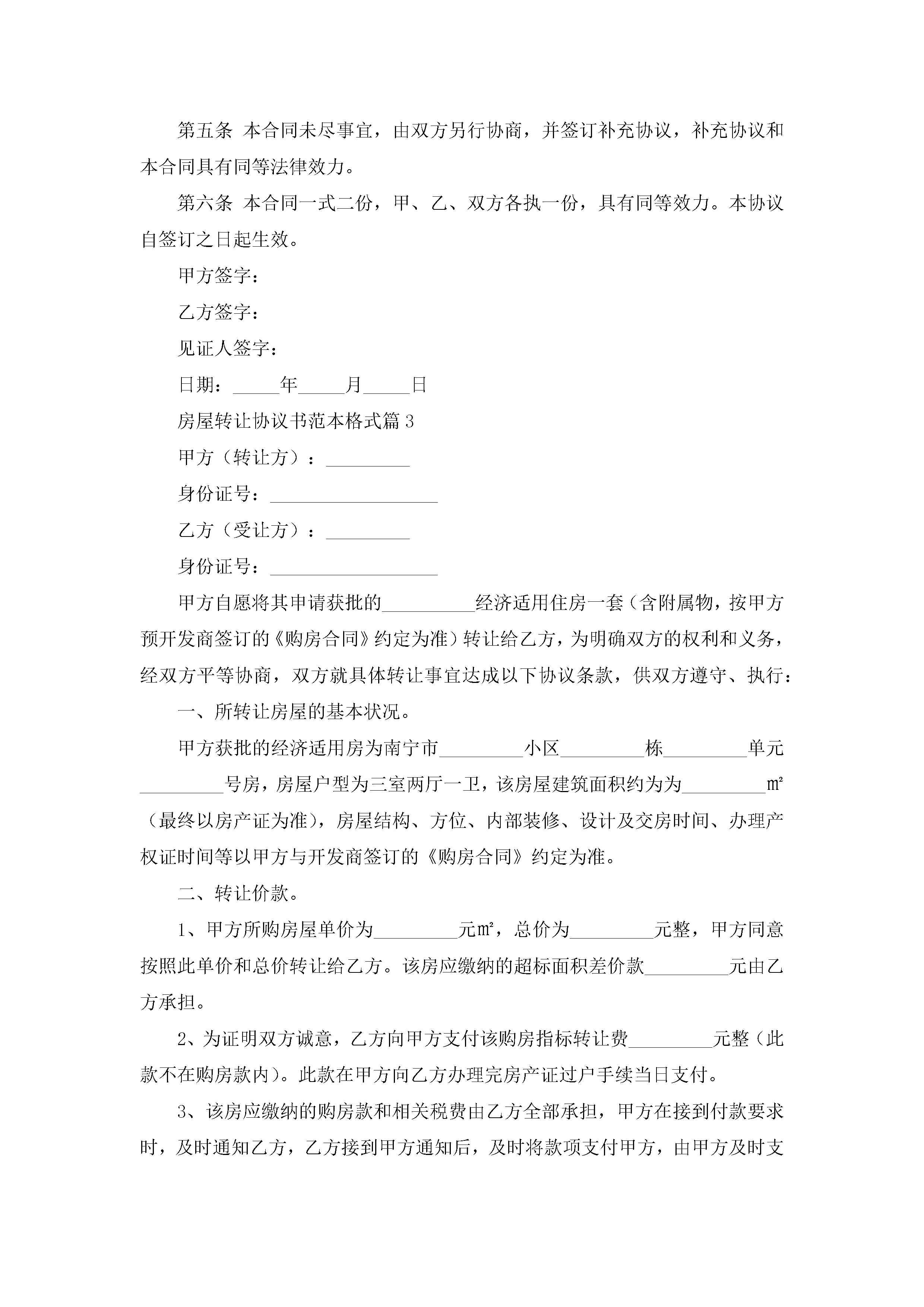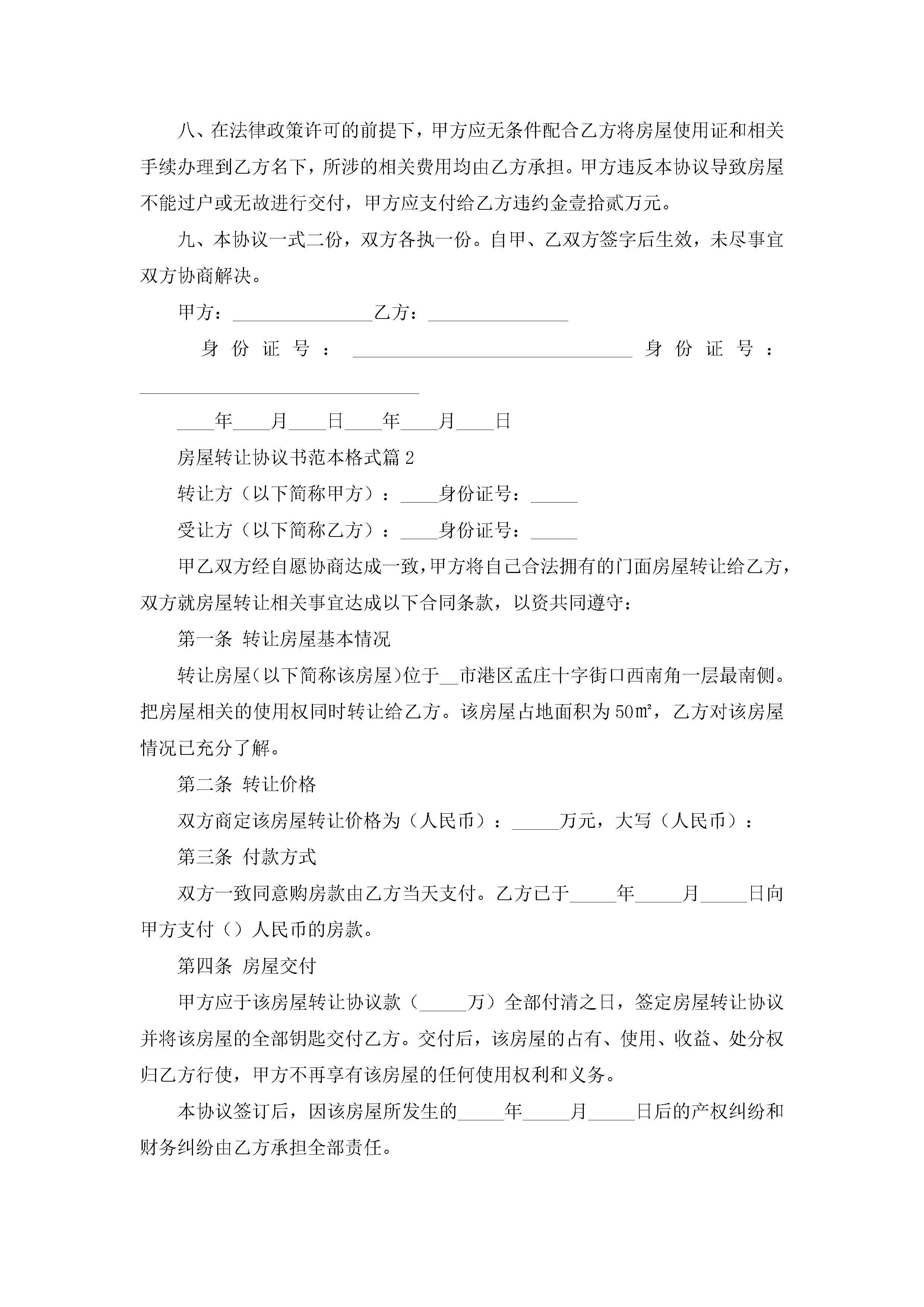 房屋转让协议书范本格式(精选10篇)jugei3月22日 12:42更新关注229 房屋转让协议书范本格式(精选10篇)此内容为付费资源,请付费后查看¥10.9 单篇文档限时特惠¥15个人会员开通企业会员开通立即下载无需登陆!可直接快捷下载单个模板付费资源© 版权声明THE ENDWord模板# 实用文档# 实用模板# 信函模板# 协议书 如有问题,可点击最底部“联系我们”联系客服 分享QQ空间微博QQ好友海报分享复制链接收藏