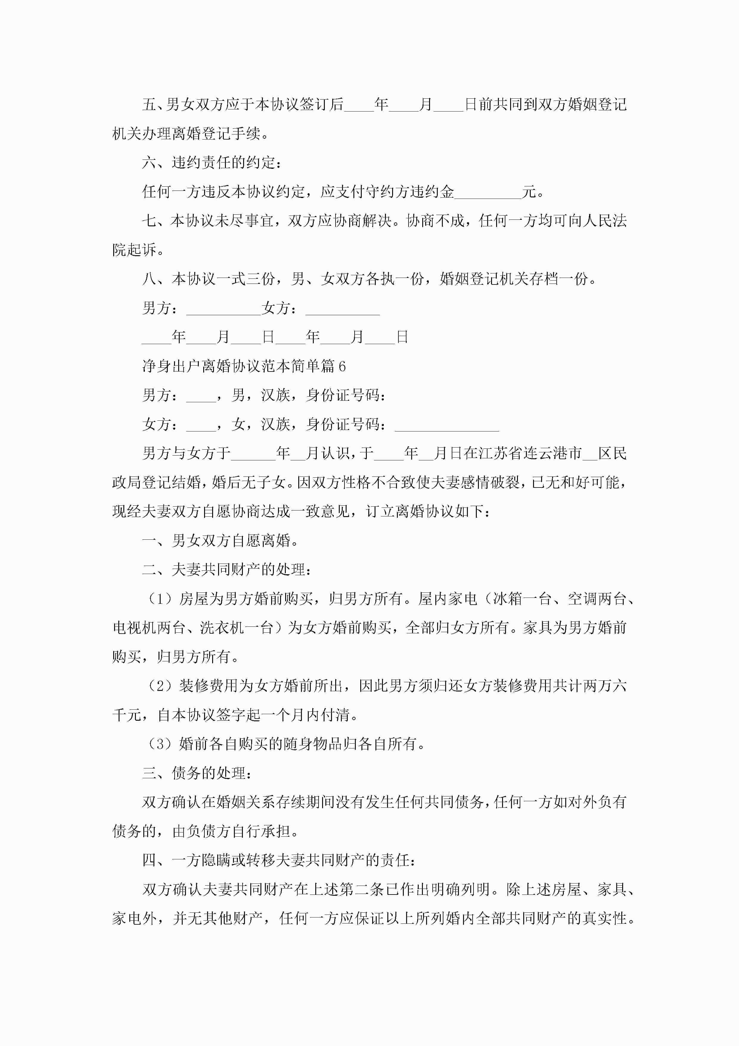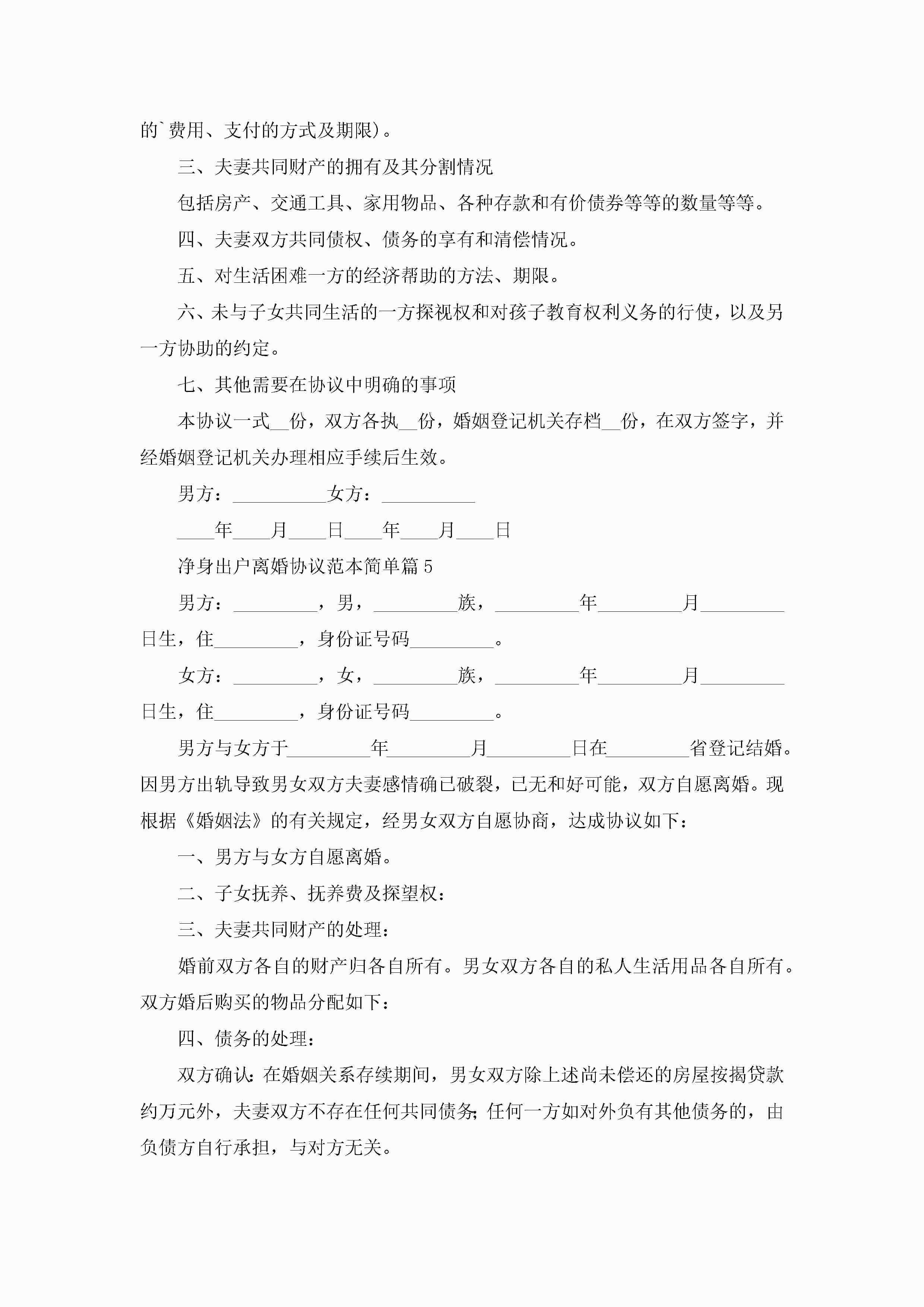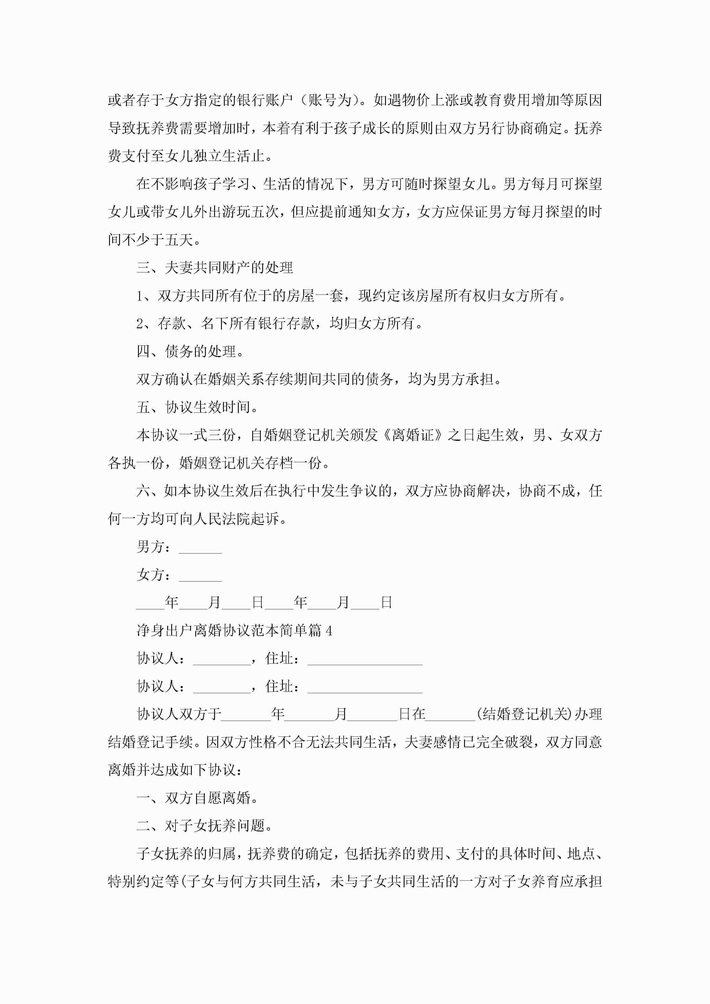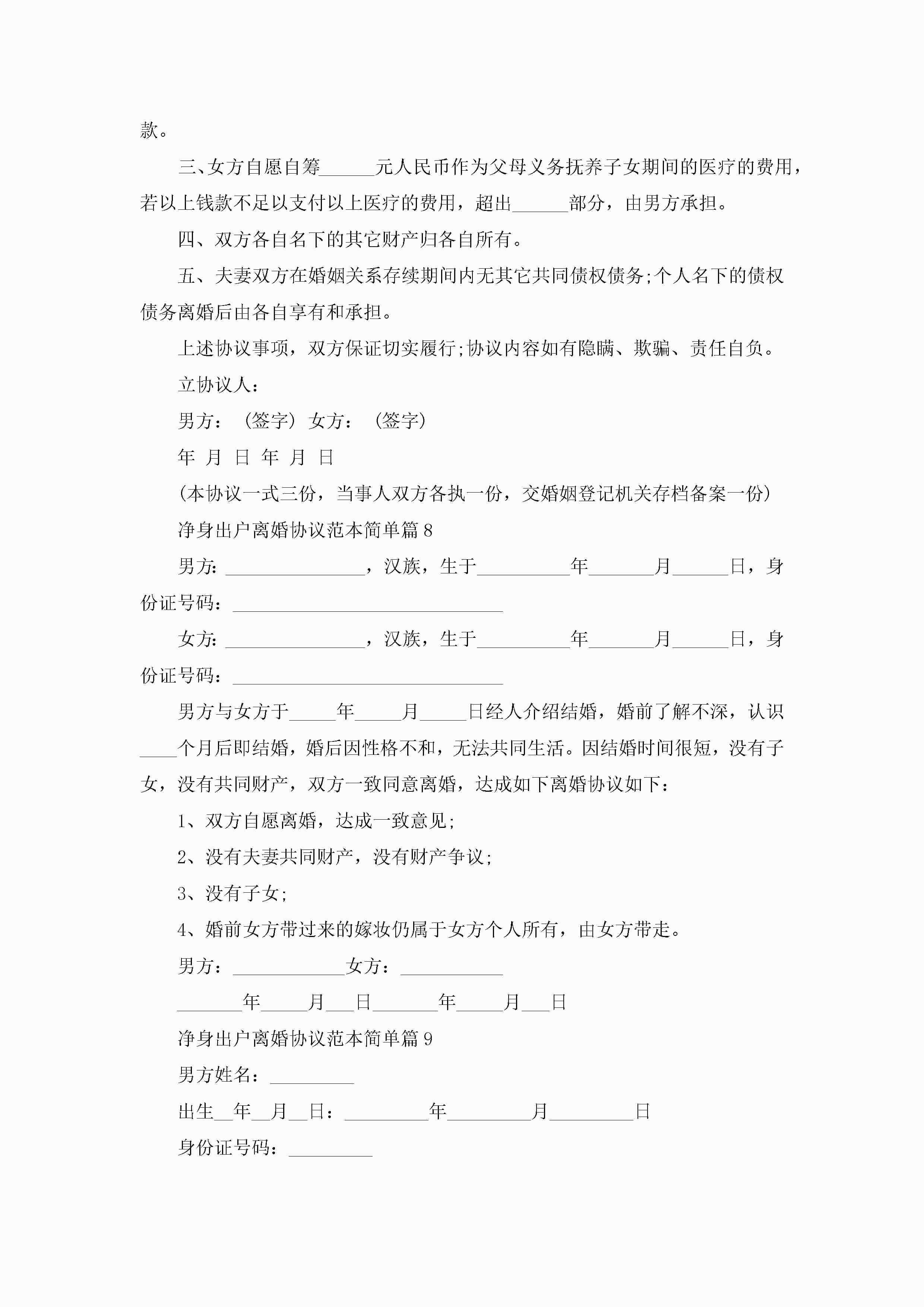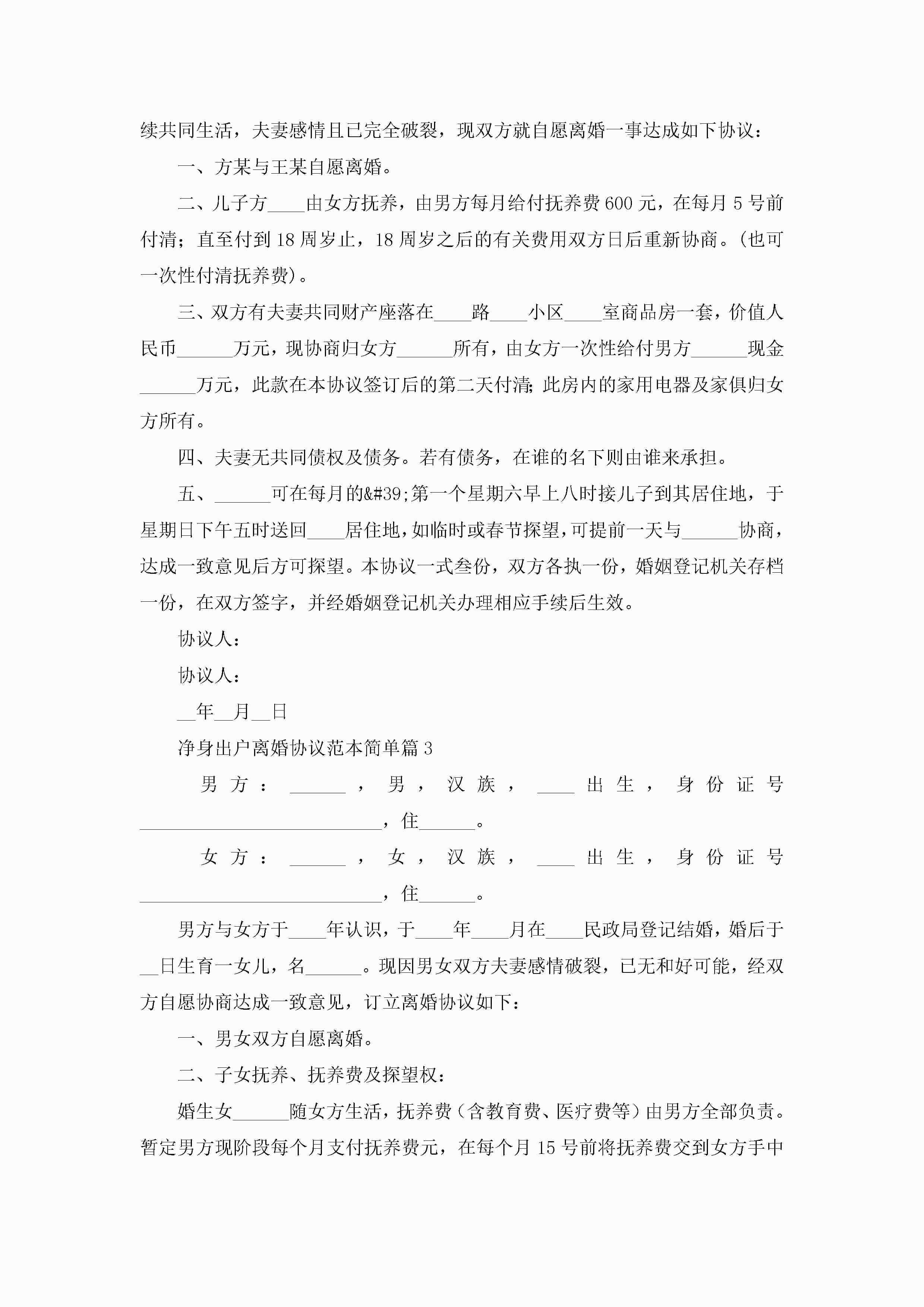 净身出户离婚协议范本简单(精选10篇)jugei3月22日 12:42更新关注194 净身出户离婚协议范本简单(精选10篇)此内容为付费资源,请付费后查看¥10.9 单篇文档限时特惠¥15个人会员开通企业会员开通立即下载无需登陆!可直接快捷下载单个模板付费资源© 版权声明THE ENDWord模板# 实用文档# 实用模板# 信函模板# 协议书 如有问题,可点击最底部“联系我们”联系客服 分享QQ空间微博QQ好友海报分享复制链接收藏