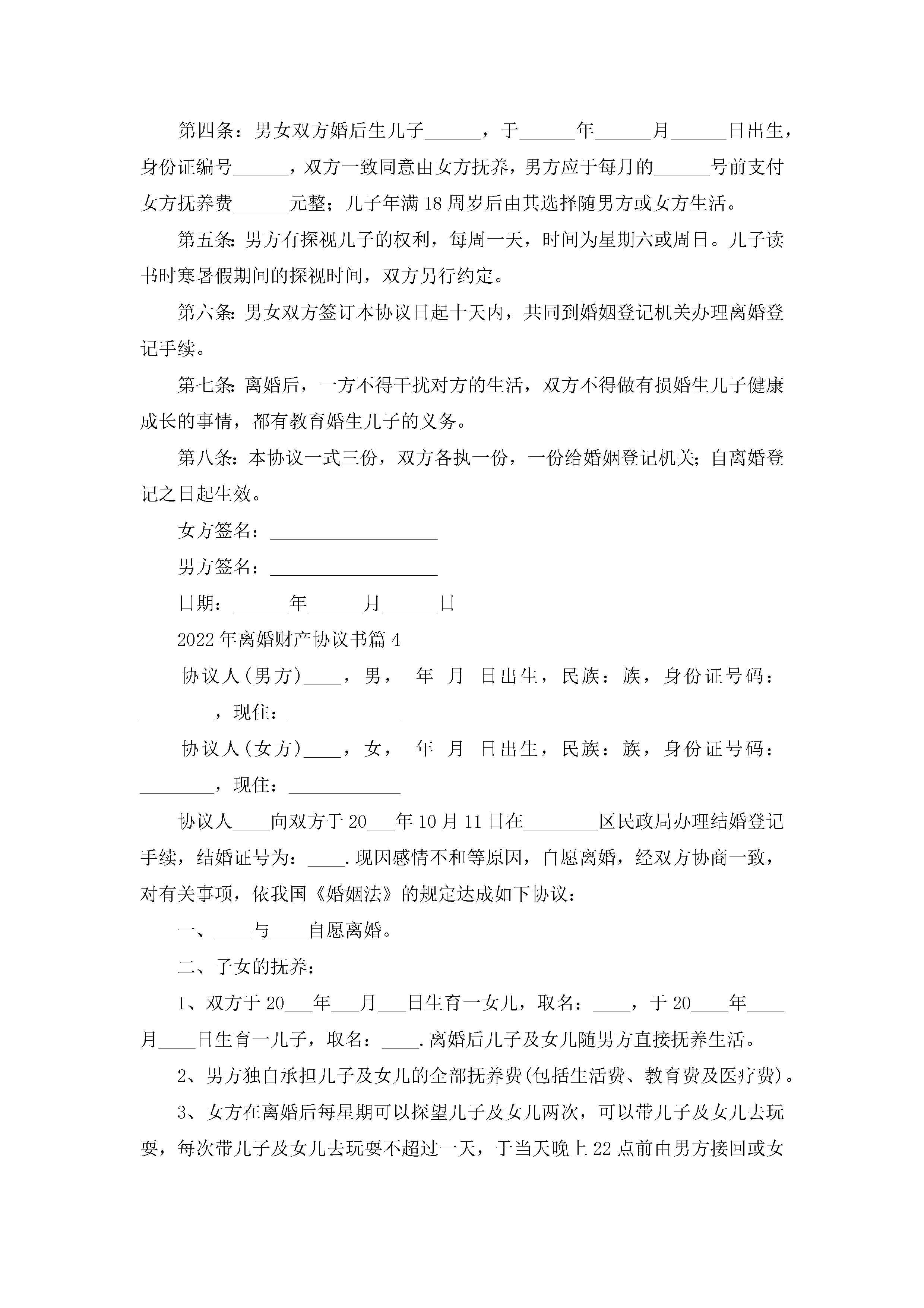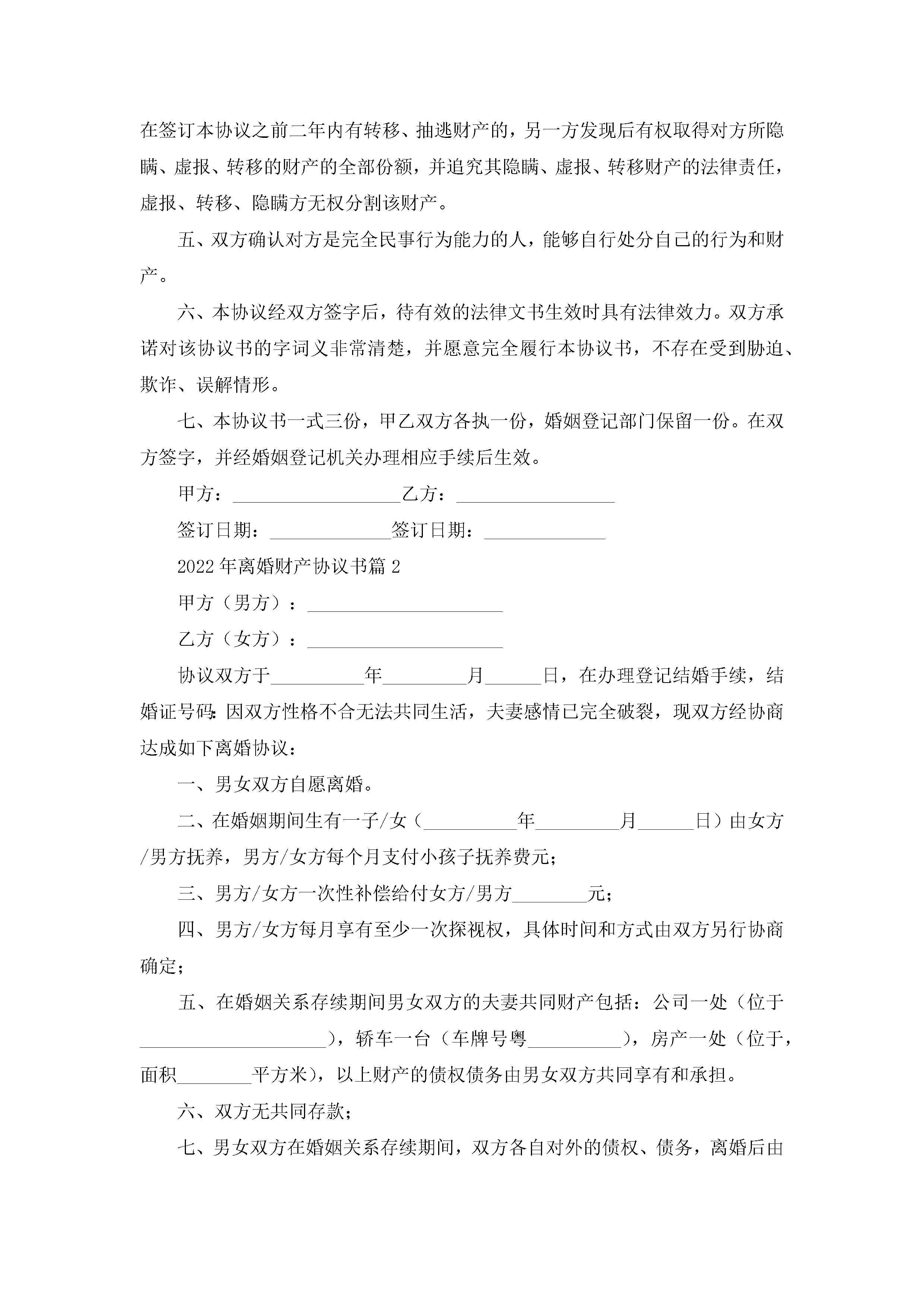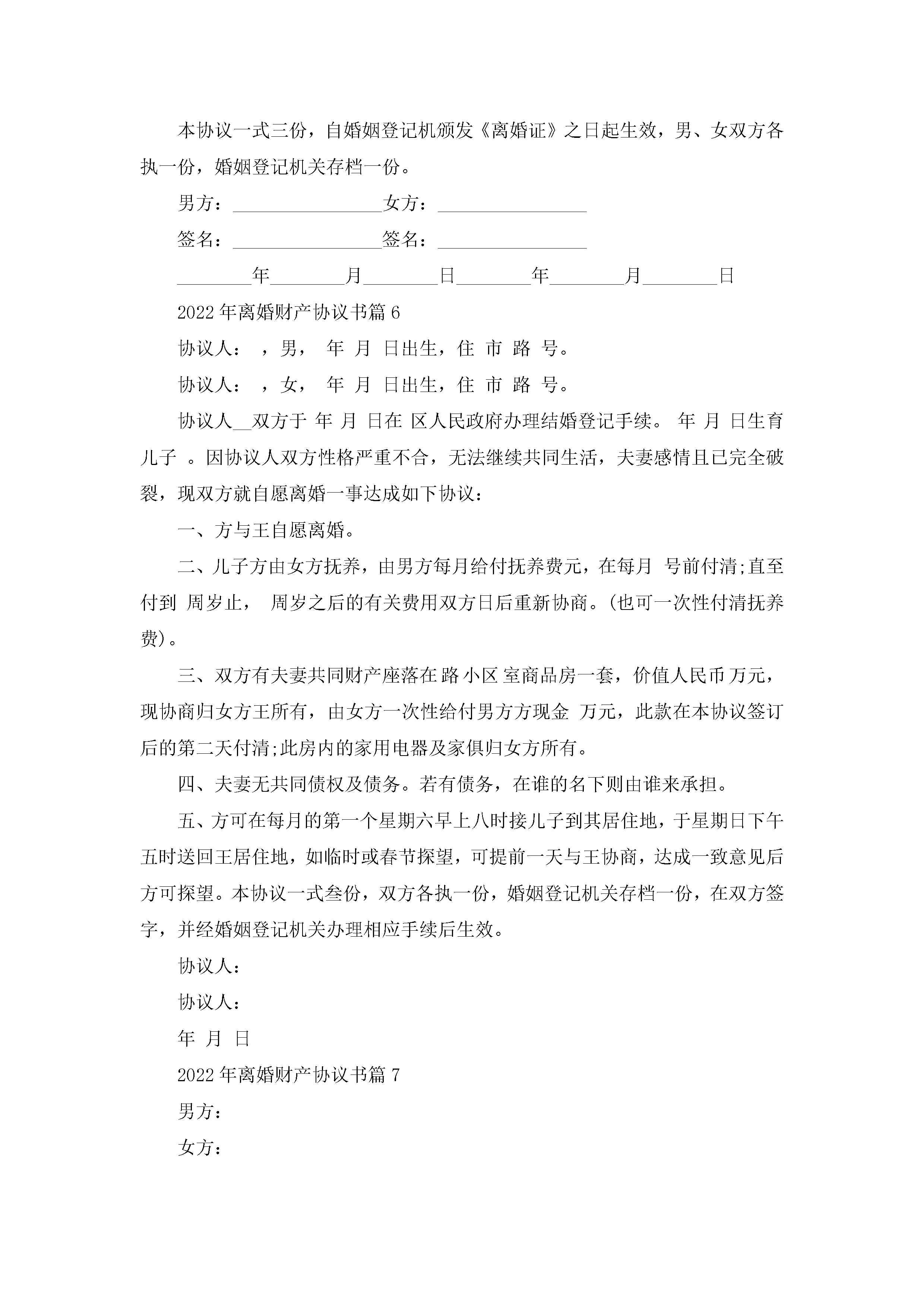 2022年离婚财产协议书(精选10篇)jugei3月22日 12:42更新关注201 2022年离婚财产协议书(精选10篇)此内容为付费资源,请付费后查看¥10.9 单篇文档限时特惠¥15个人会员开通企业会员开通立即下载无需登陆!可直接快捷下载单个模板付费资源© 版权声明THE ENDWord模板# 实用文档# 实用模板# 信函模板# 协议书 如有问题,可点击最底部“联系我们”联系客服 分享QQ空间微博QQ好友海报分享复制链接收藏
