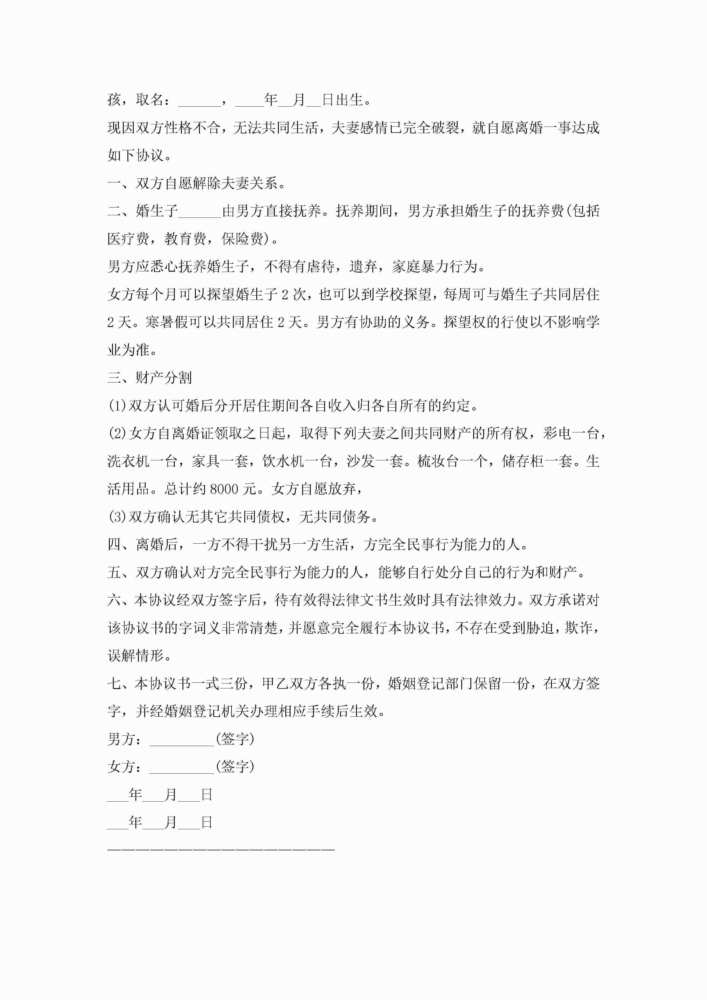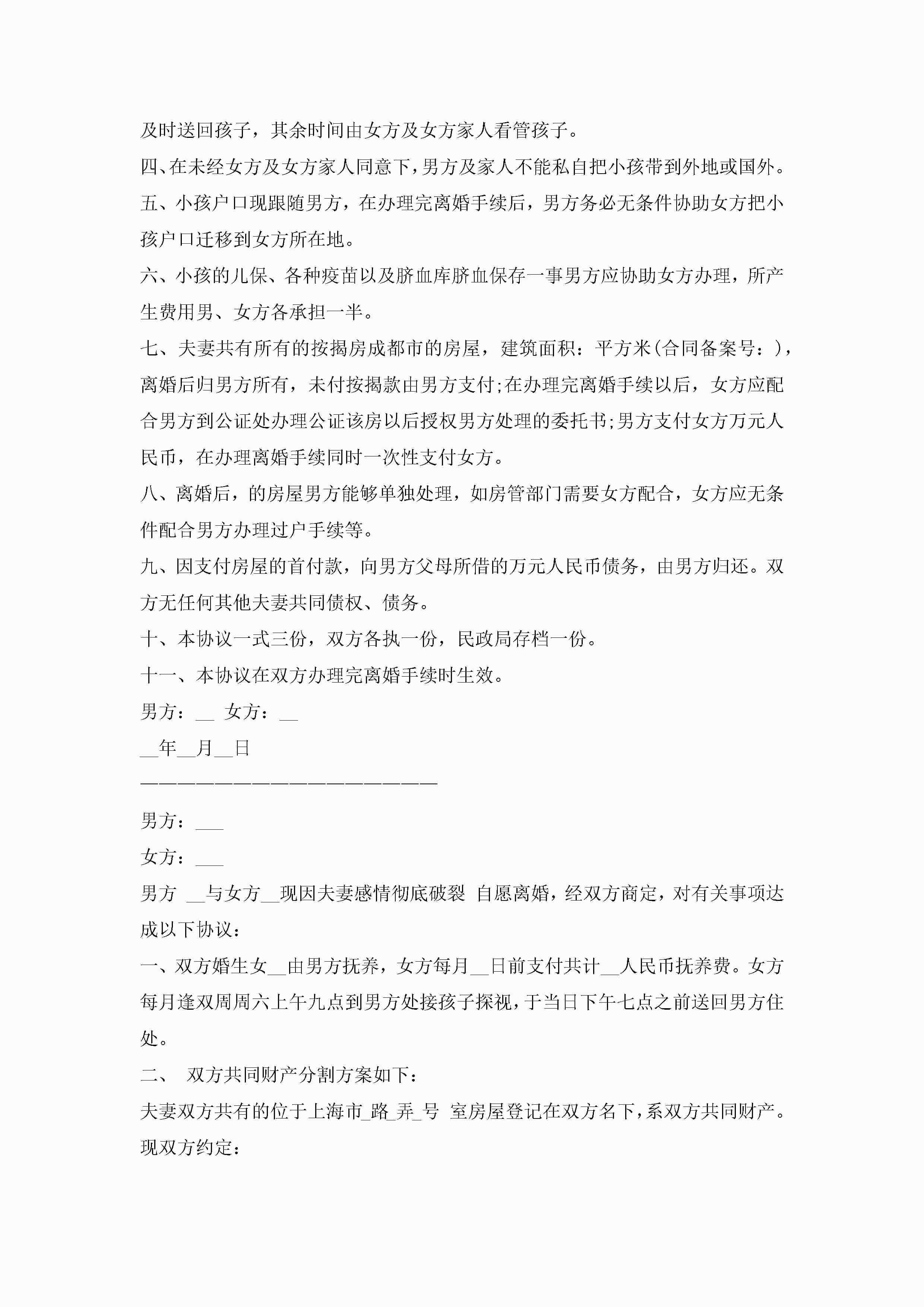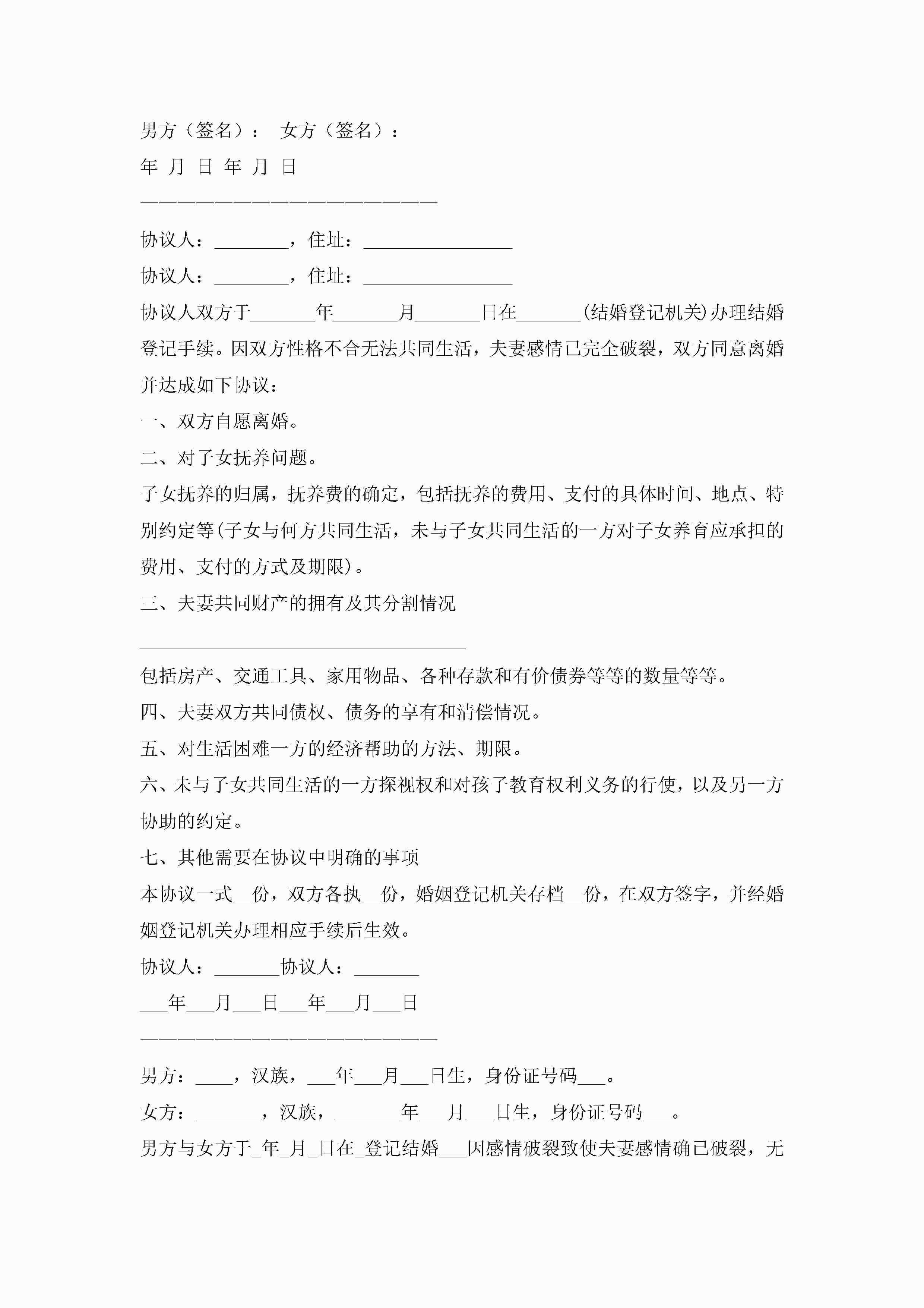 2022简单离婚协议模板(7篇)jugei3月22日 12:42更新关注232 2022简单离婚协议模板(7篇)此内容为付费资源,请付费后查看¥10.9 单篇文档限时特惠¥15个人会员开通企业会员开通立即下载无需登陆!可直接快捷下载单个模板付费资源© 版权声明THE ENDWord模板# 实用文档# 实用模板# 信函模板# 协议书 如有问题,可点击最底部“联系我们”联系客服 分享QQ空间微博QQ好友海报分享复制链接收藏