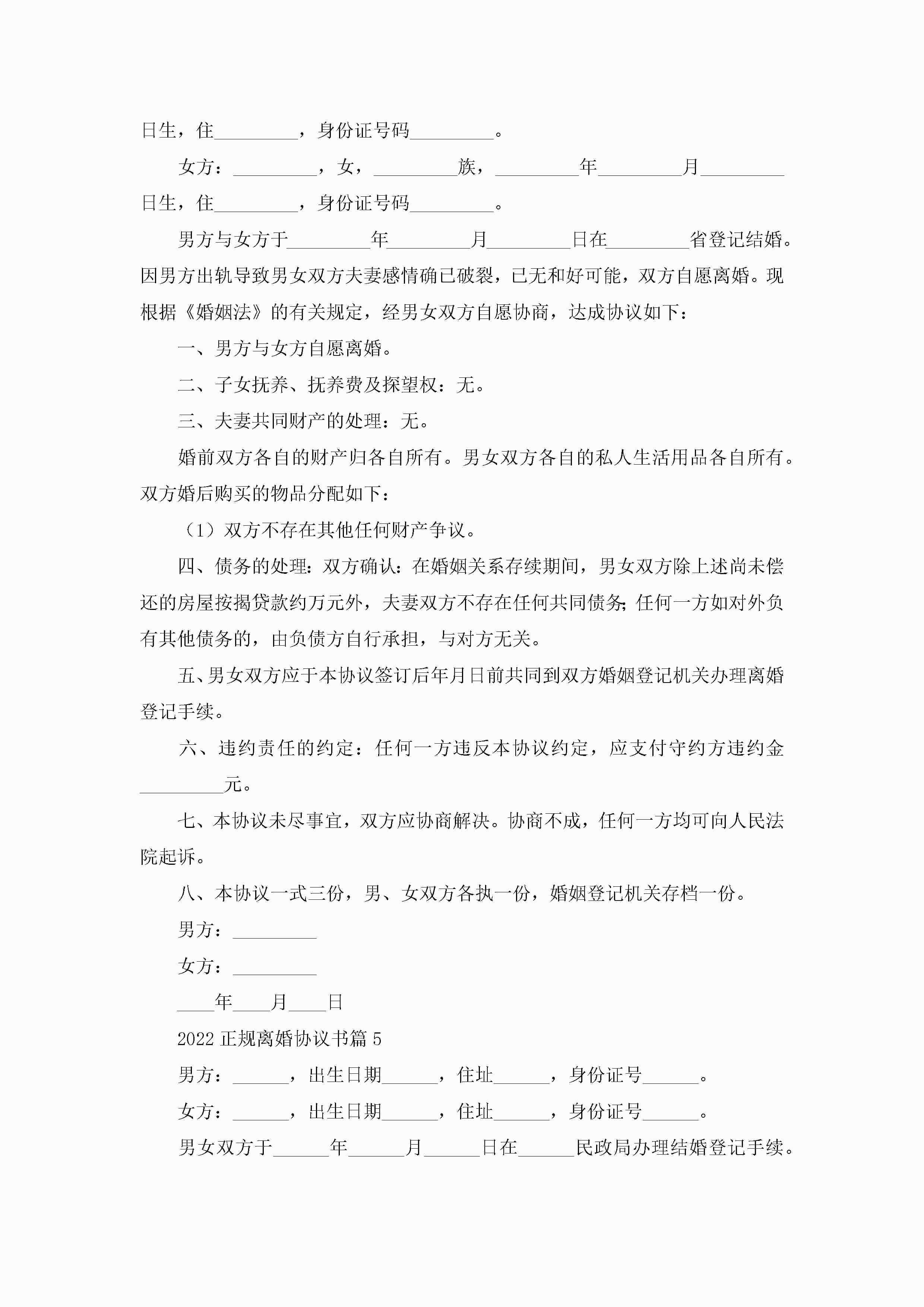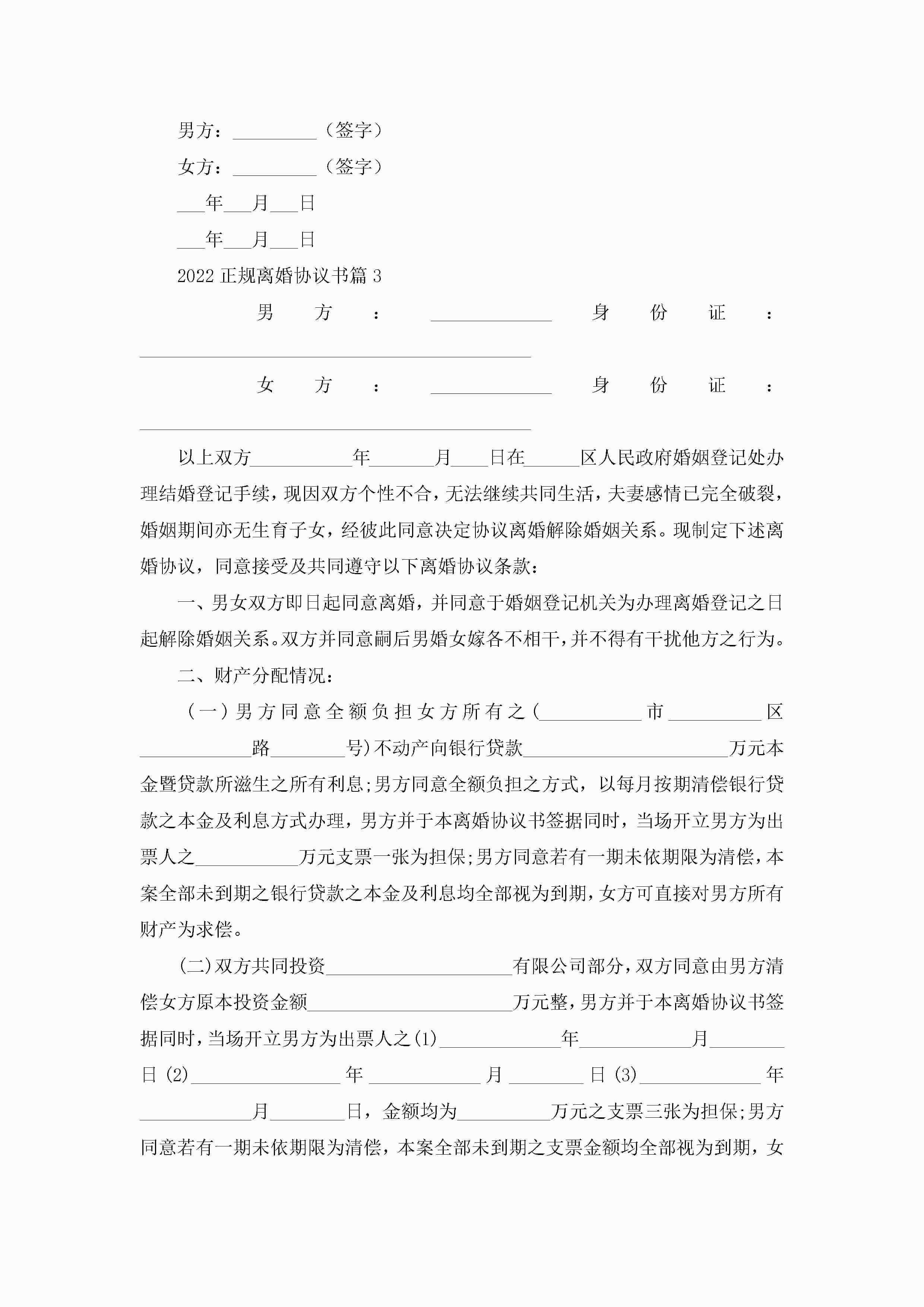 2022正规离婚协议书(精选7篇)jugei3月22日 12:42更新关注223 2022正规离婚协议书(精选7篇)此内容为付费资源,请付费后查看¥10.9 单篇文档限时特惠¥15个人会员开通企业会员开通立即下载无需登陆!可直接快捷下载单个模板付费资源© 版权声明THE ENDWord模板# 实用文档# 实用模板# 信函模板# 协议书 如有问题,可点击最底部“联系我们”联系客服 分享QQ空间微博QQ好友海报分享复制链接收藏