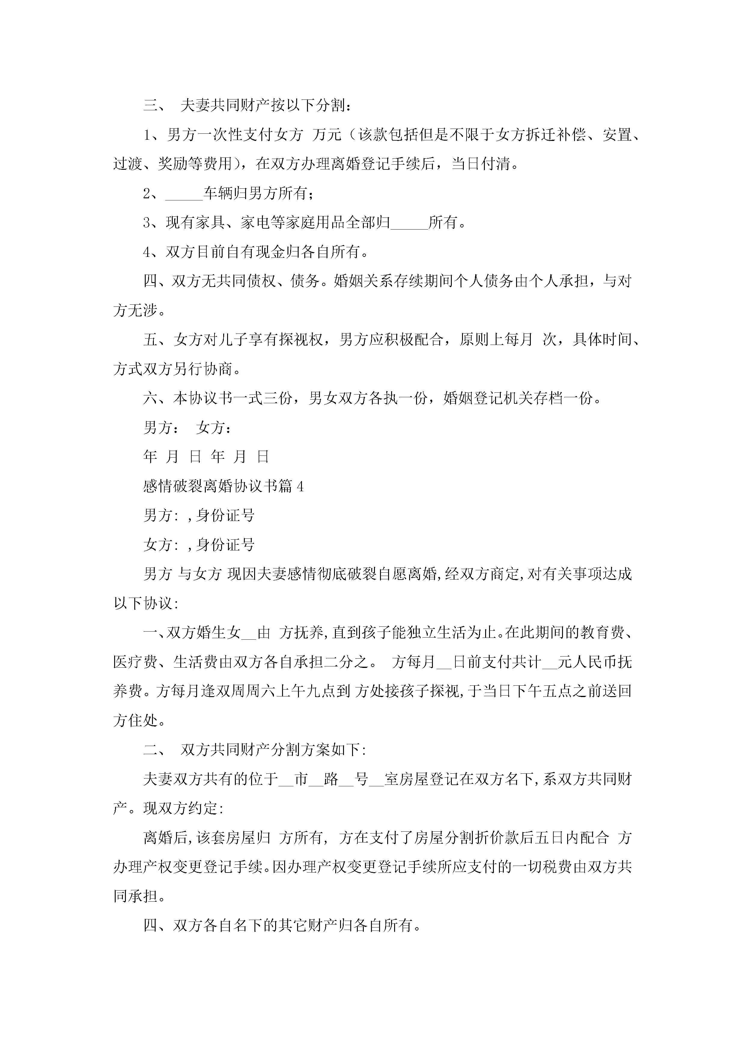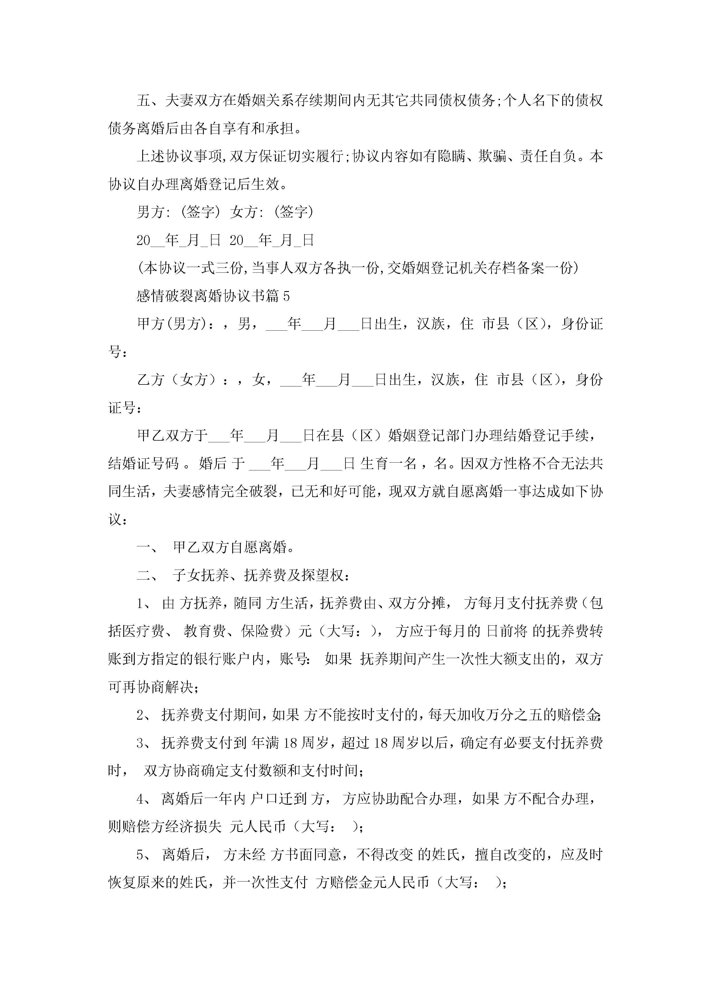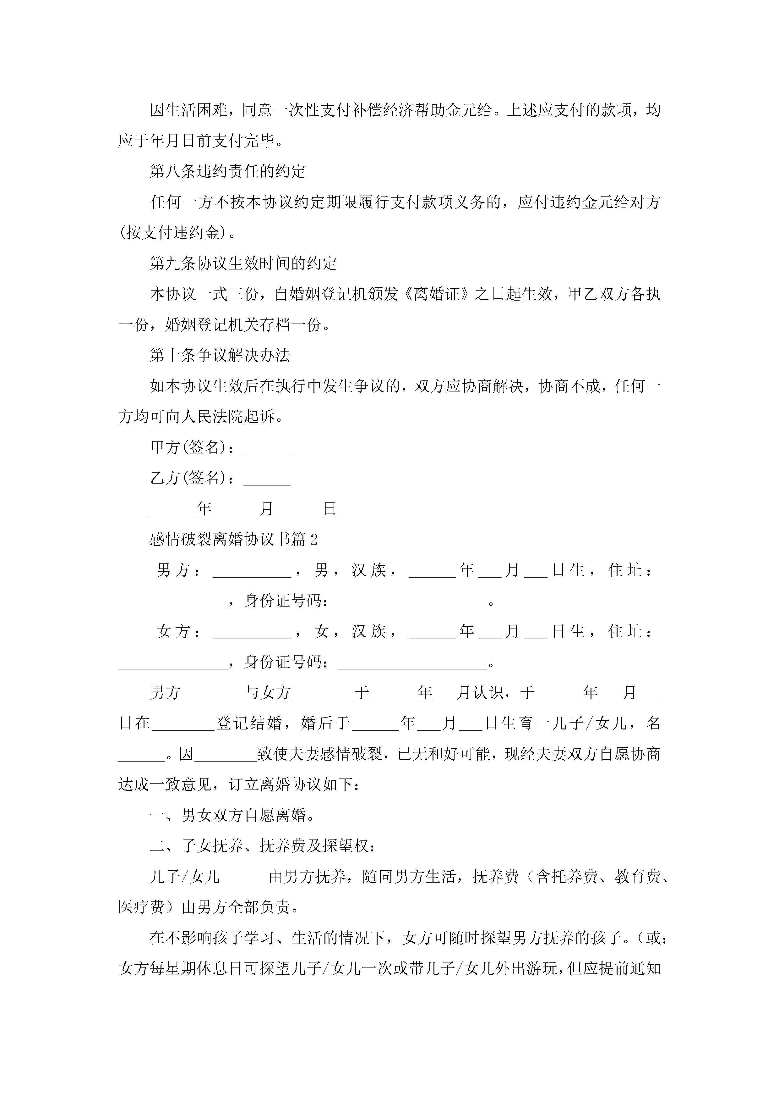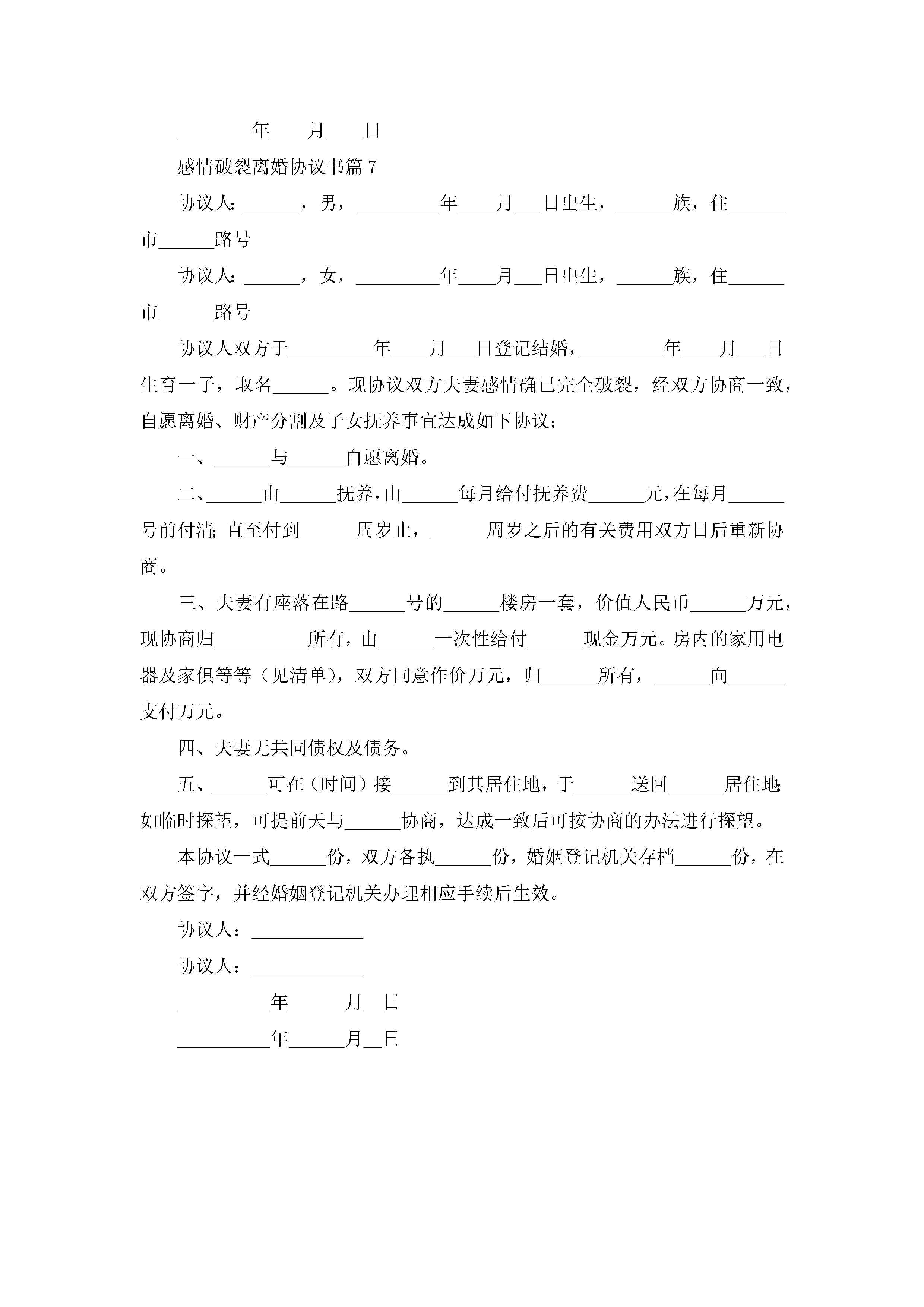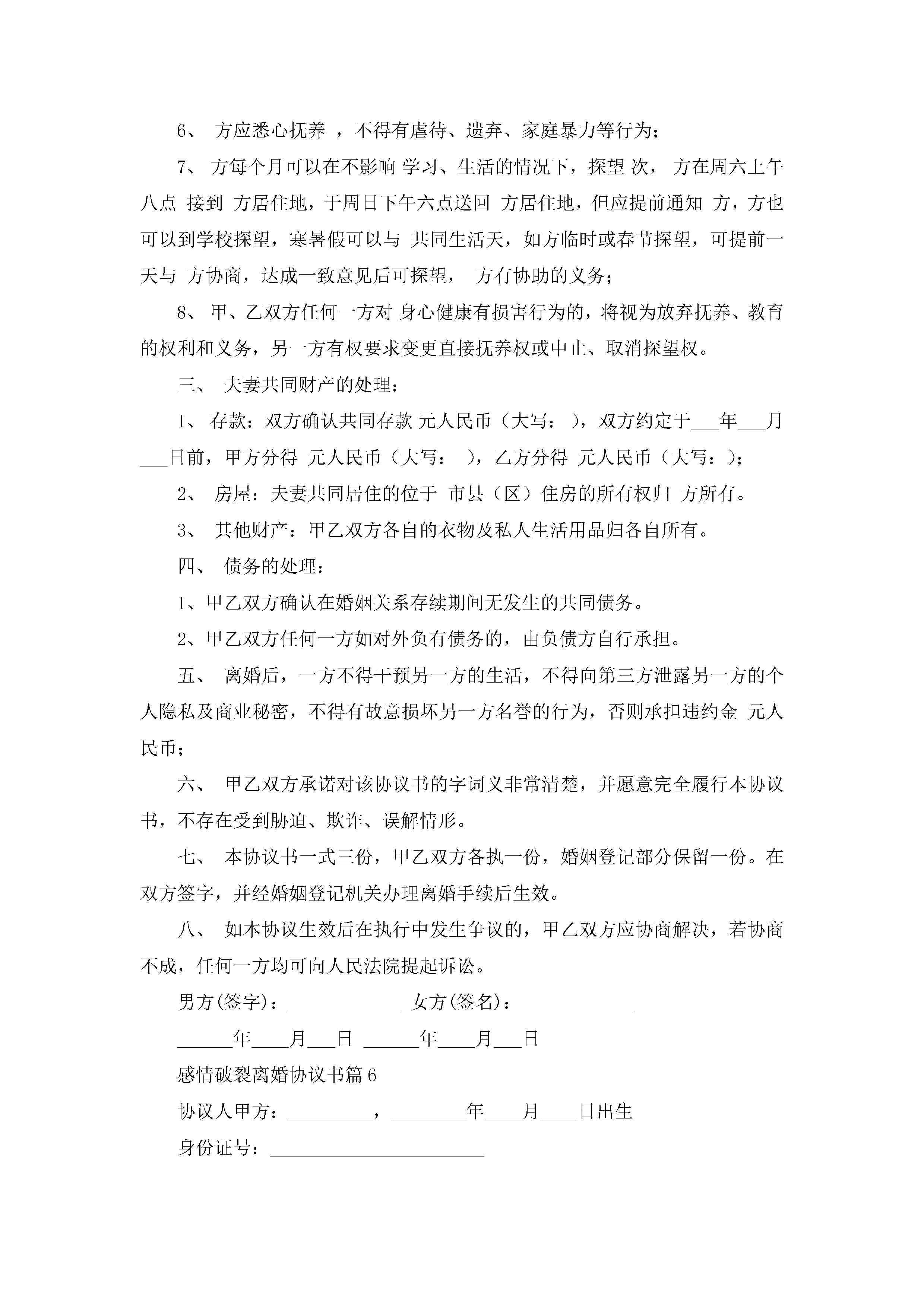感情破裂离婚协议书【7篇】jugei3月22日 12:42更新关注198 感情破裂离婚协议书【7篇】此内容为付费资源,请付费后查看¥10.9 单篇文档限时特惠¥15个人会员开通企业会员开通立即下载无需登陆!可直接快捷下载单个模板付费资源© 版权声明THE ENDWord模板# 实用文档# 实用模板# 信函模板# 协议书 如有问题,可点击最底部“联系我们”联系客服 分享QQ空间微博QQ好友海报分享复制链接收藏